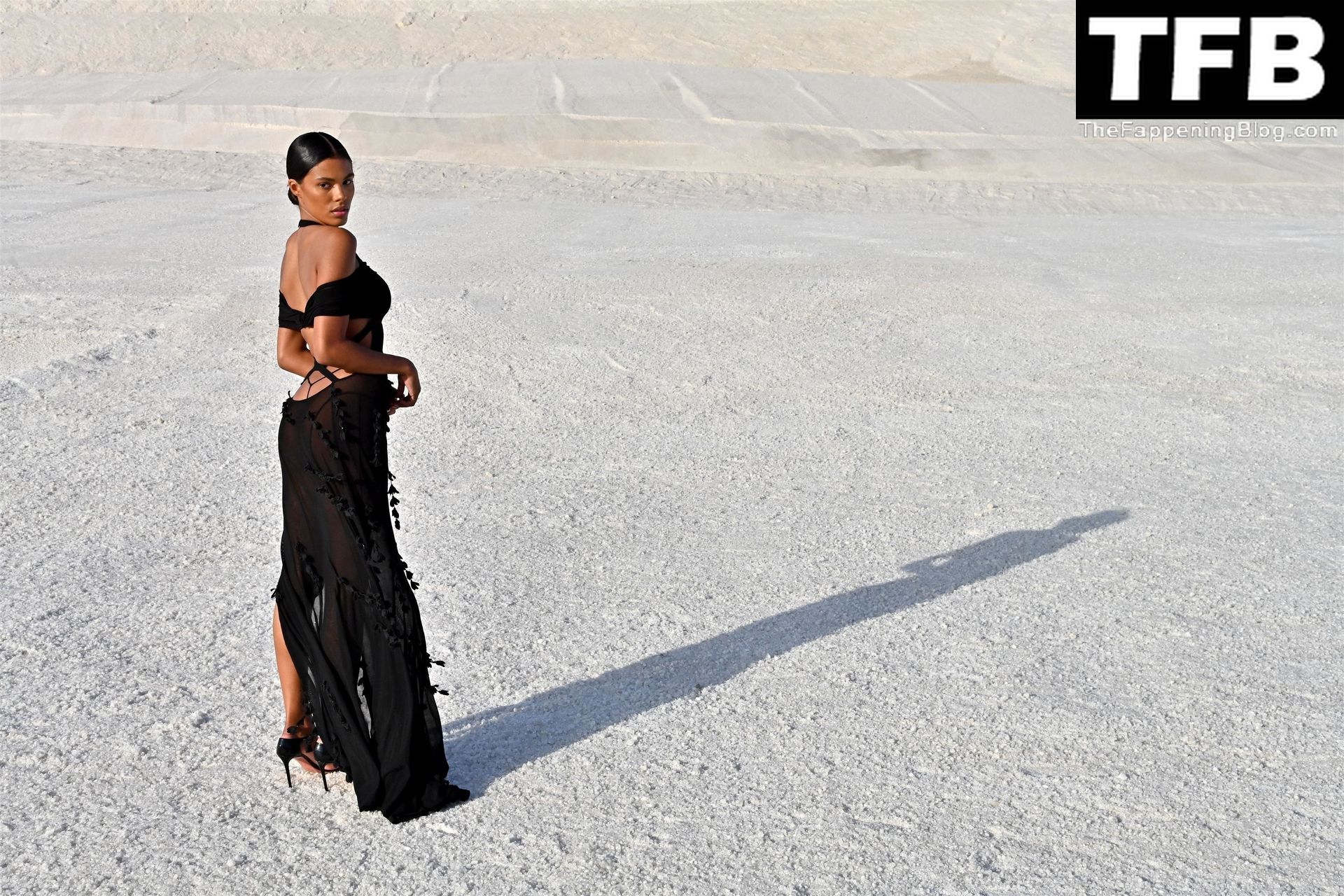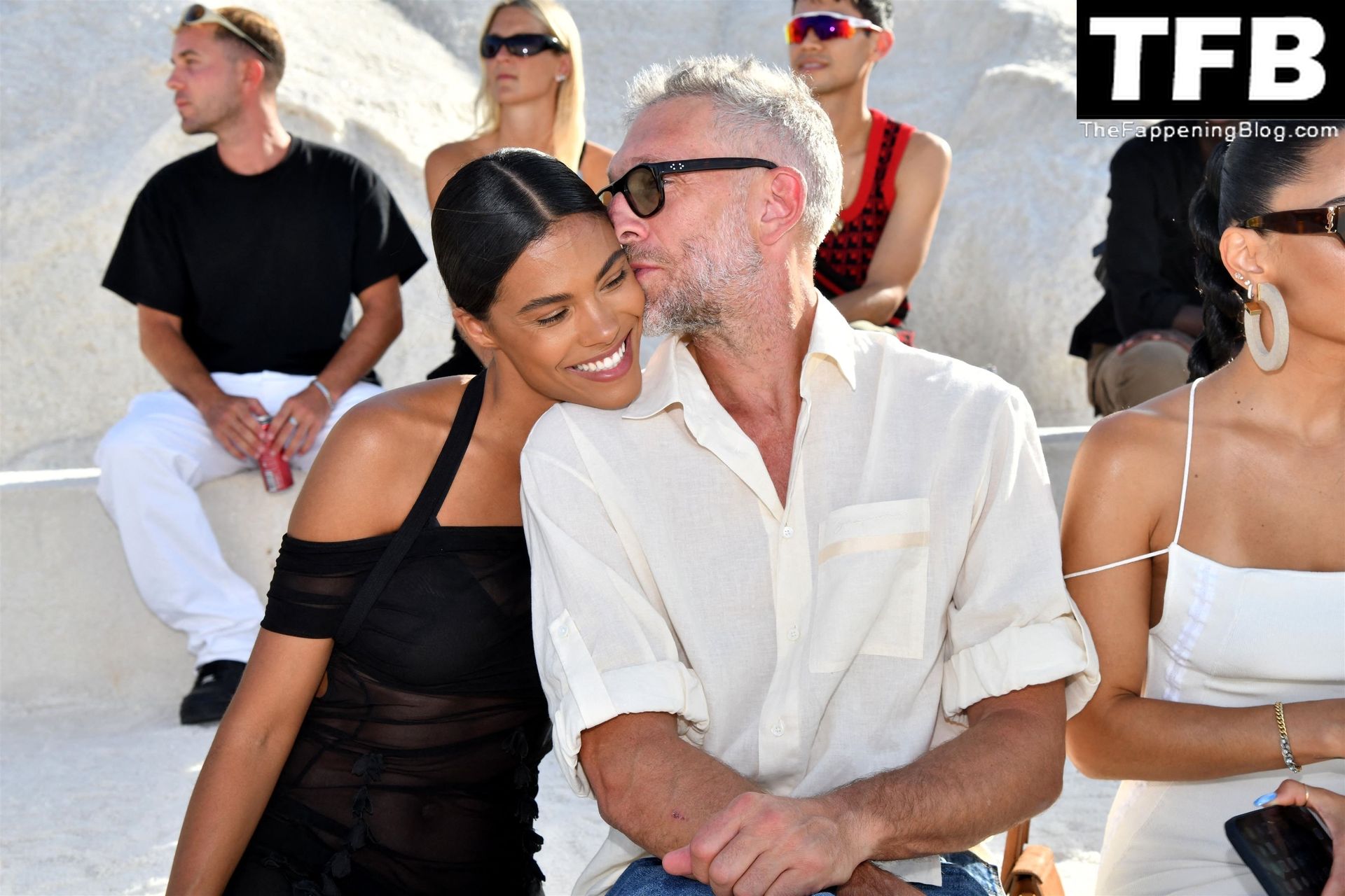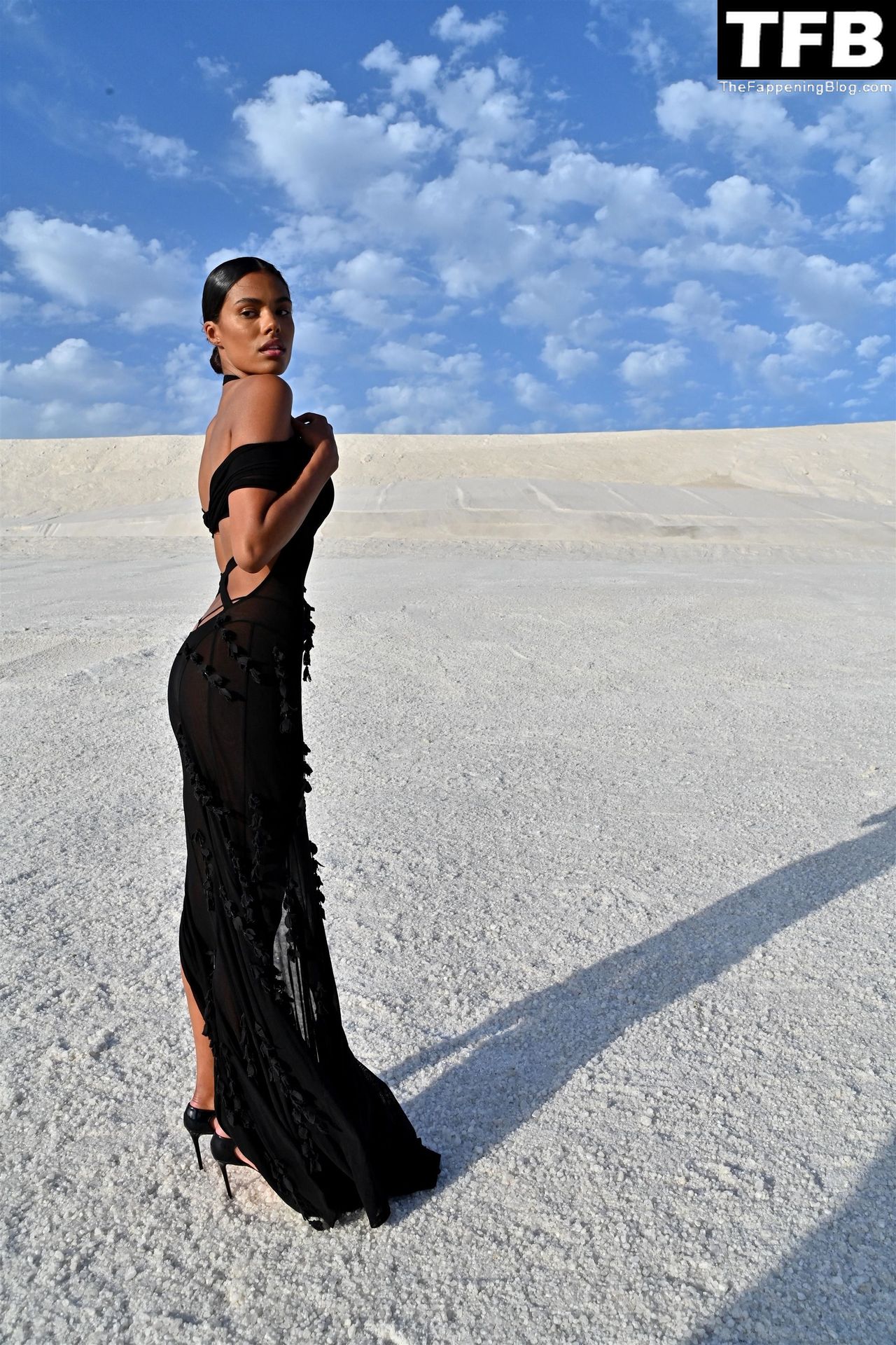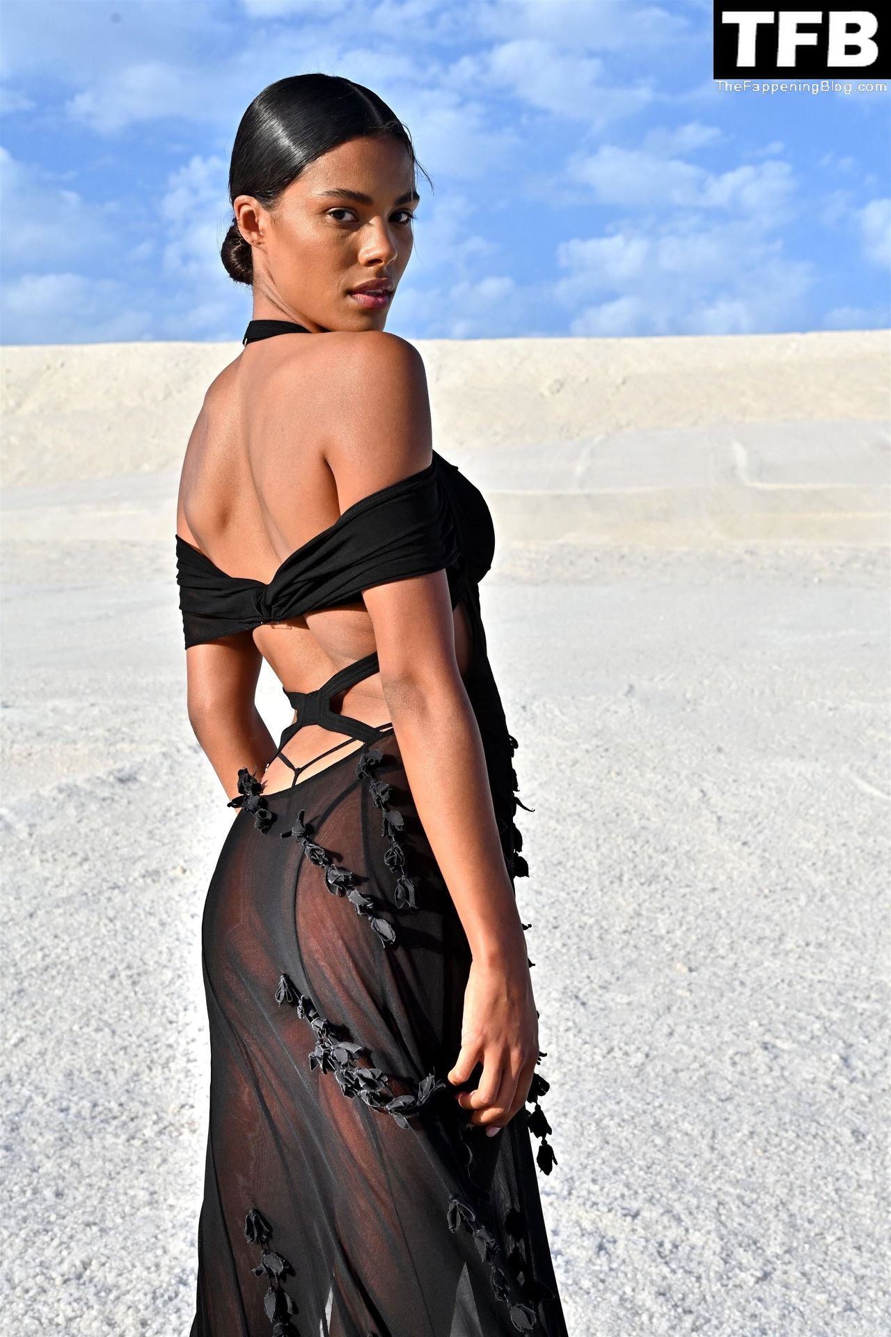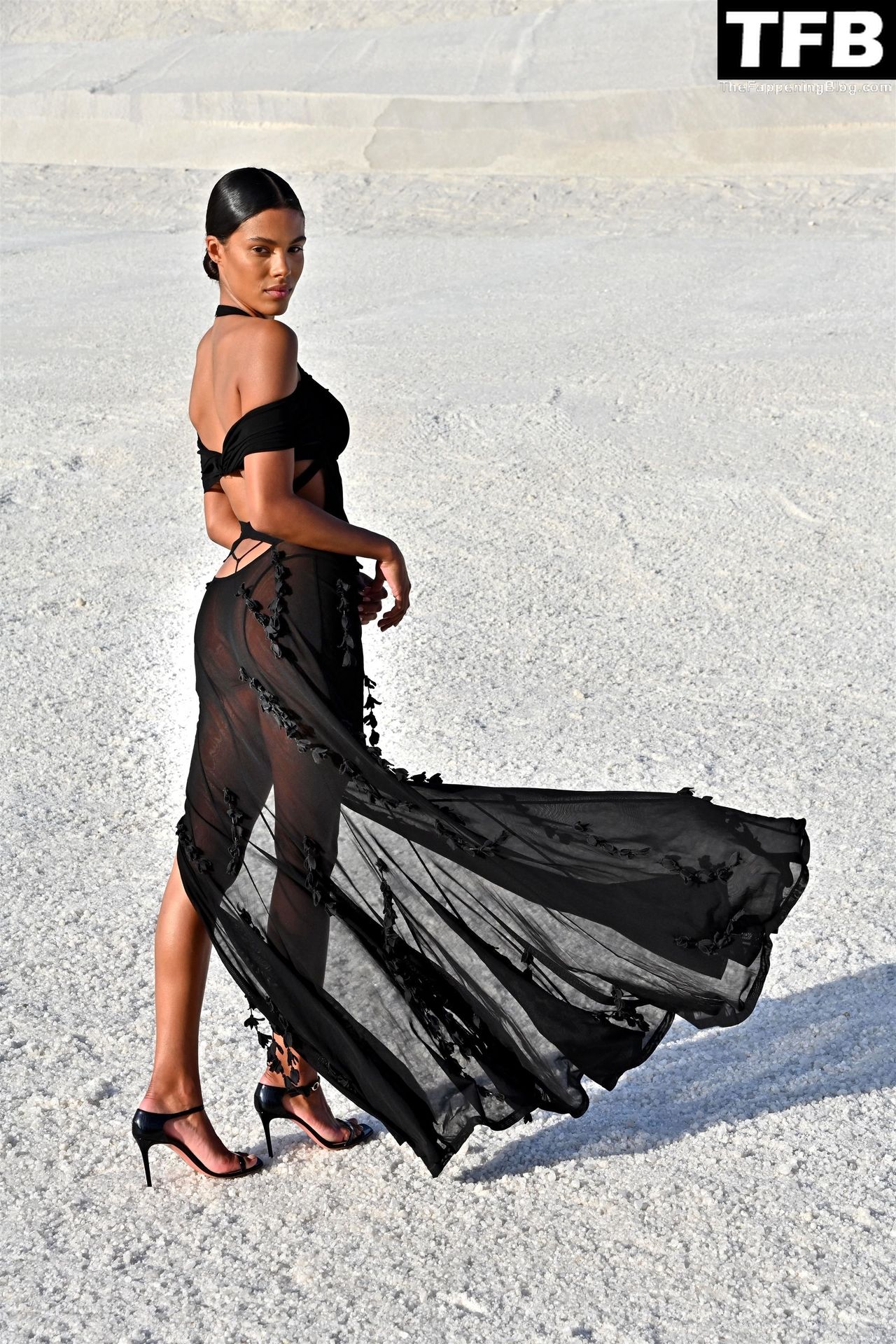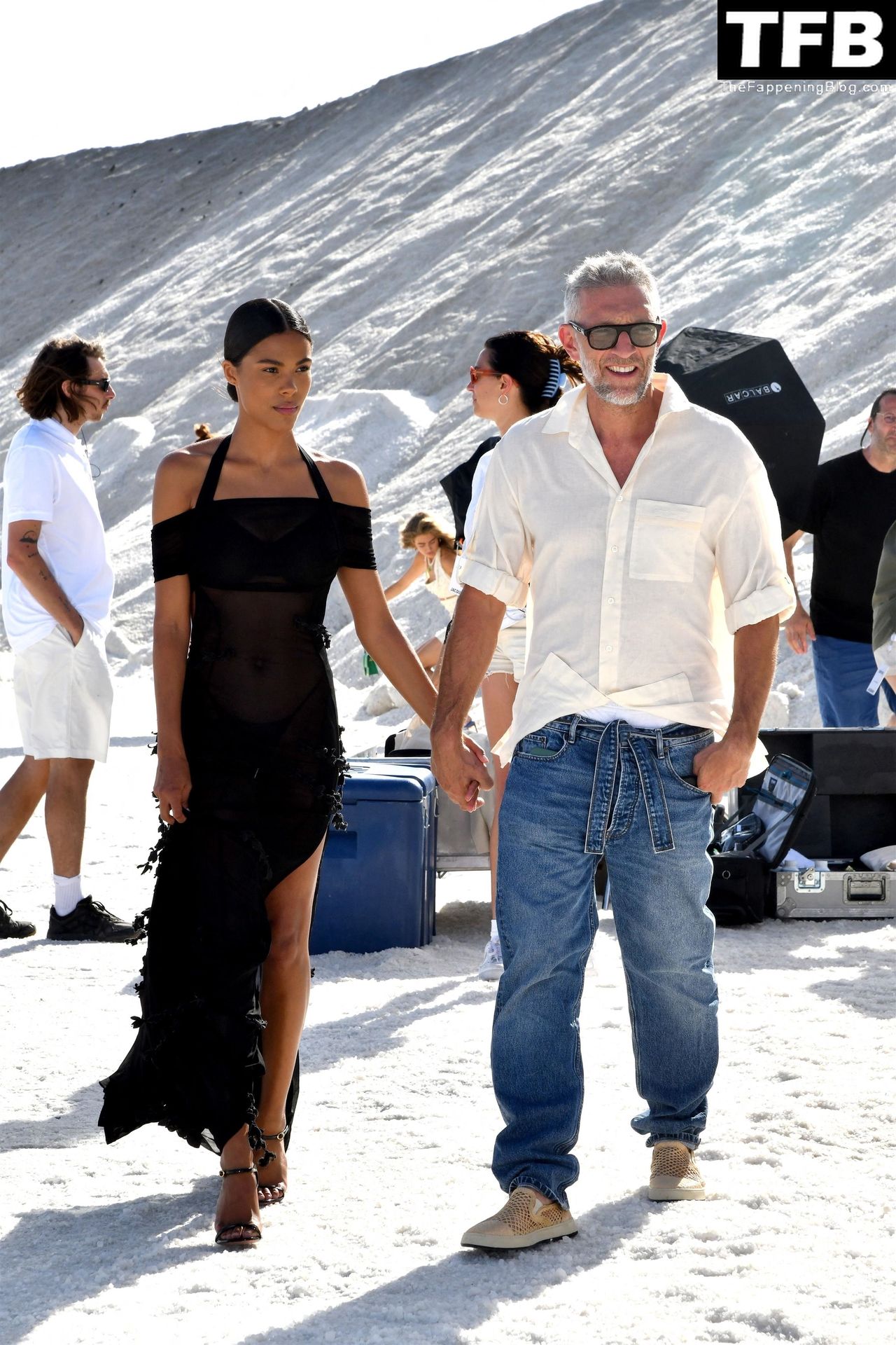La modella Tina Kunakey partecipa alla sfilata di moda “Le Papier (La Carta)” di Jacquemus ad Arles, Francia, 27/06/2022.