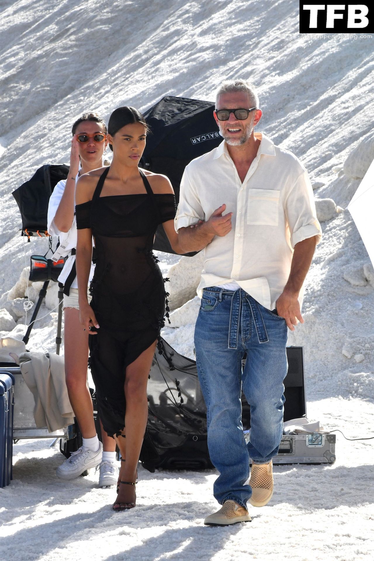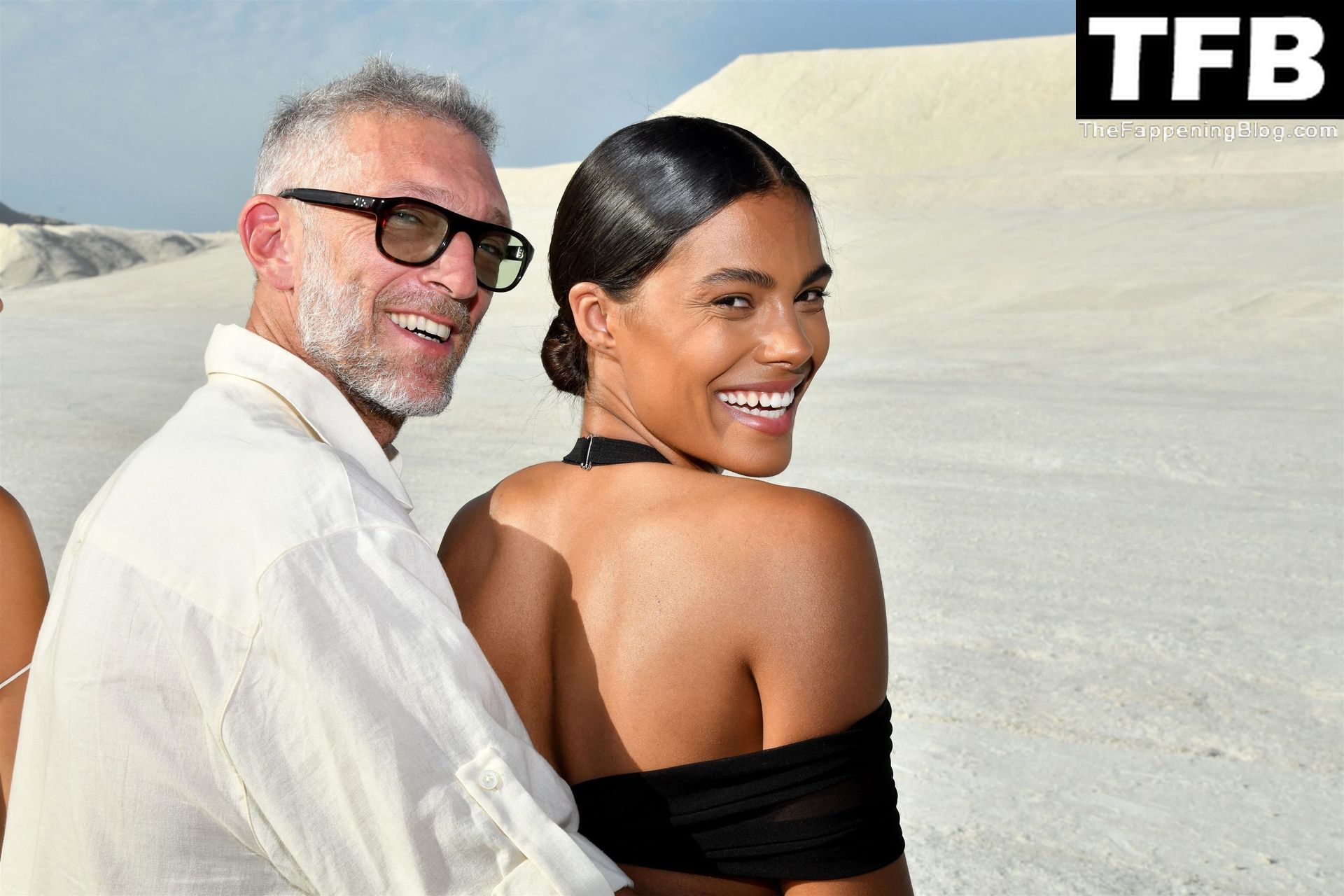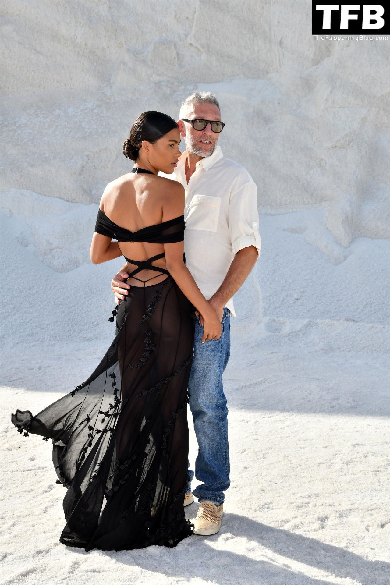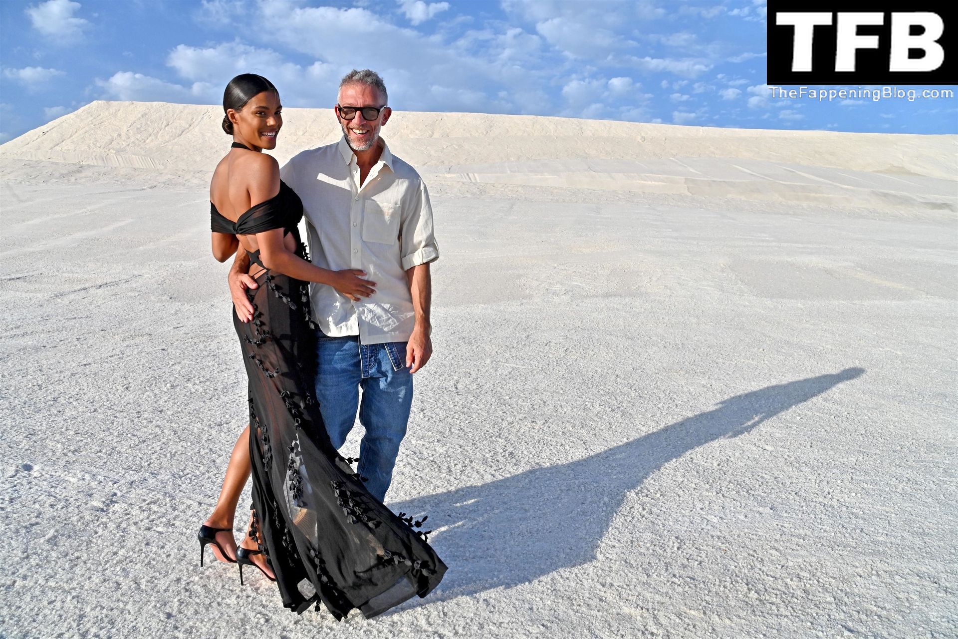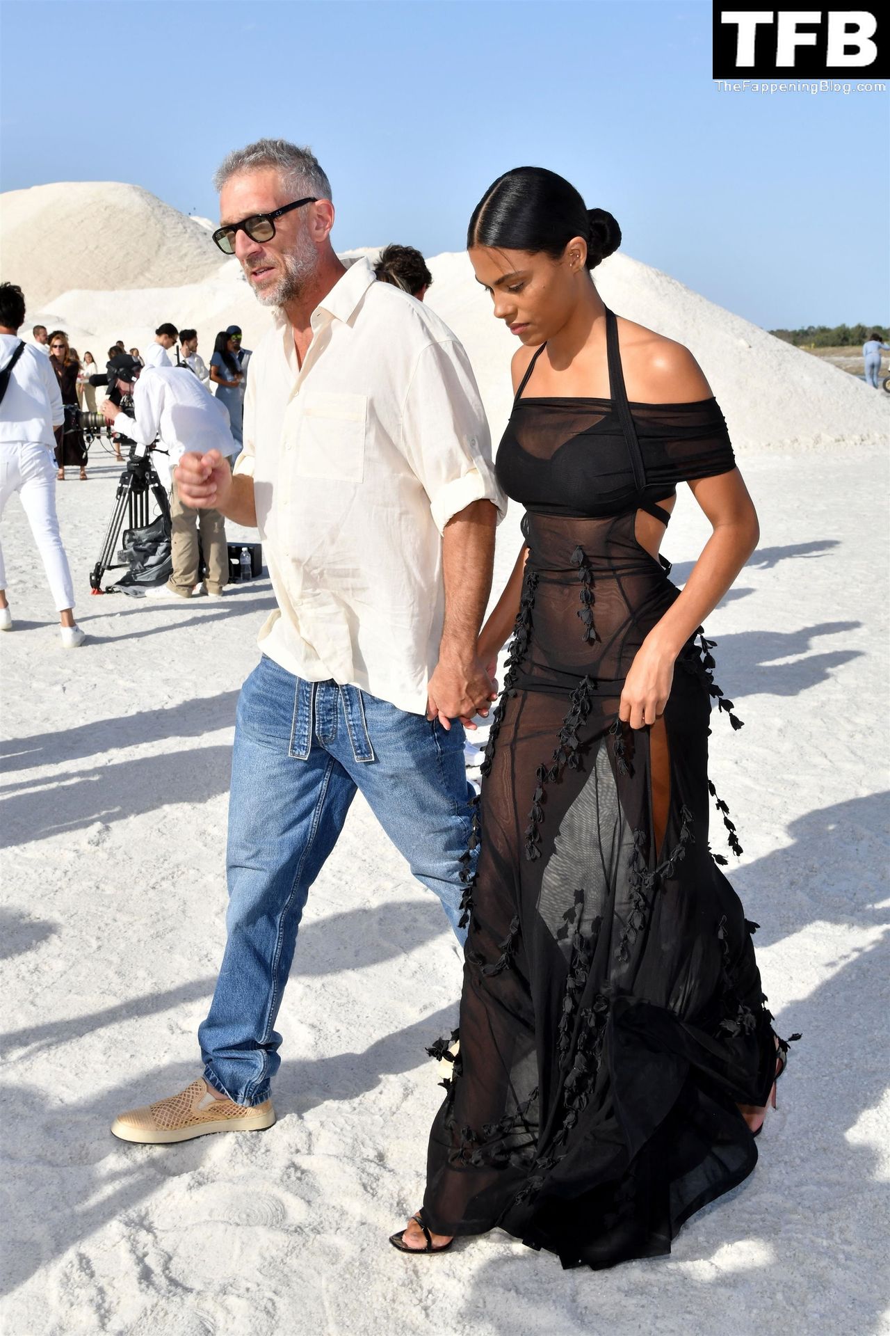 La modella Tina Kunakey partecipa alla sfilata di moda “Le Papier (La Carta)” di Jacquemus ad Arles, Francia, 27/06/2022.