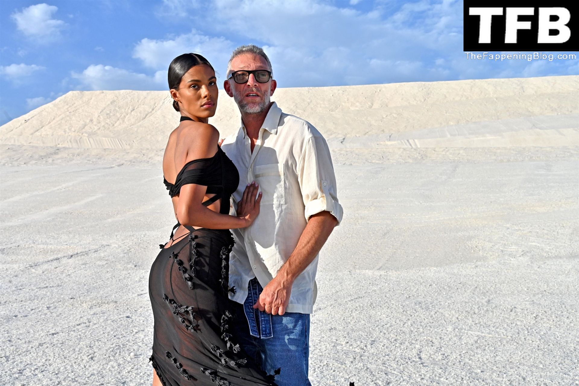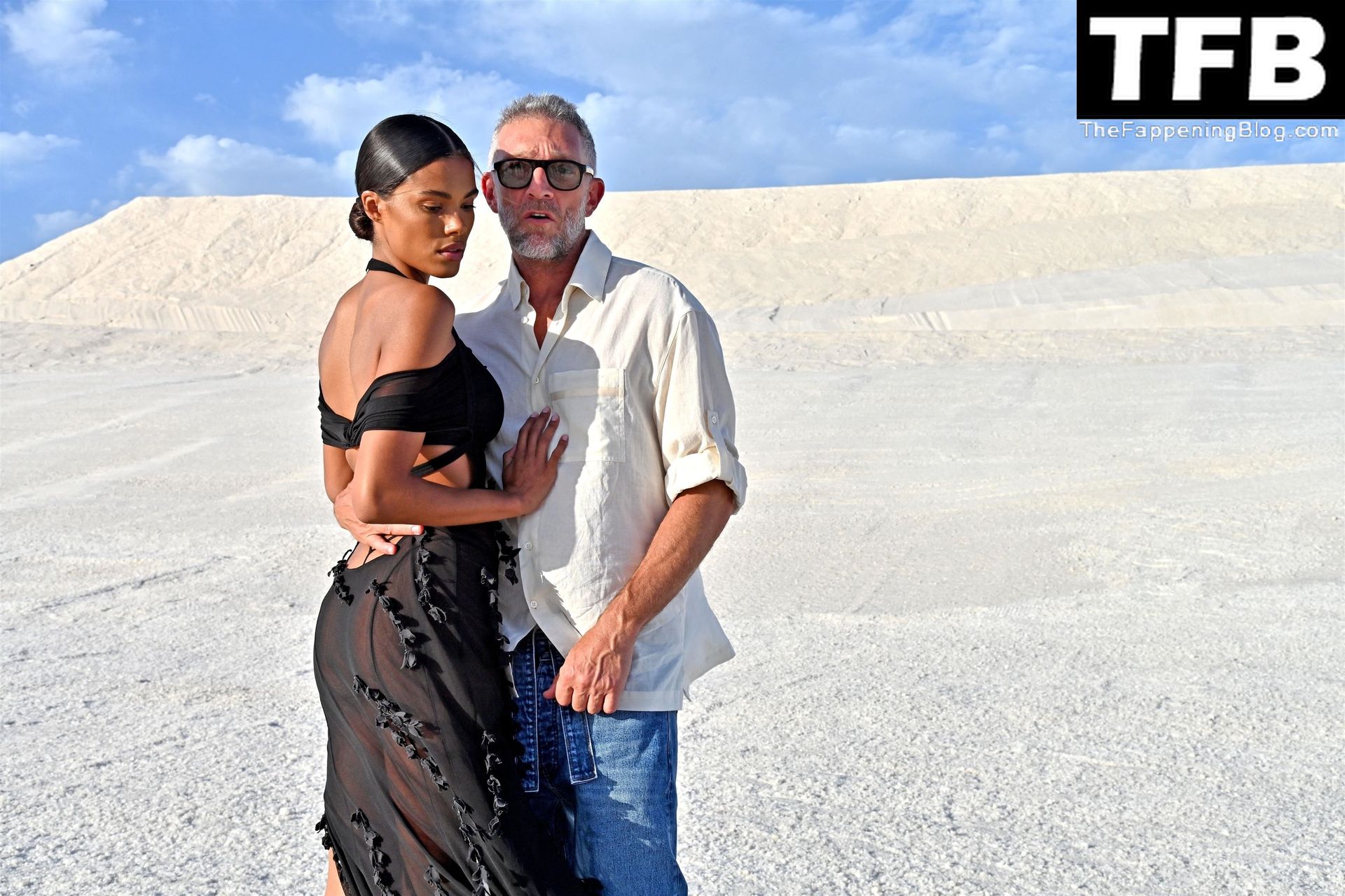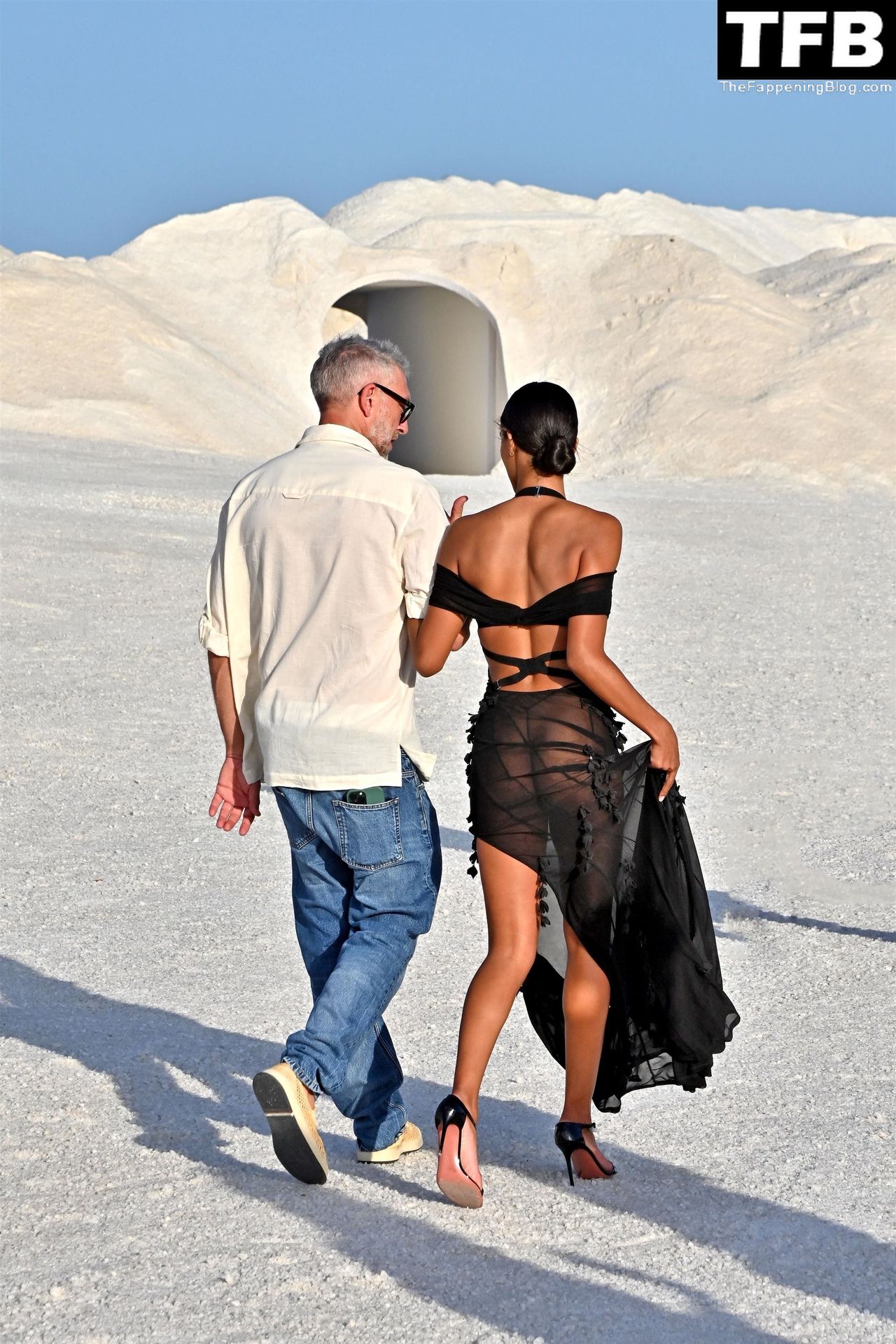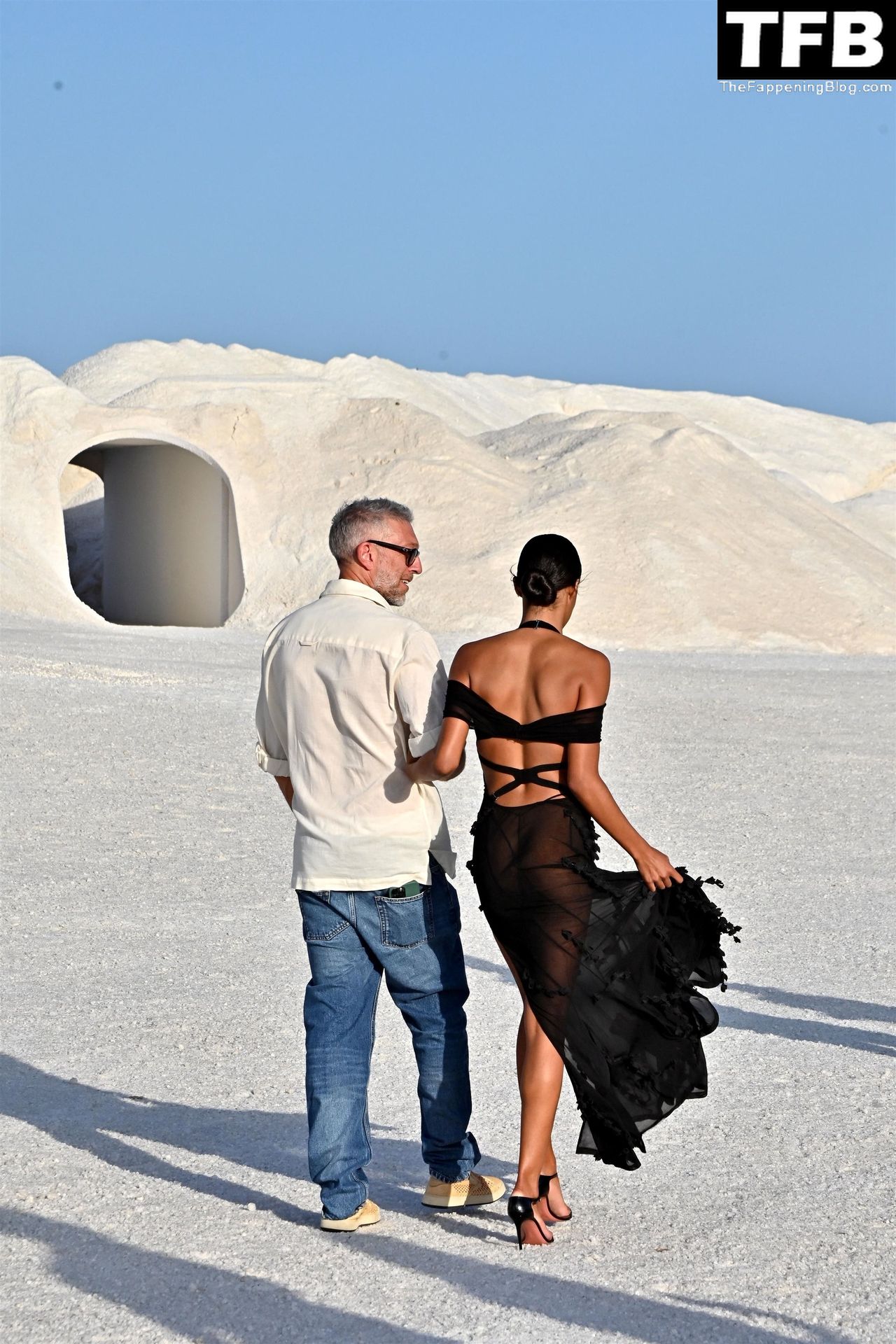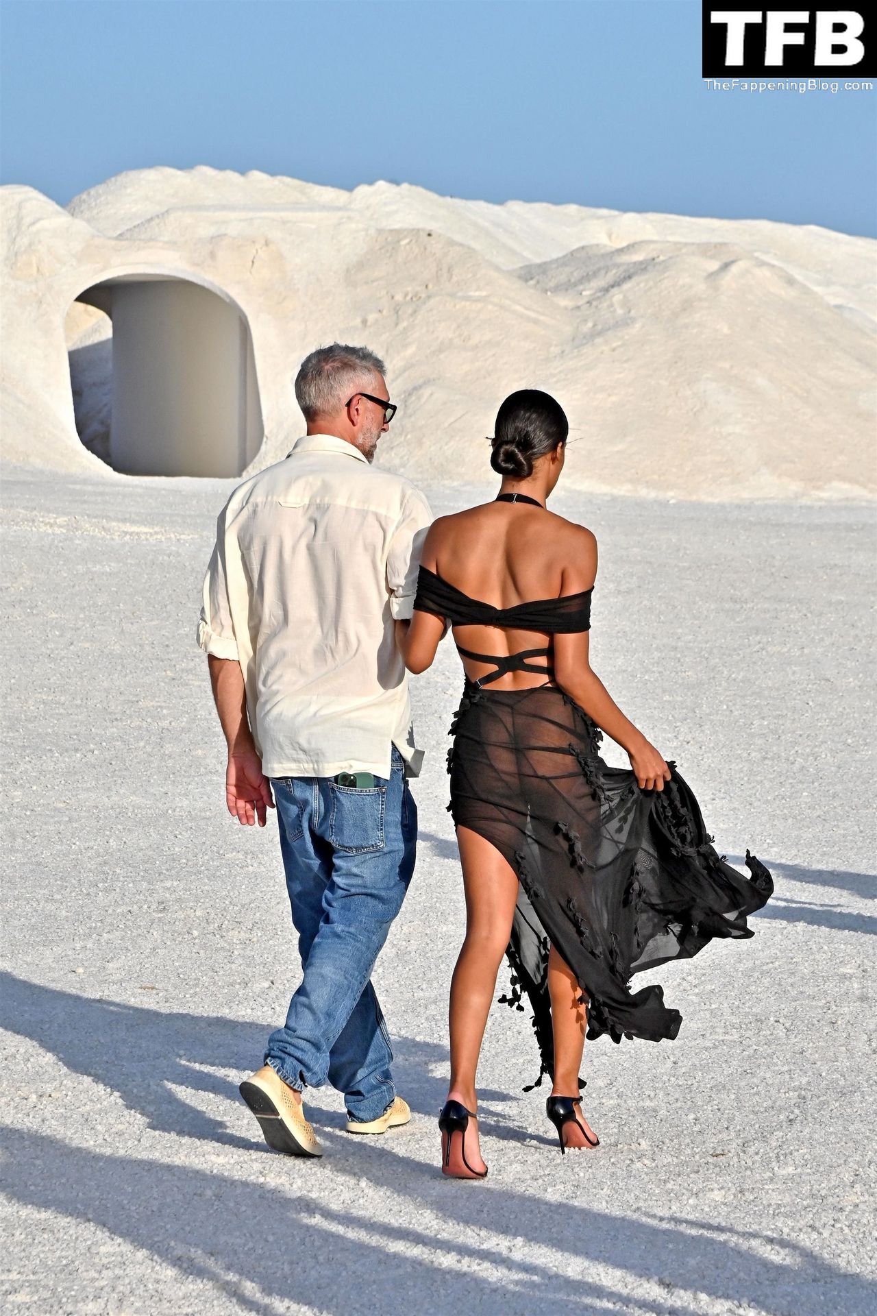 La modella Tina Kunakey partecipa alla sfilata di moda “Le Papier (La Carta)” di Jacquemus ad Arles, Francia, 27/06/2022.