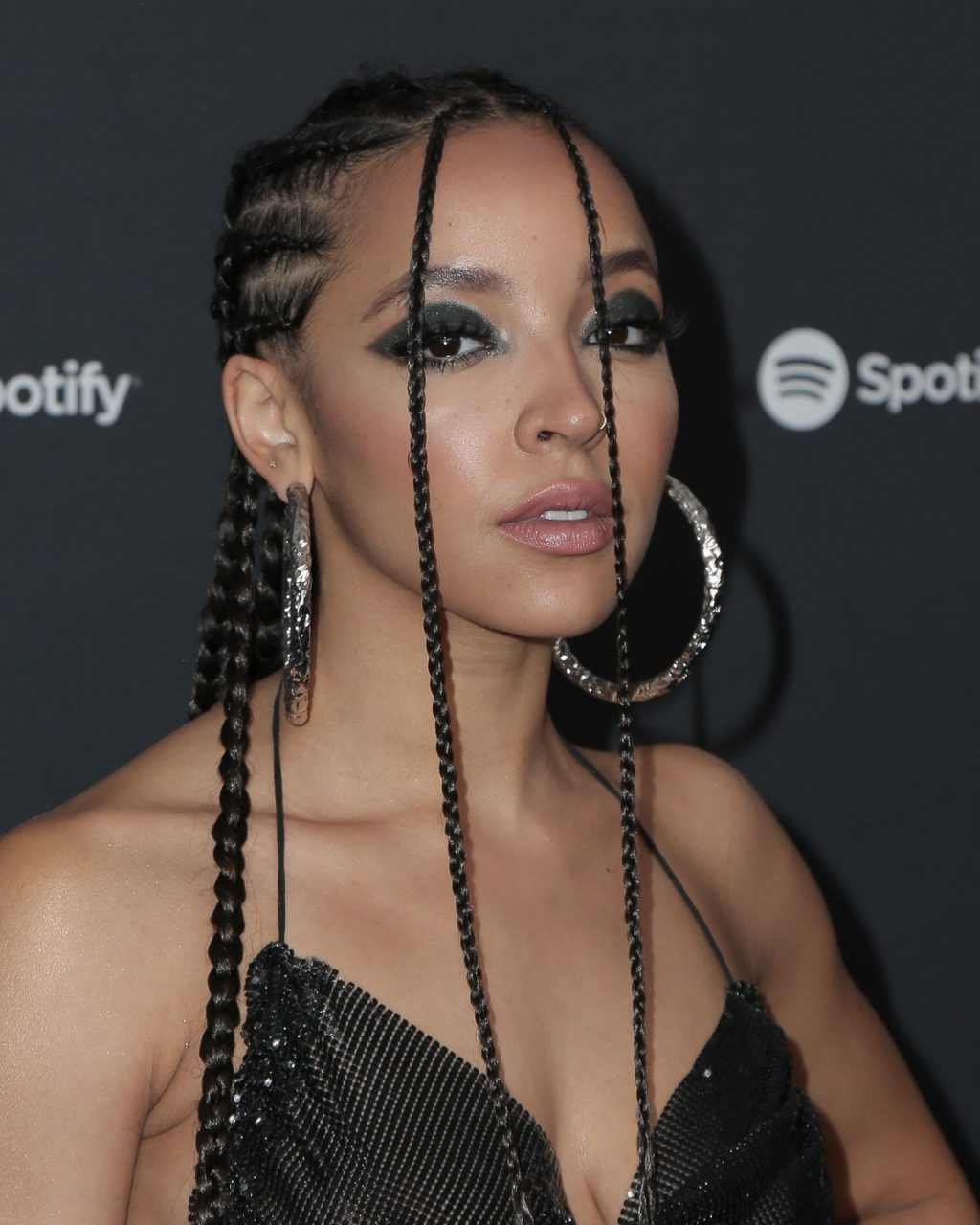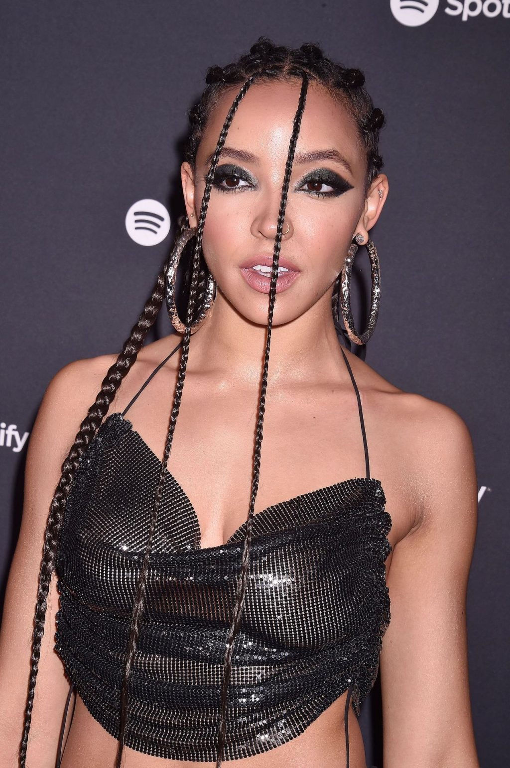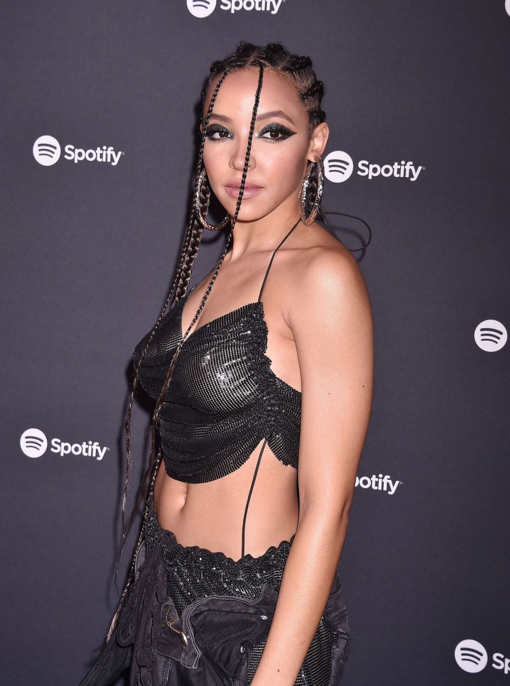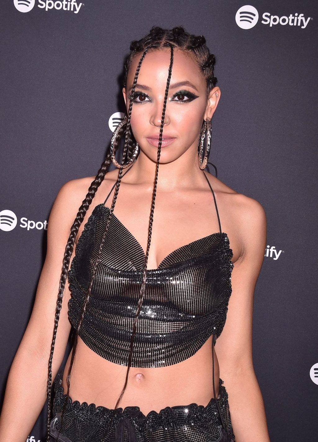 La cantante Tinashe ha mostrato il suo seno indossando un top trasparente mentre partecipava alla festa Spotify Best New Artist 2020 presso The Lot Studios a West Hollywood, 23/01/2020.