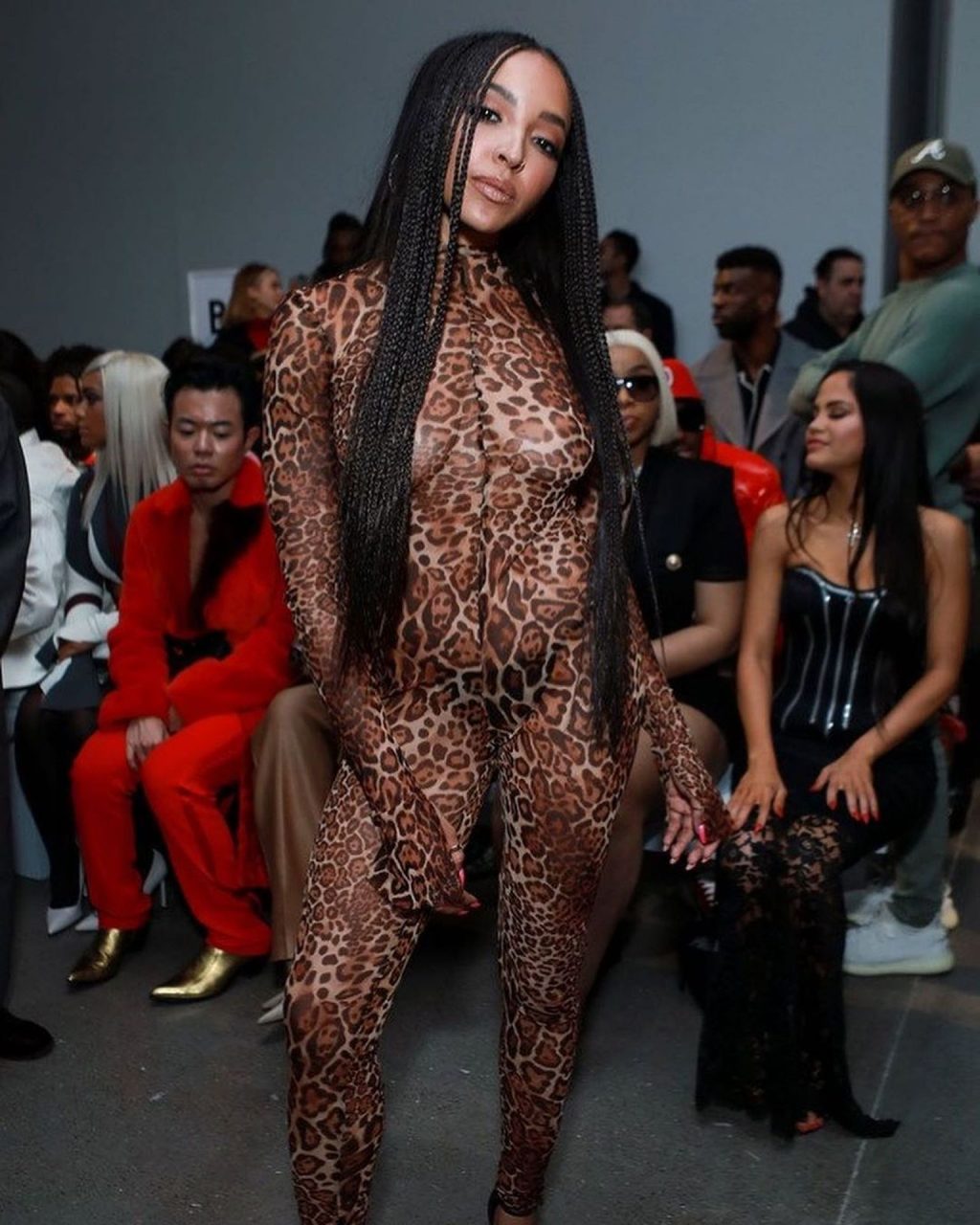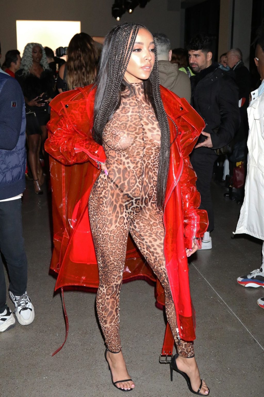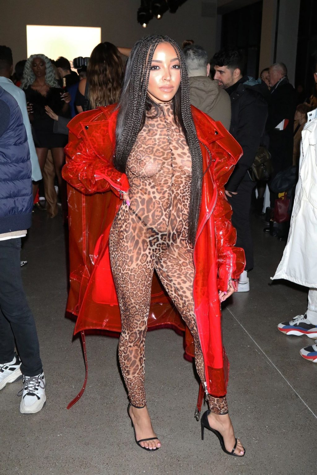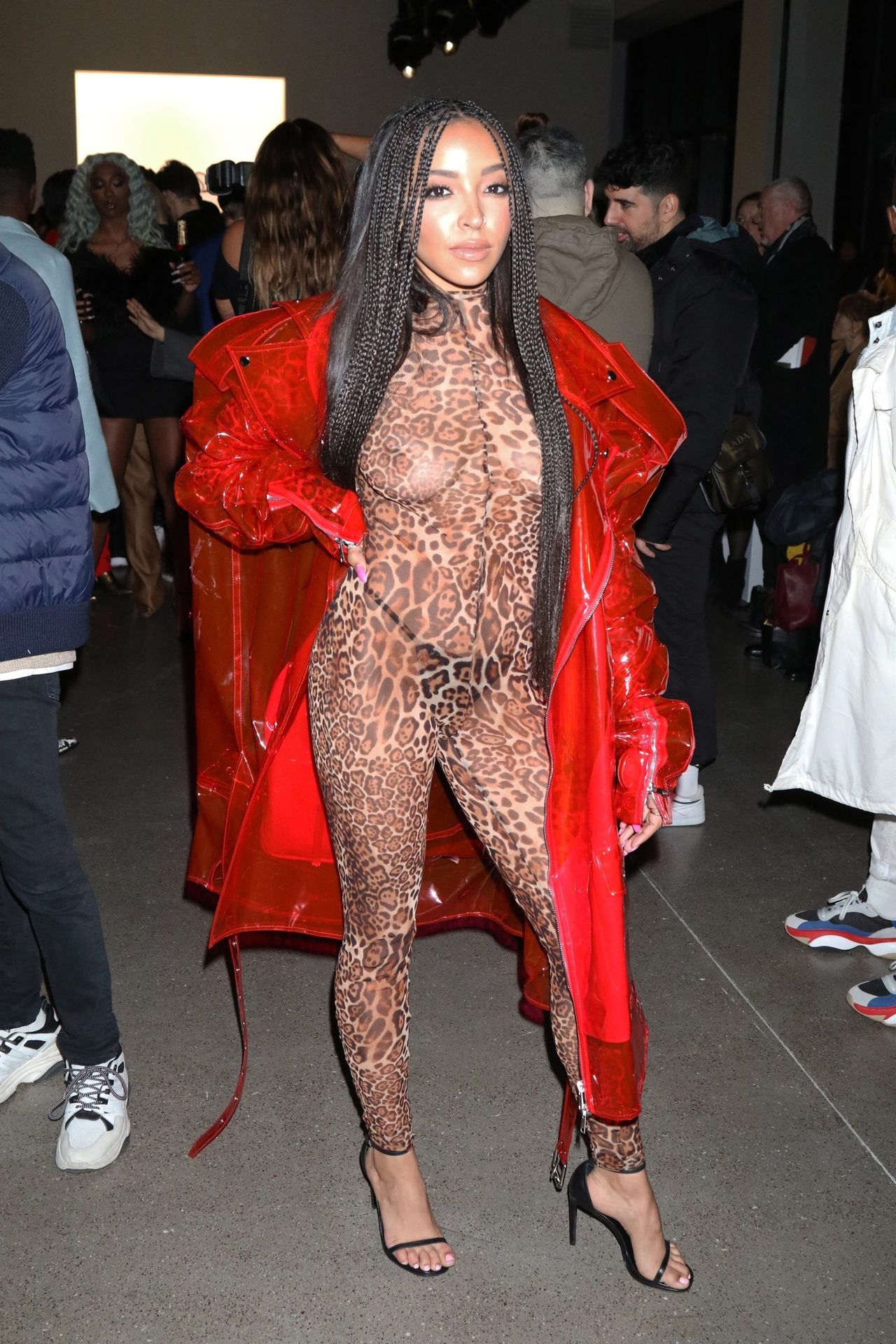 Tinashe è stata fotografata con una tutina trasparente a stampa leopardata mentre arrivava al LaQuan Smith Fashion Show durante la NYFW 2020 presso Spring Studios a New York City, 02/08/2020.