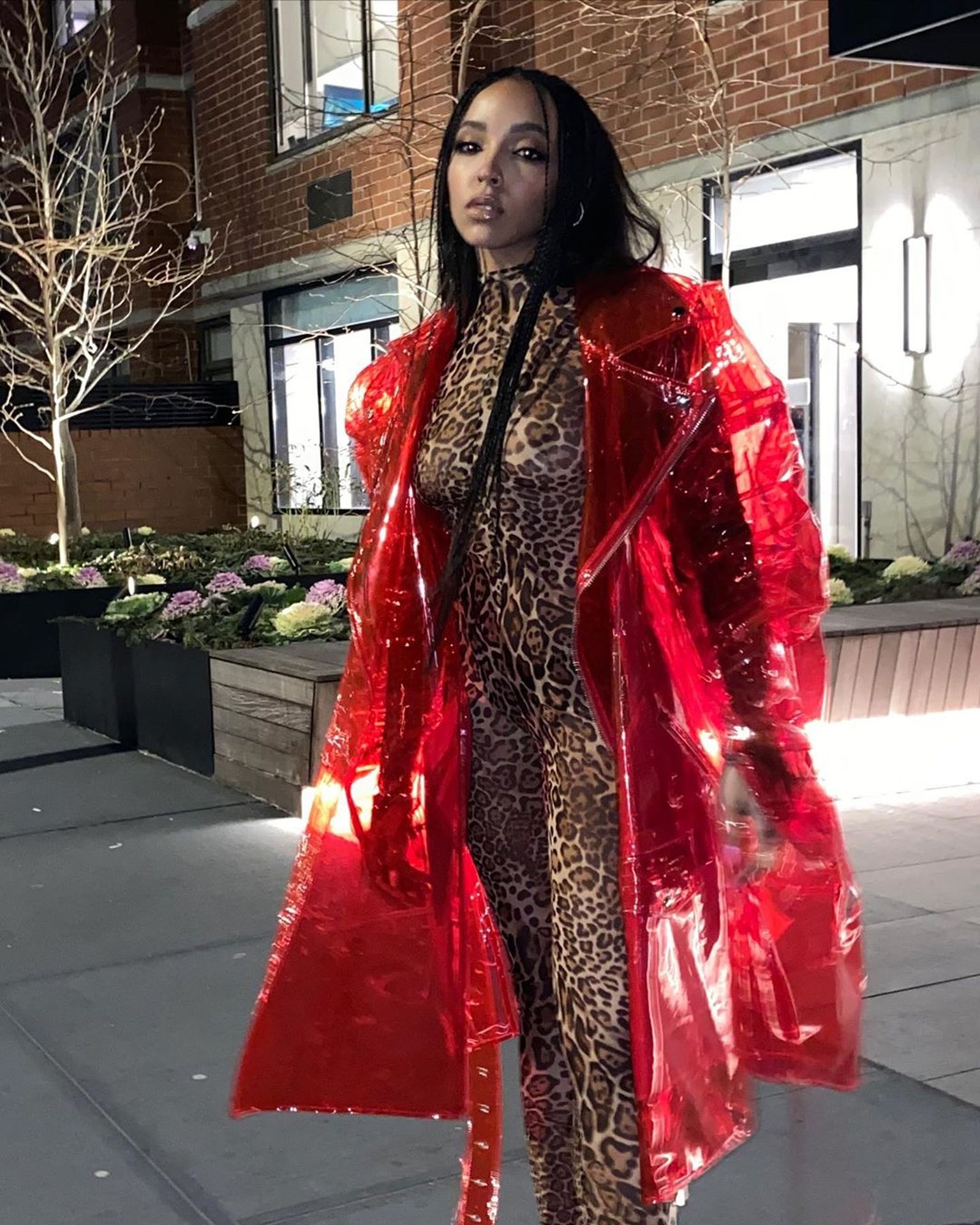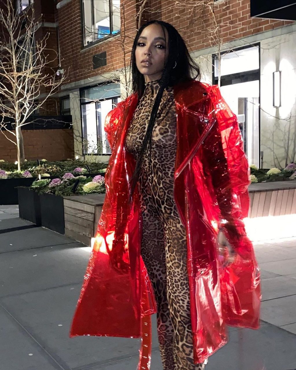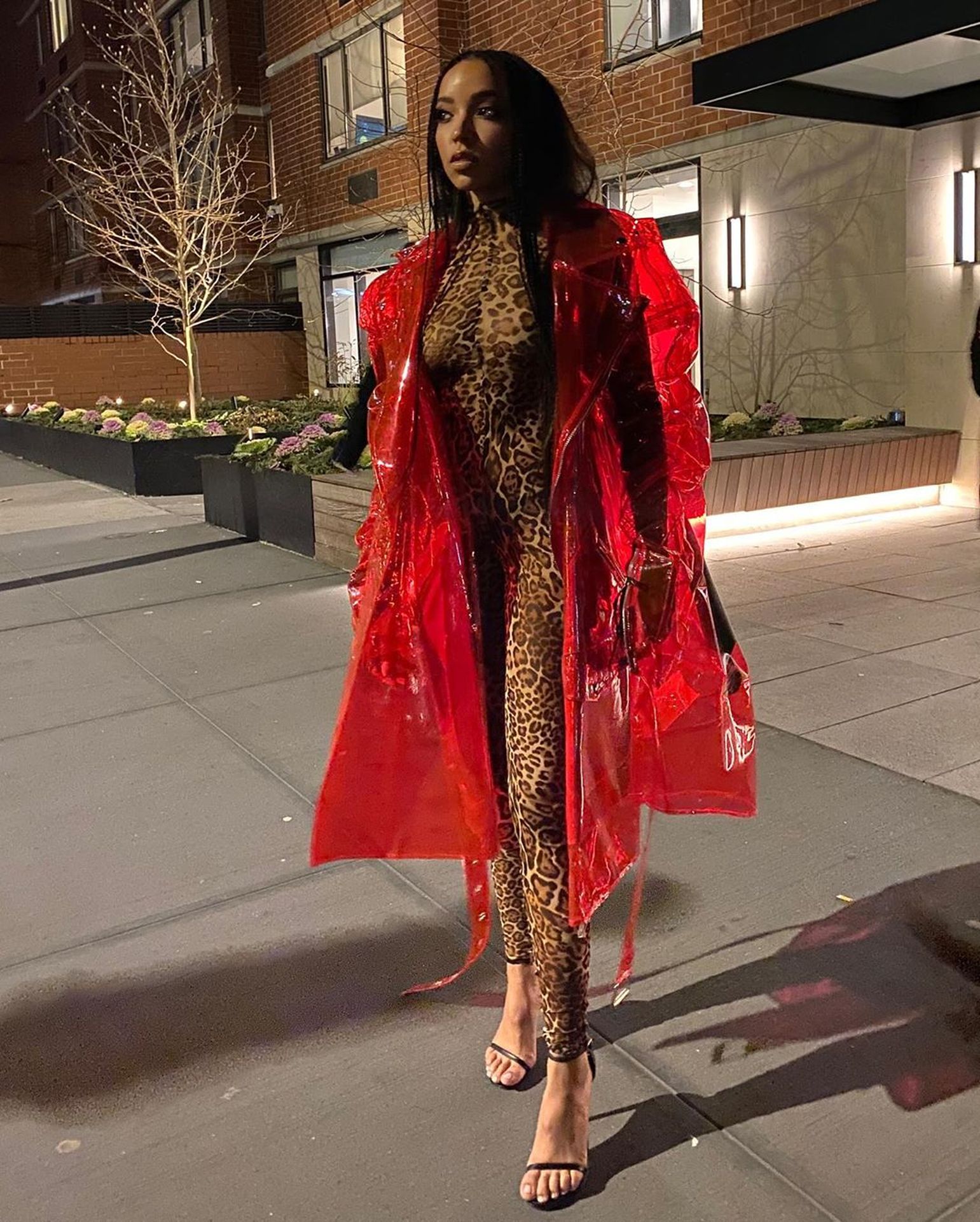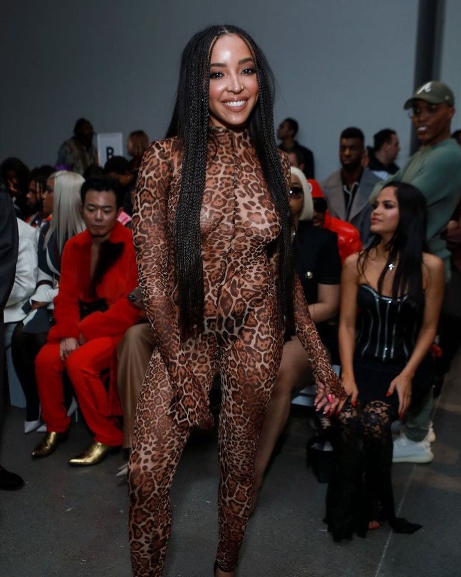 Tinashe è stata fotografata con una tutina trasparente a stampa leopardata mentre arrivava al LaQuan Smith Fashion Show durante la NYFW 2020 presso Spring Studios a New York City, 02/08/2020.