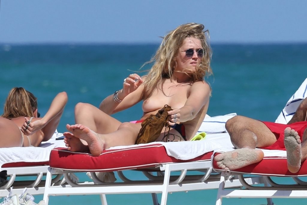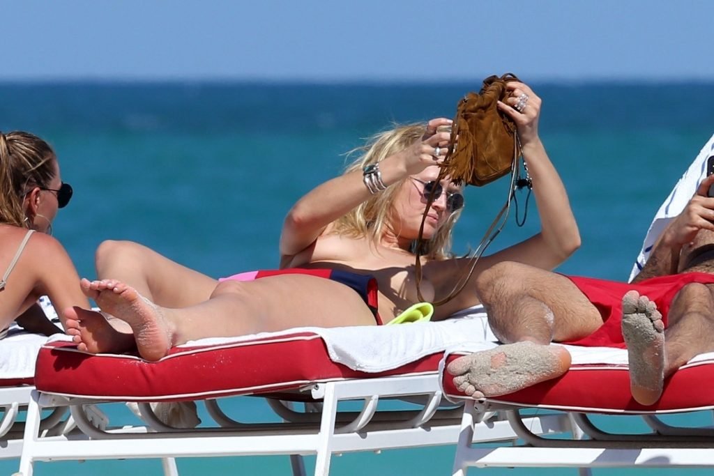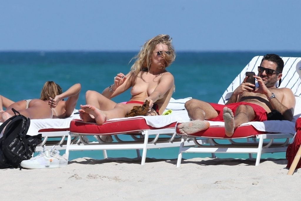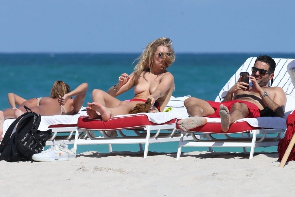 La modella e attrice Toni Garrn si reca in spiaggia con amici per prendere un po’ di sole durante il weekend di Pasqua a Miami, 01/04/2018. Toni ha scelto di togliersi il top per la giornata, mostrando il seno nudo. Forse Toni non vuole semplicemente alcuna linea di abbronzatura.
