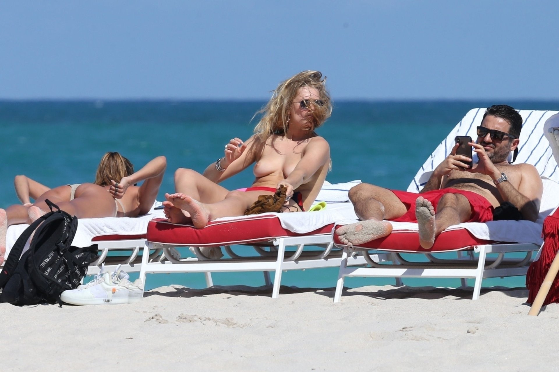 La modella e attrice Toni Garrn si reca in spiaggia con amici per prendere un po’ di sole durante il weekend di Pasqua a Miami, 01/04/2018. Toni ha scelto di togliersi il top per la giornata, mostrando il seno nudo. Forse Toni non vuole semplicemente alcuna linea di abbronzatura.