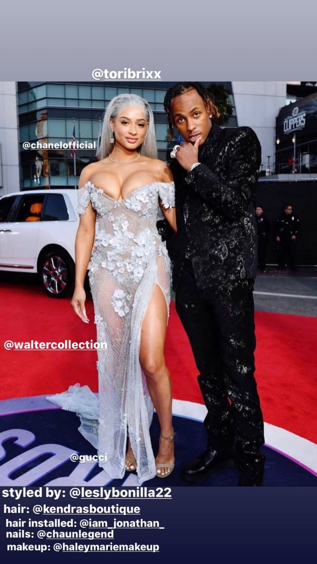 Rich The Kid e la modella/DJ formosa Tori Brixx (Hughes) posano agli American Music Awards 2019 tenutisi al Microsoft Theater di Los Angeles, 24/11/2019. Lei ha reso speciale questa serata!