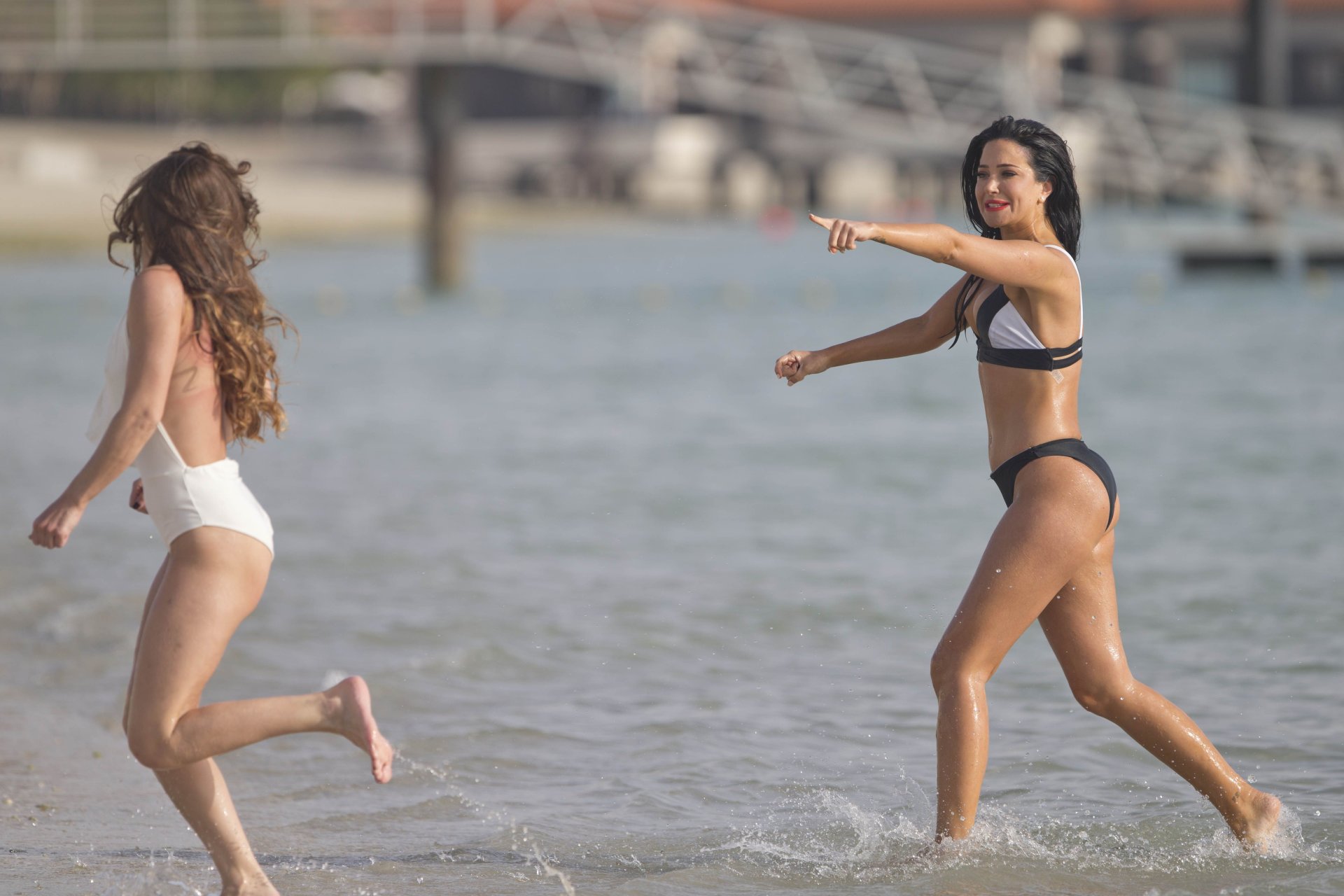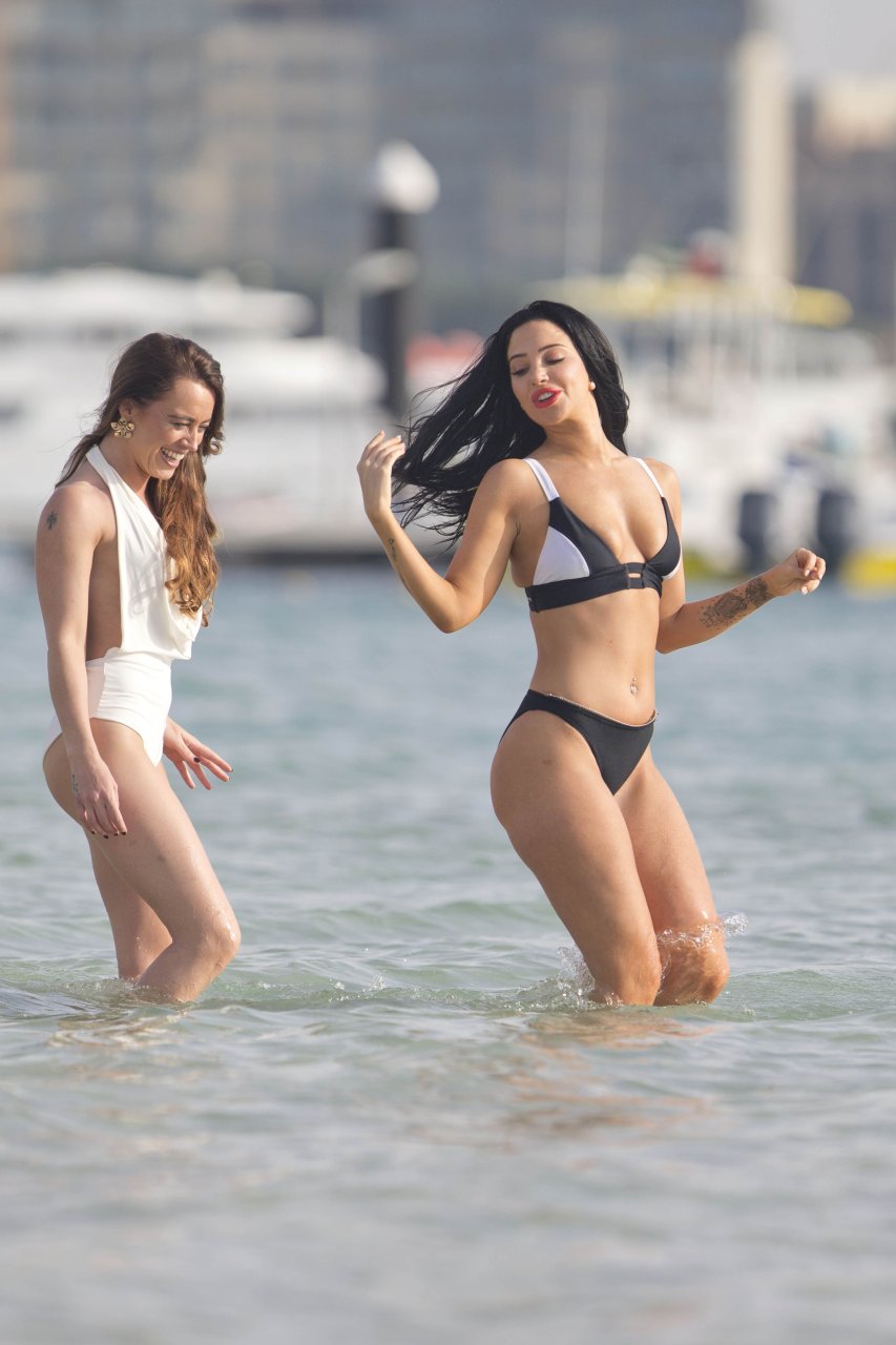 Tulisa Contostavlos e una ragazza sconosciuta viste a Dubai indossare un bikini, 19/03/2016. Corpo bagnato, piccolo scivolamento del capezzolo e bel sedere. Tulisa Contostavlos è una cantante, cantautrice, attrice e personaggio televisivo inglese. Età: 27 (13 luglio 1988).