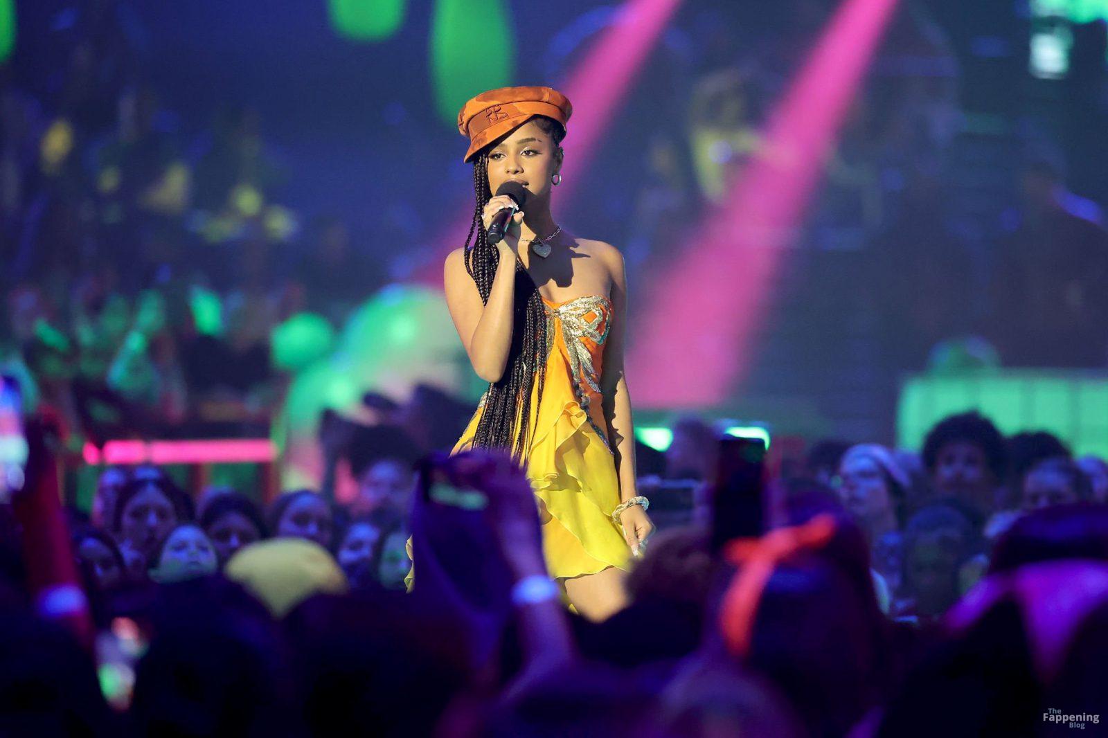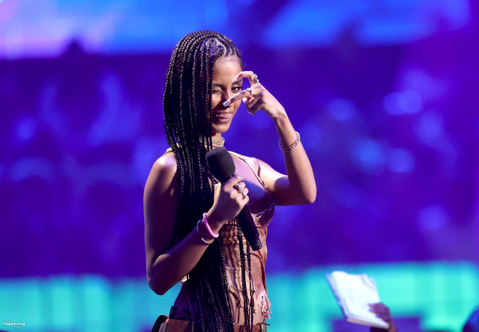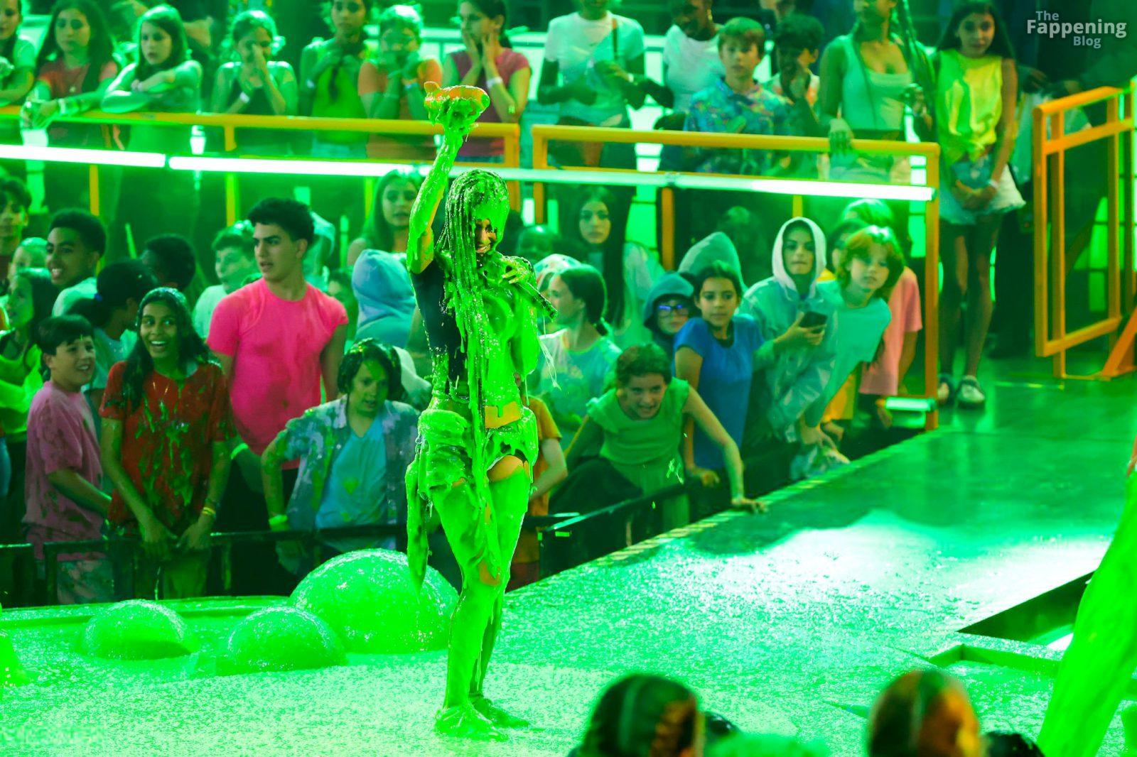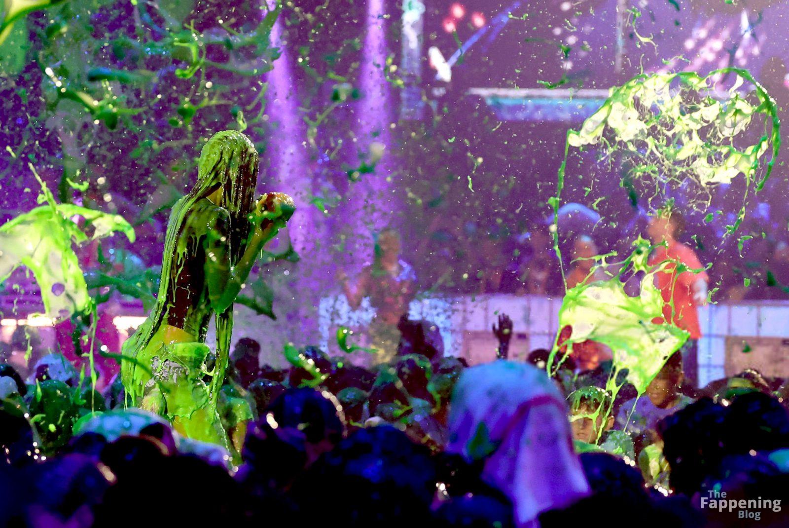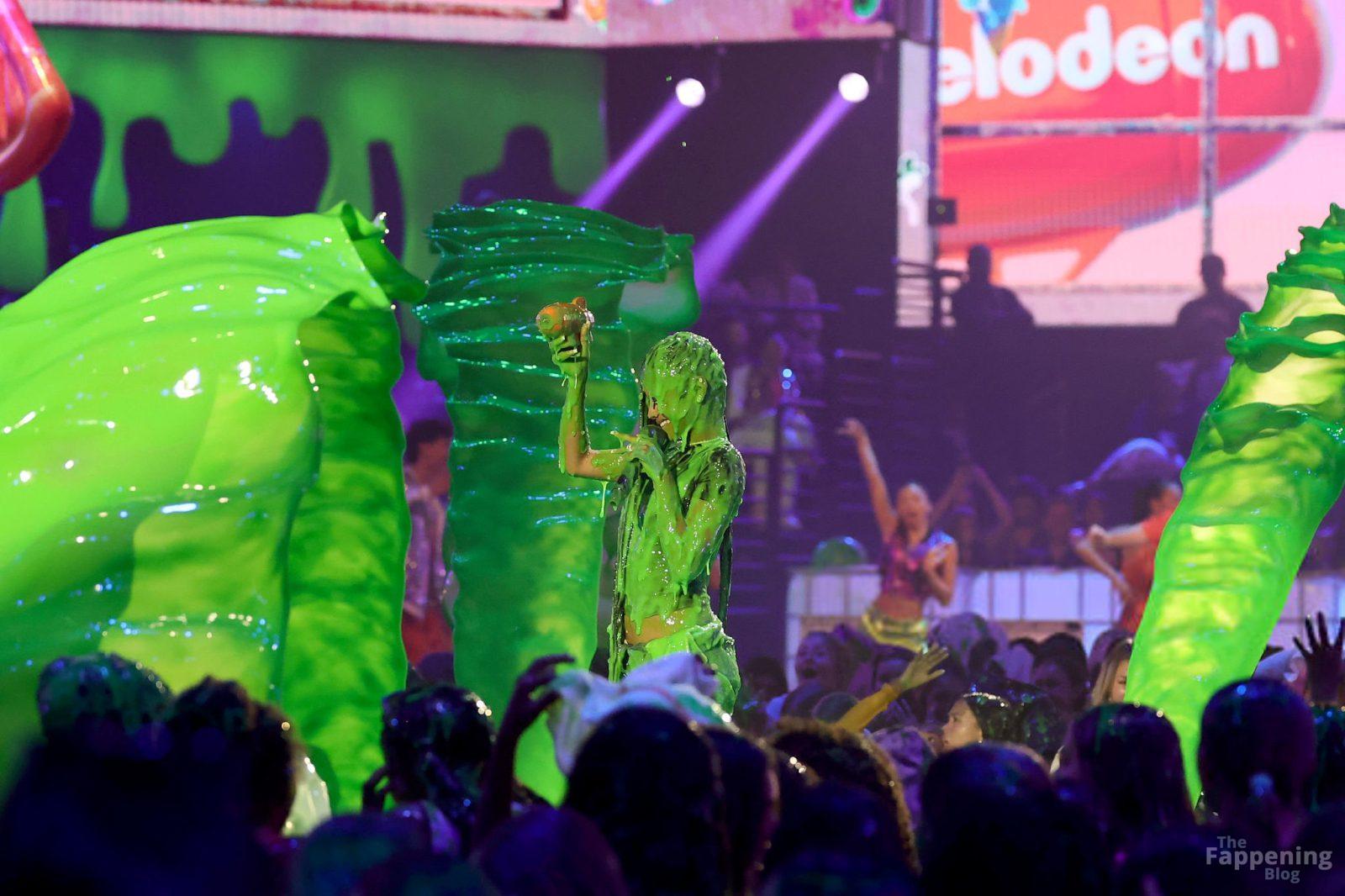 La cantante Tyla si è fatta notare ai Nickelodeon Kids’ Choice Awards 2025. Ha calpestato il tappeto arancione con un outfit che abbracciava la sua figura snella: un crop top crema aderente e a coste che le stringeva il seno, abbinato a una audace gonna con stampa jungle con uno spacco vertiginoso. Date un’occhiata anche alla sua pazzesca esibizione sul palco!