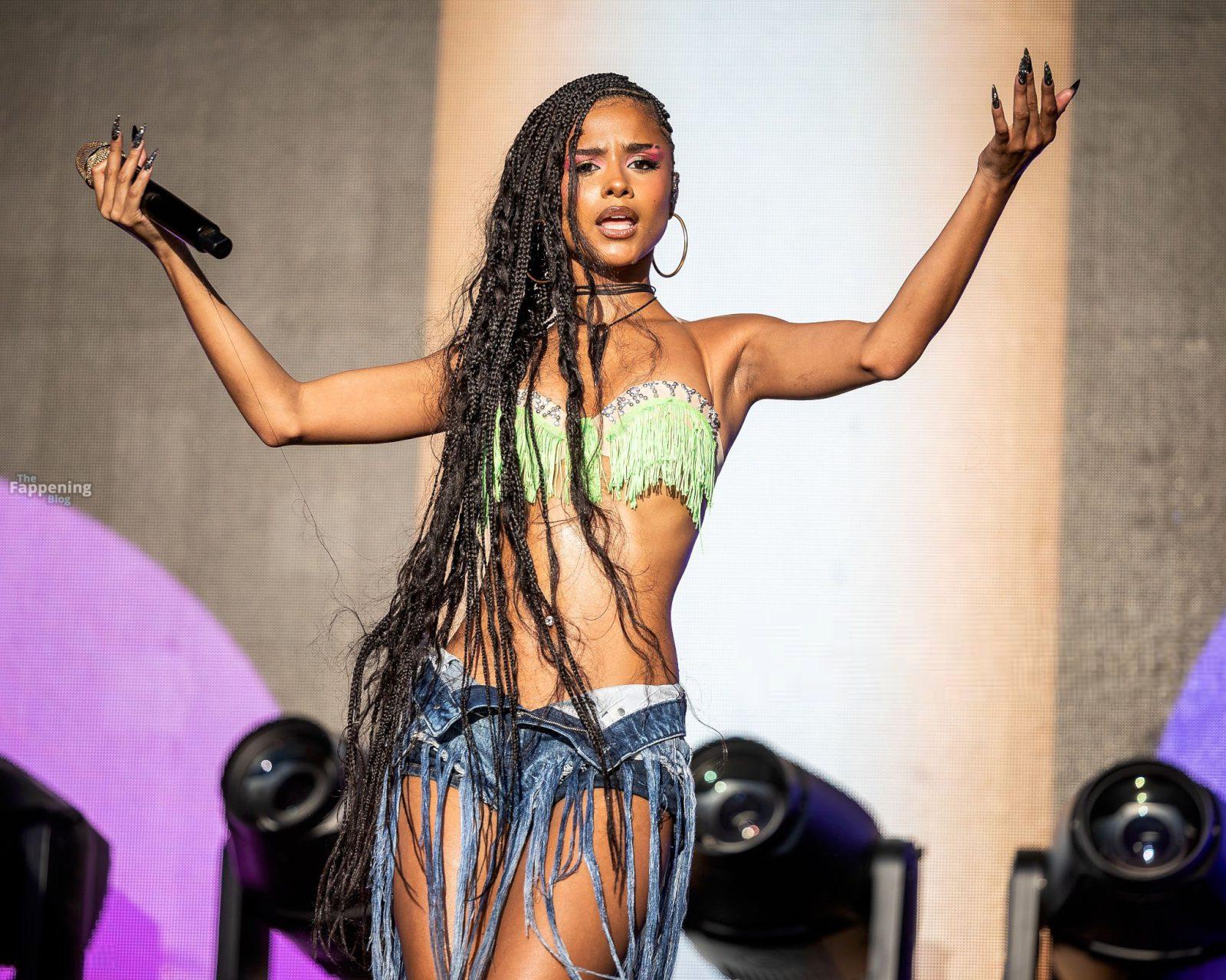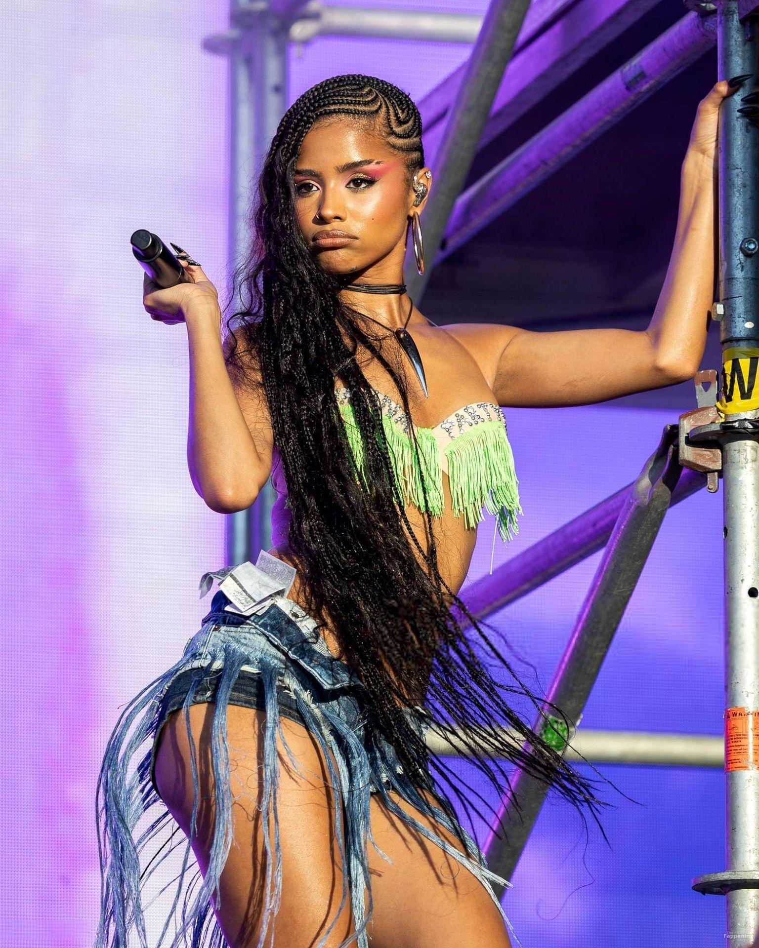 La cantante Tyla sfoggia il suo corpo mozzafiato sul palco del Festival di Slottsfjell.