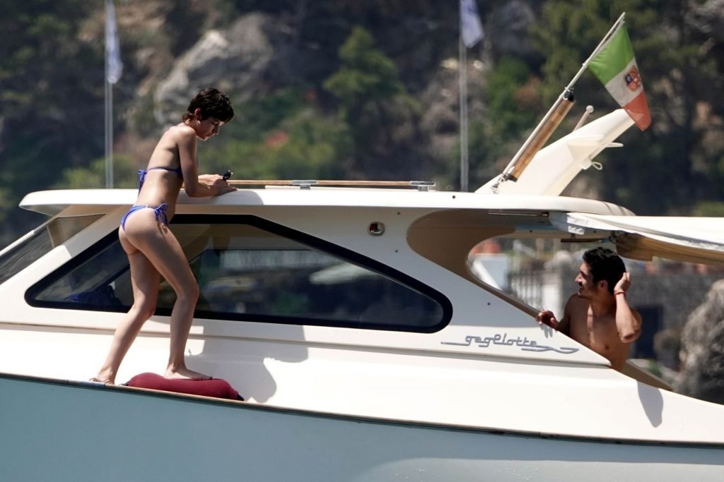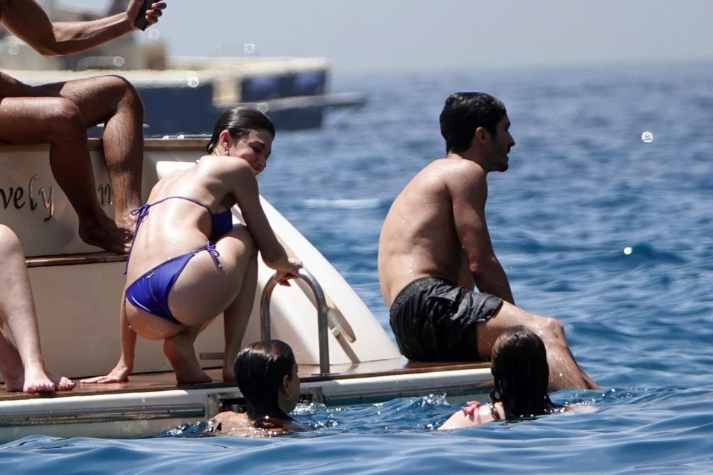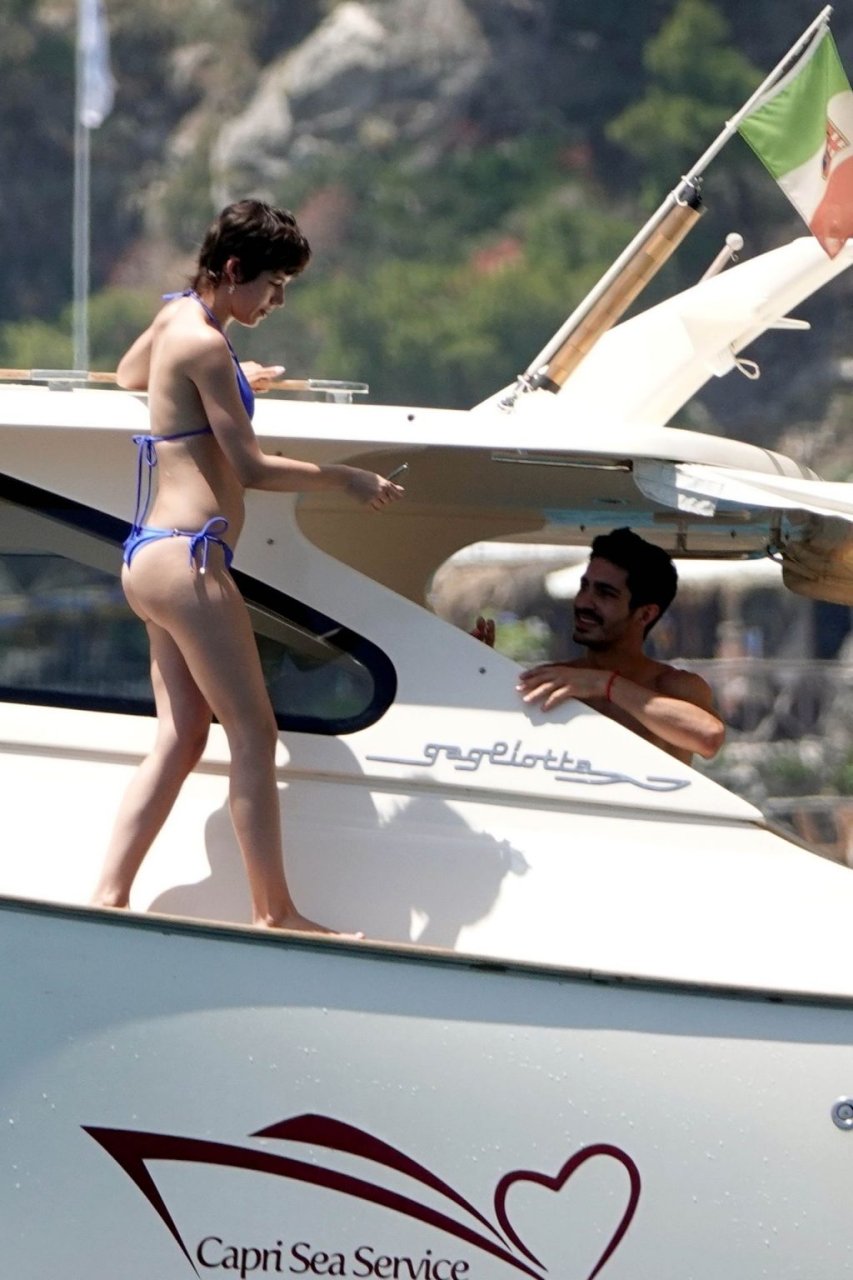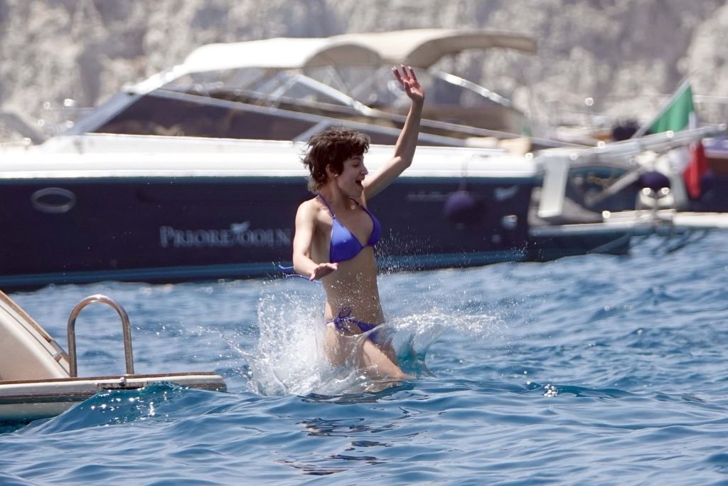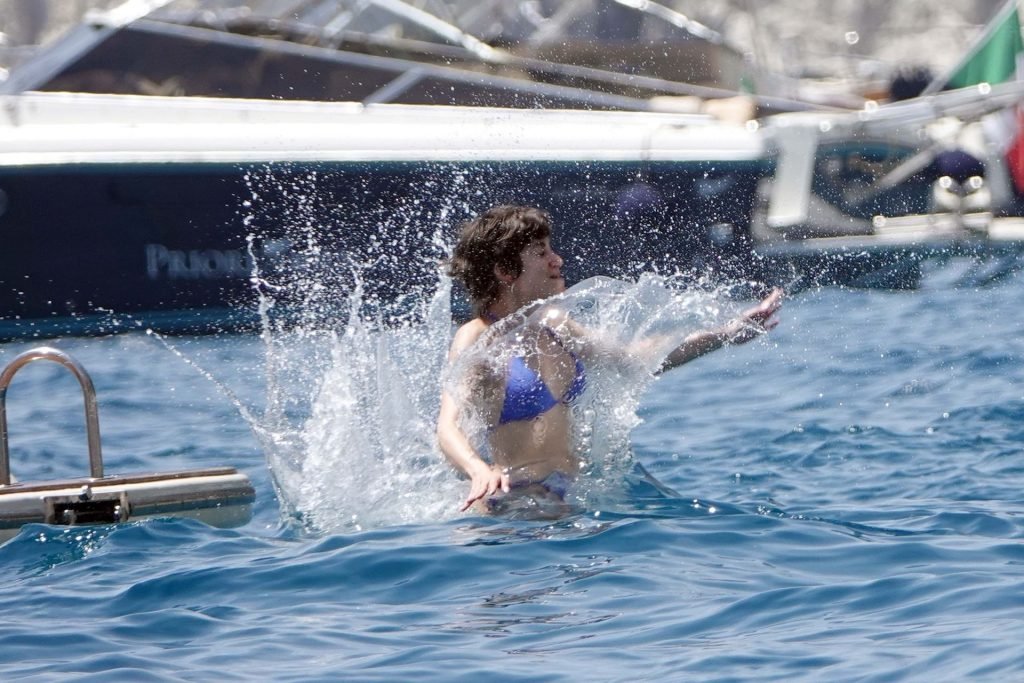 L’attrice spagnola Úrsula Corberó è stata vista mentre faceva splash in un bikini blu con il suo partner Chino Darin e amici in vacanza sull’isola di Capri, 14/06/2019.
