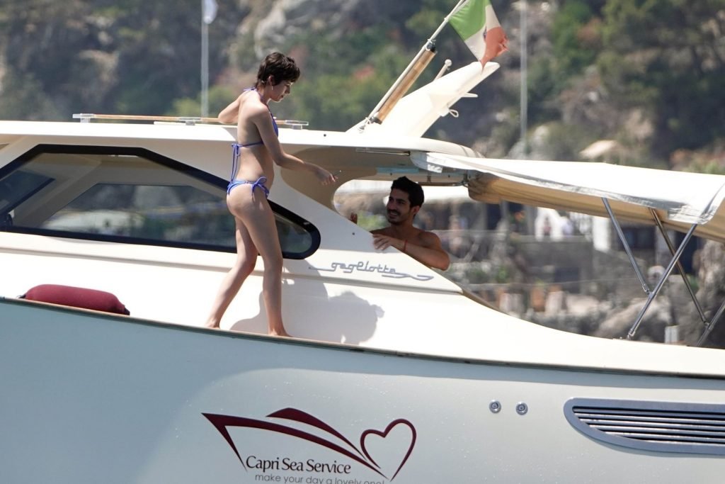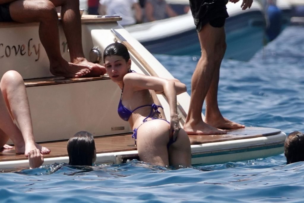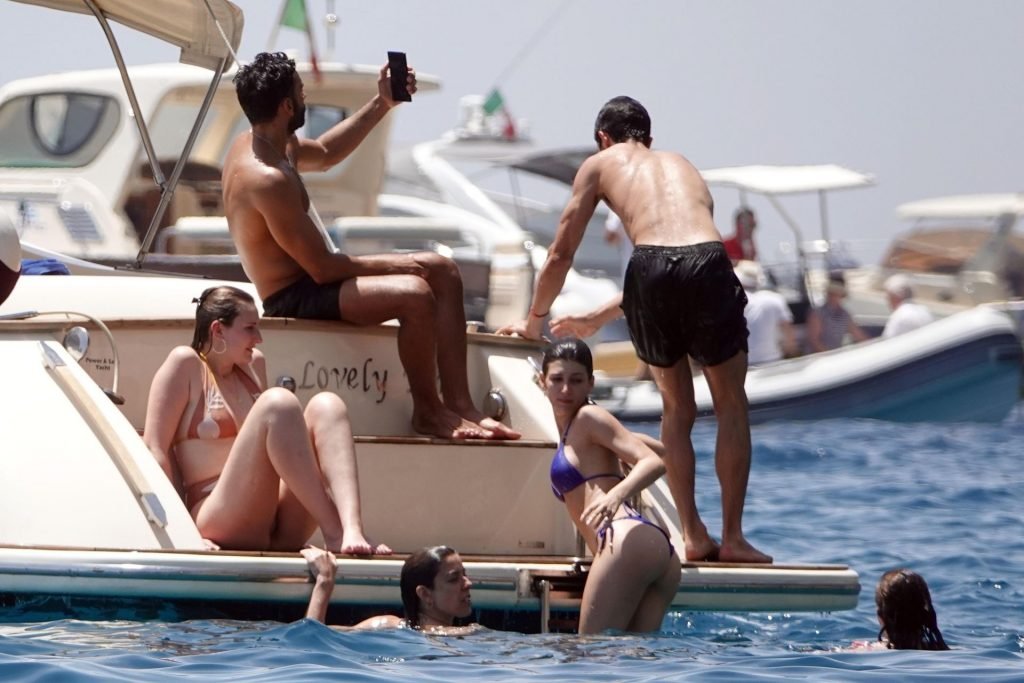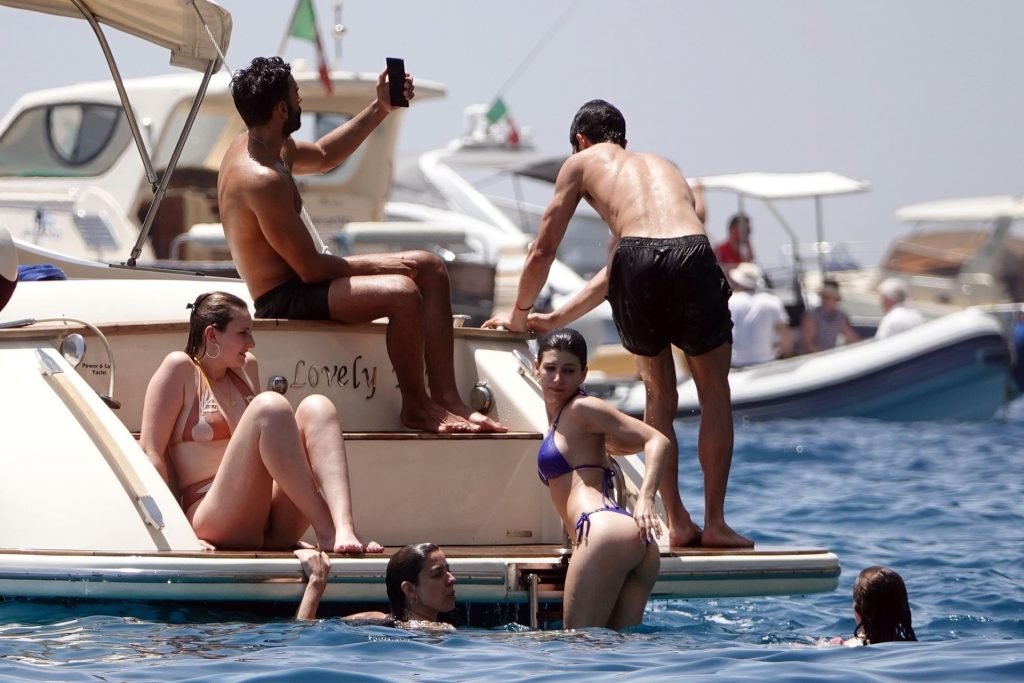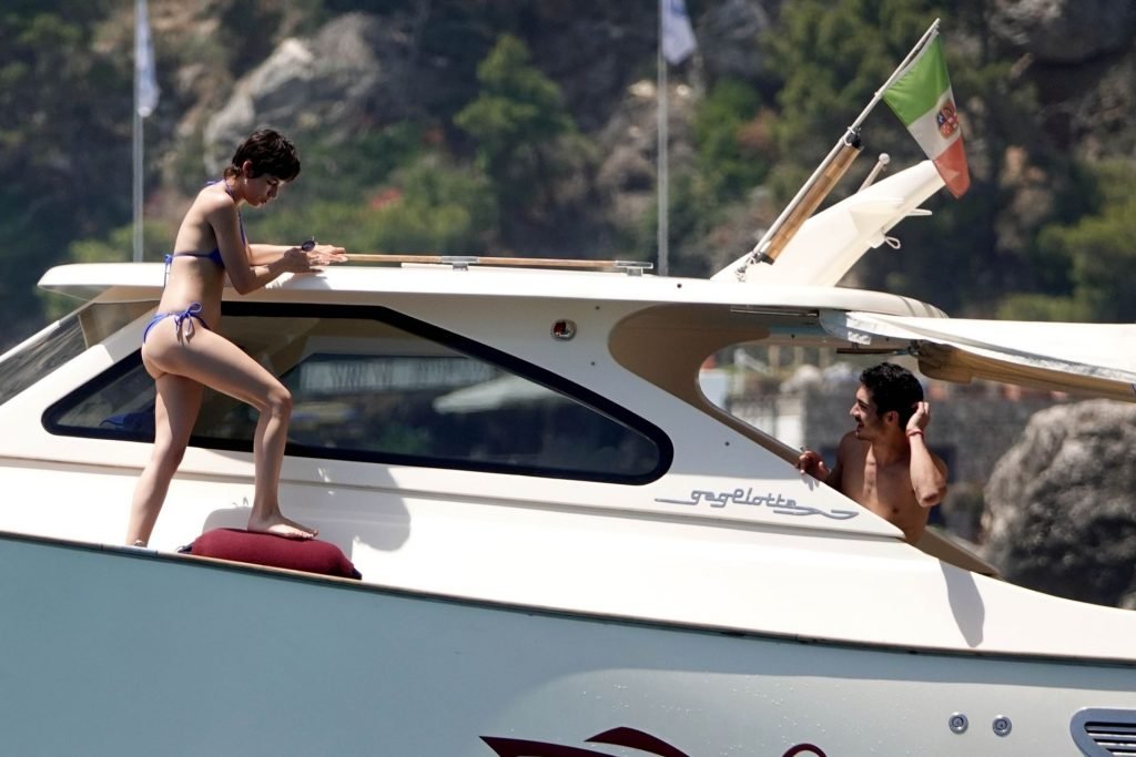 L’attrice spagnola Úrsula Corberó è stata vista mentre faceva splash in un bikini blu con il suo partner Chino Darin e amici in vacanza sull’isola di Capri, 14/06/2019.