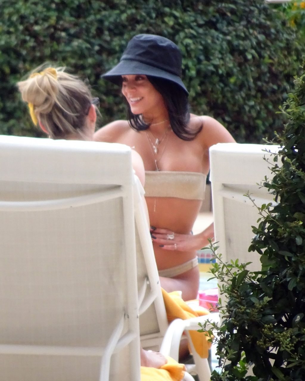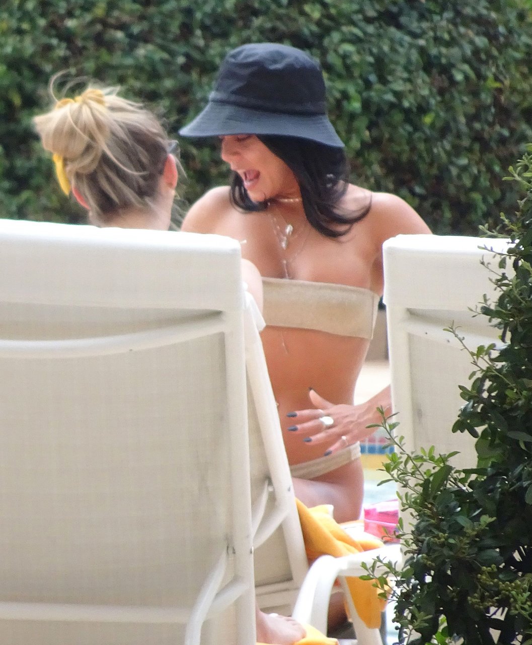 Vanessa Hudgens sorride a tutto spiano e senza trucco mentre mostra il suo corpo in bikini sotto il sole caldo con le sue amiche mentre si rilassano nella loro piscina di lusso a Las Vegas, 17/09/2019.