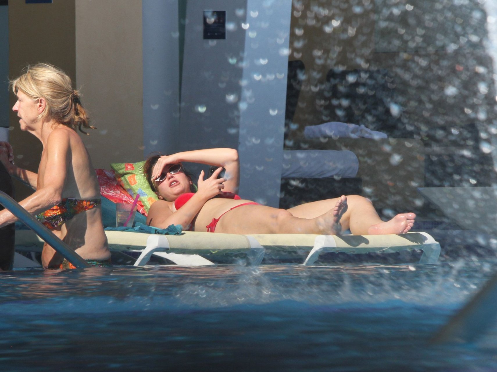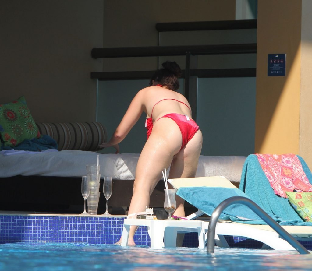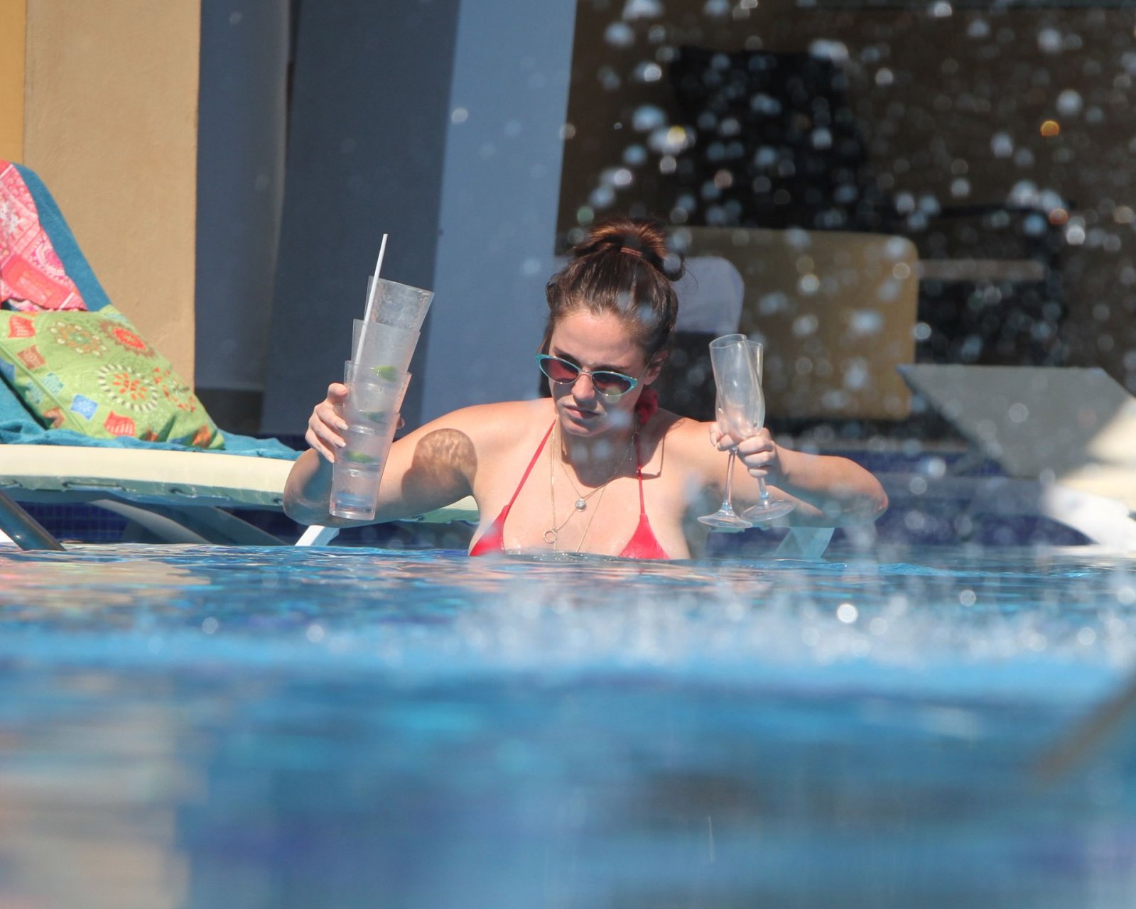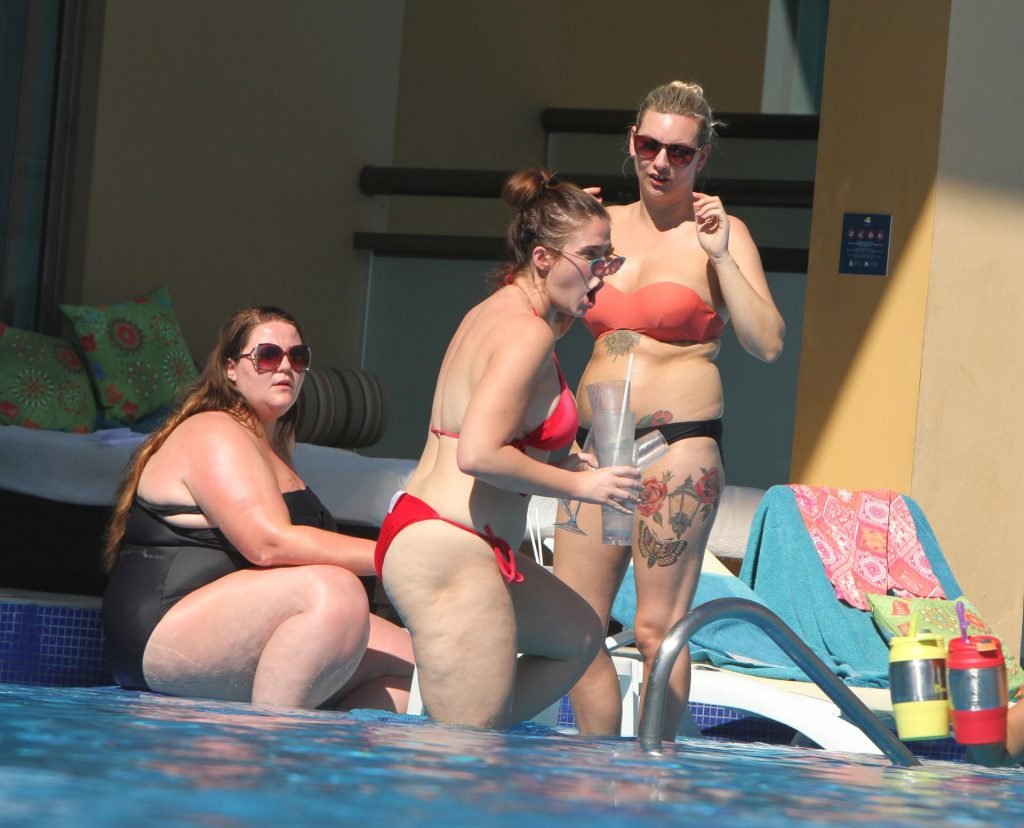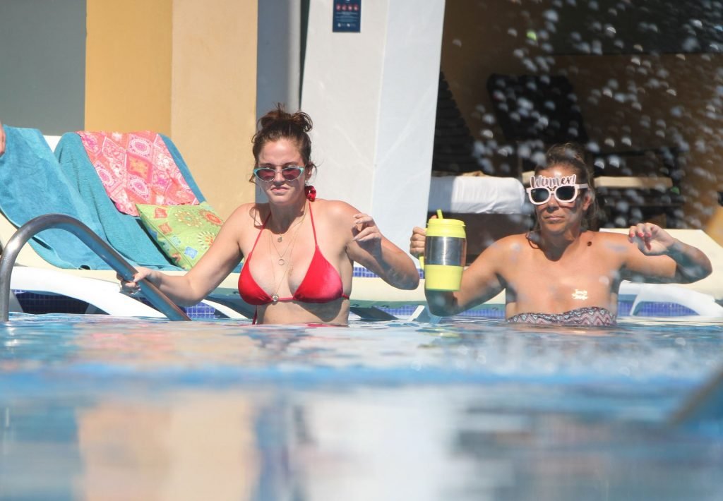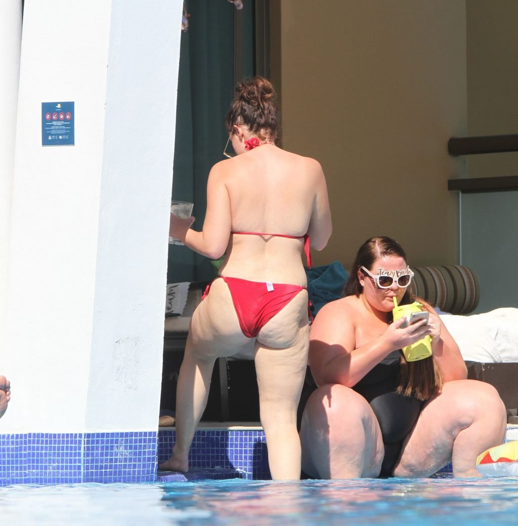 Vicky Pattison si diverte al sole con un bikini rosso a Tulum, Messico, 01/08/2019. La 31enne ex star di “Geordie Shore” indossava un sexy bikini rosso mentre è stata vista festeggiare l’addio al nubilato di sua sorella Laura in piscina.