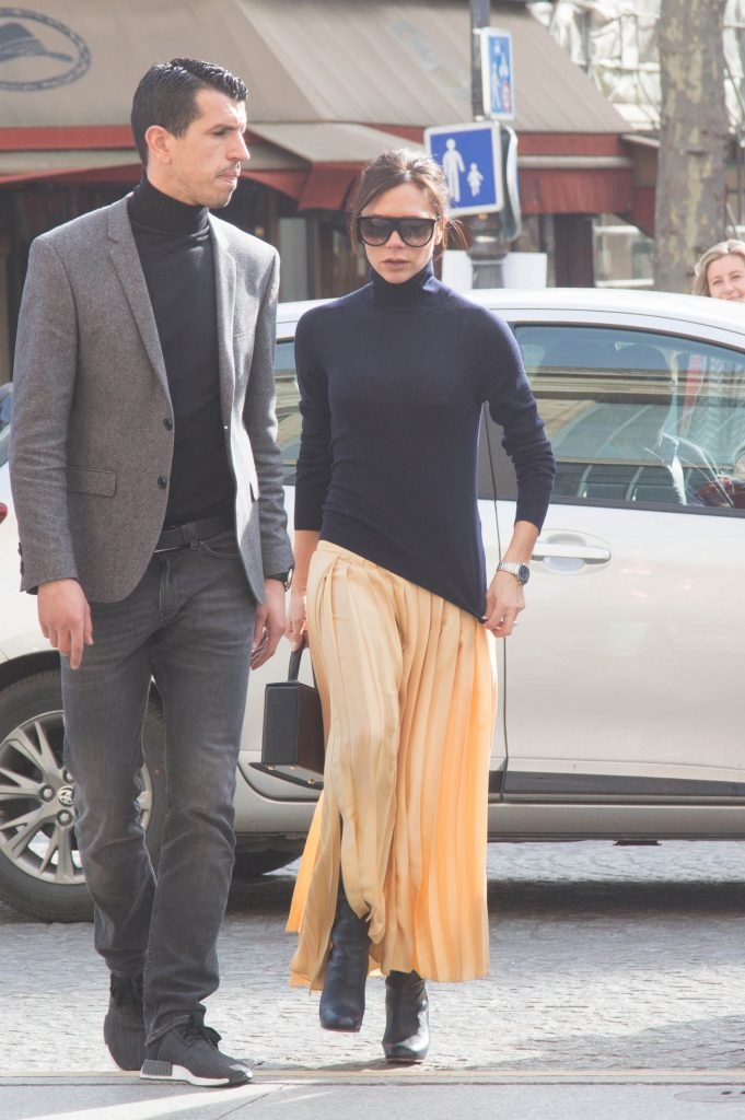 Ex star delle Spice Girls Victoria Beckham, 43 anni, mostra il suo piccolo seno con capezzoli duri mentre viene vista lasciare l’hotel La Reserve per Gare du Nord a Parigi, 14/03/2018. Speriamo che tutti siano felici. Victoria Caroline Beckham è conosciuta come stilista inglese, modella, donna d’affari e moglie del calciatore David Beckham.