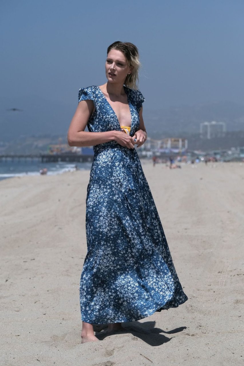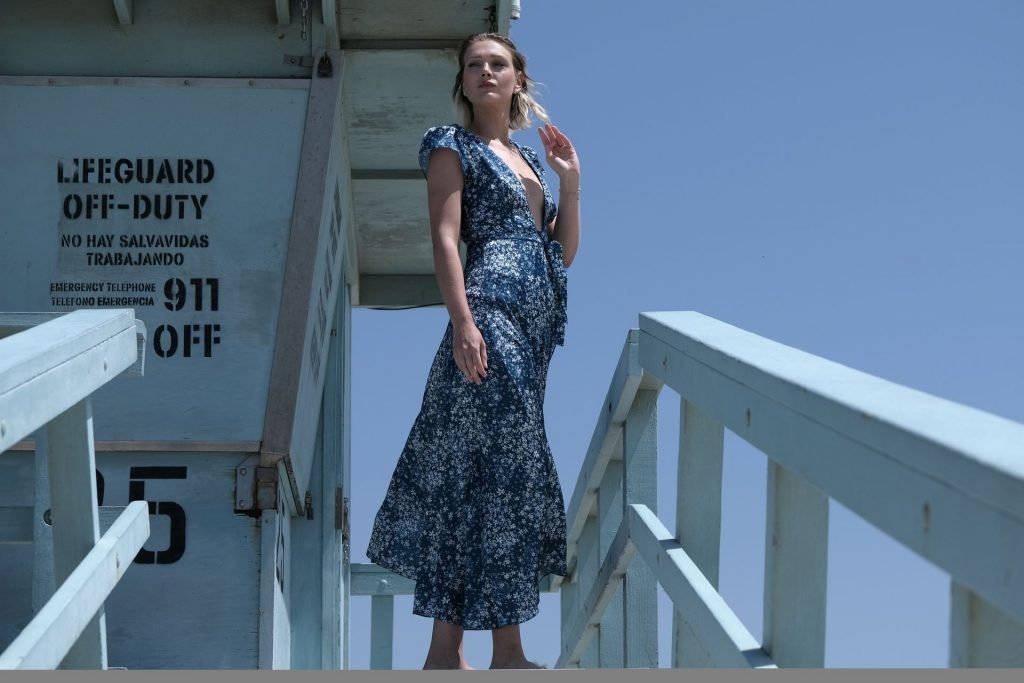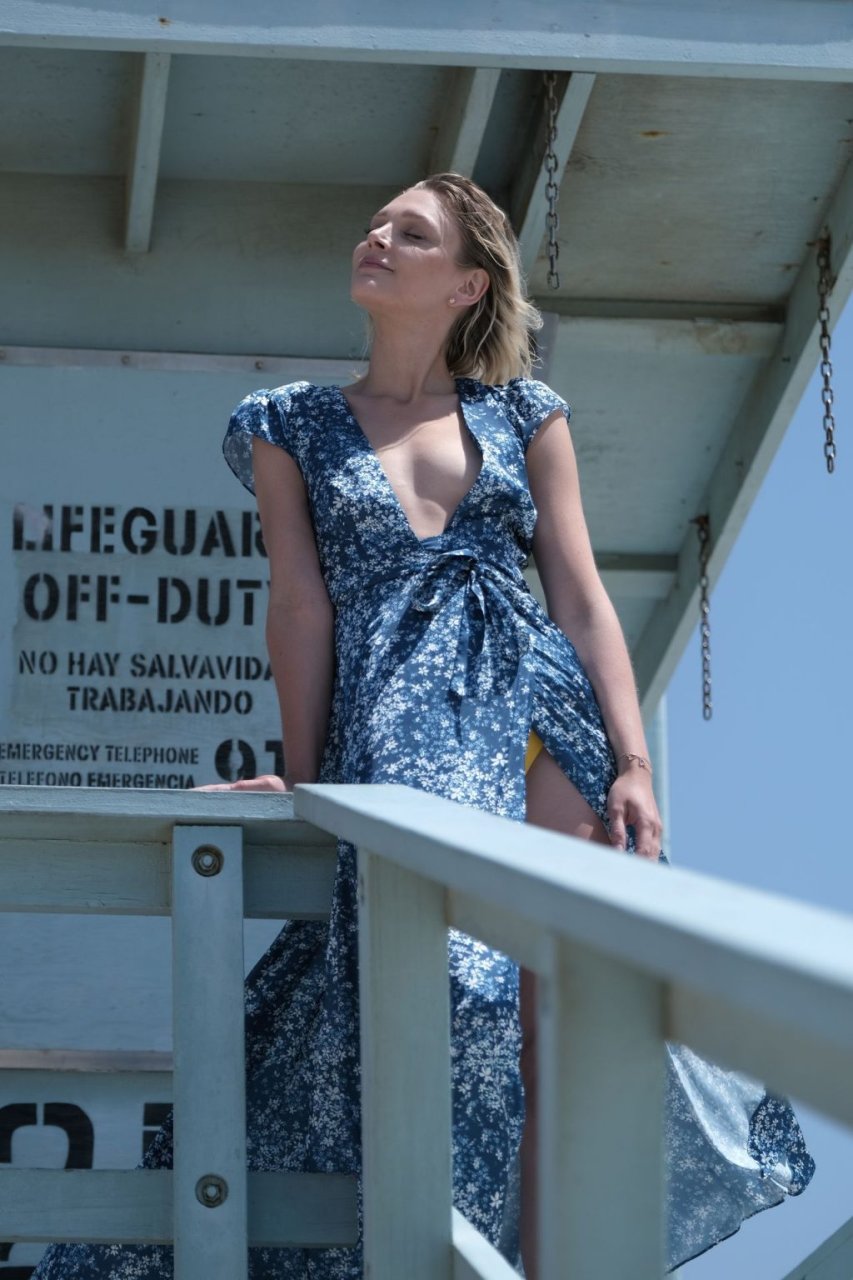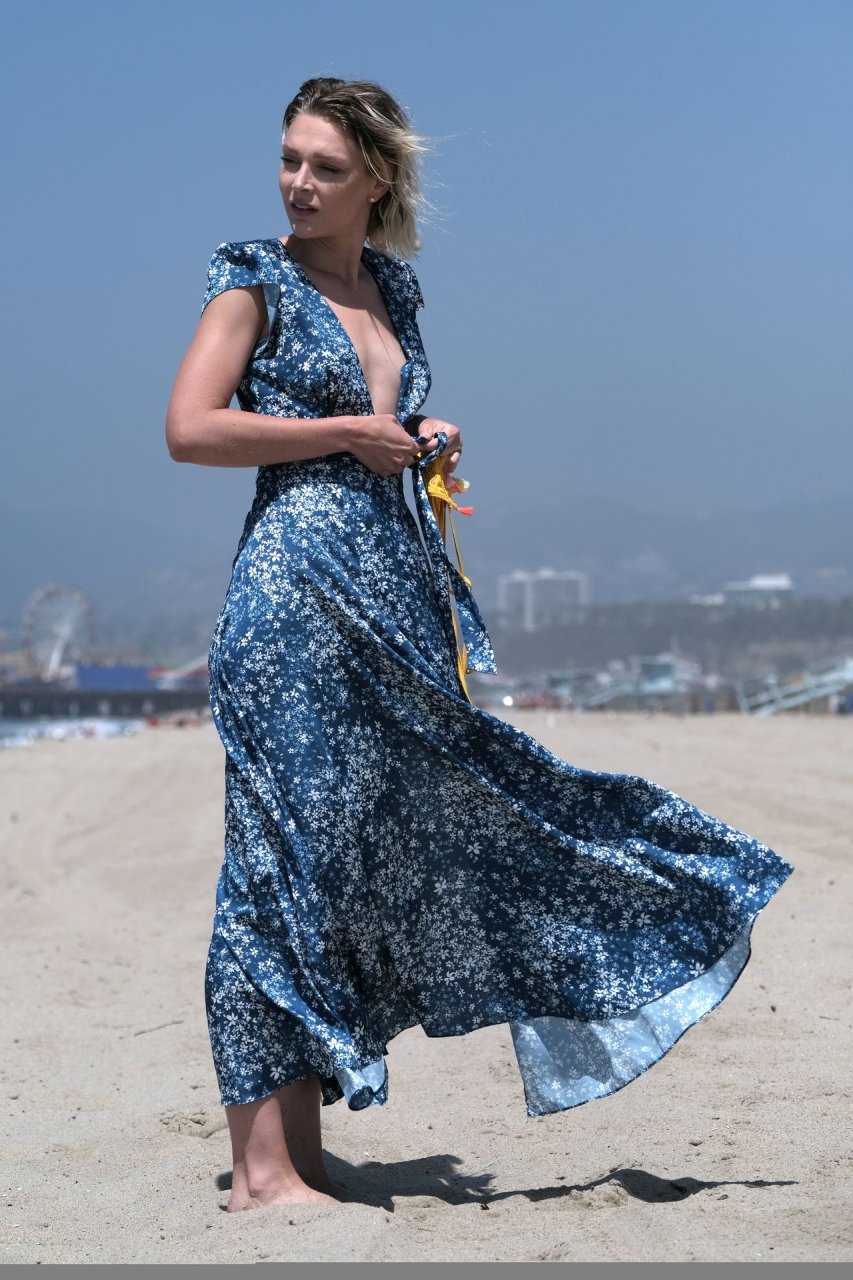 Dopo un po’ di divertimento al sole, Jancke si è poi cambiata indossando un grazioso vestito avvolgente blu Tularosa, sempre di Revolve.