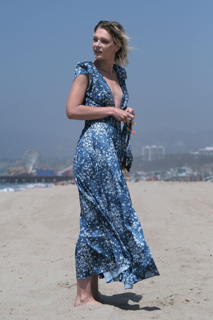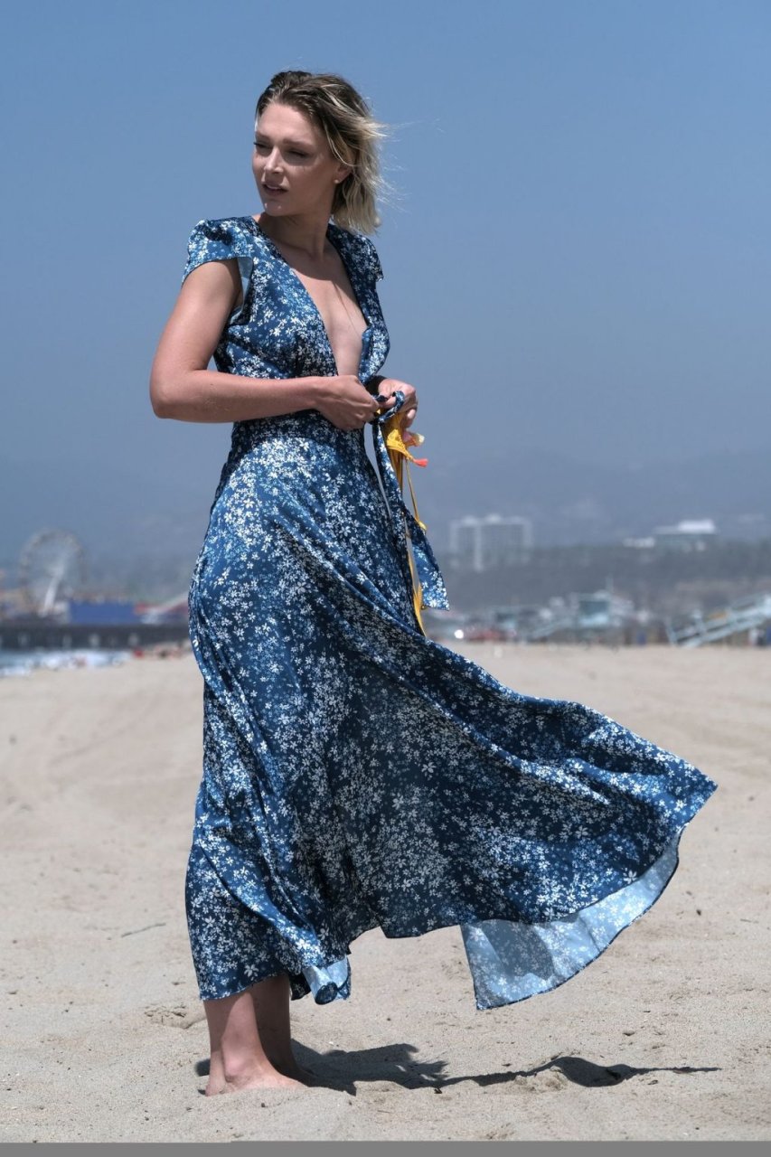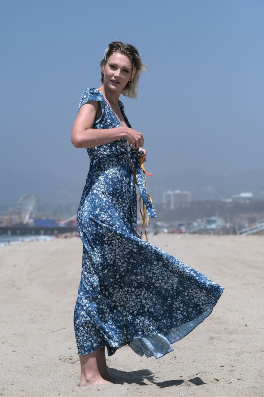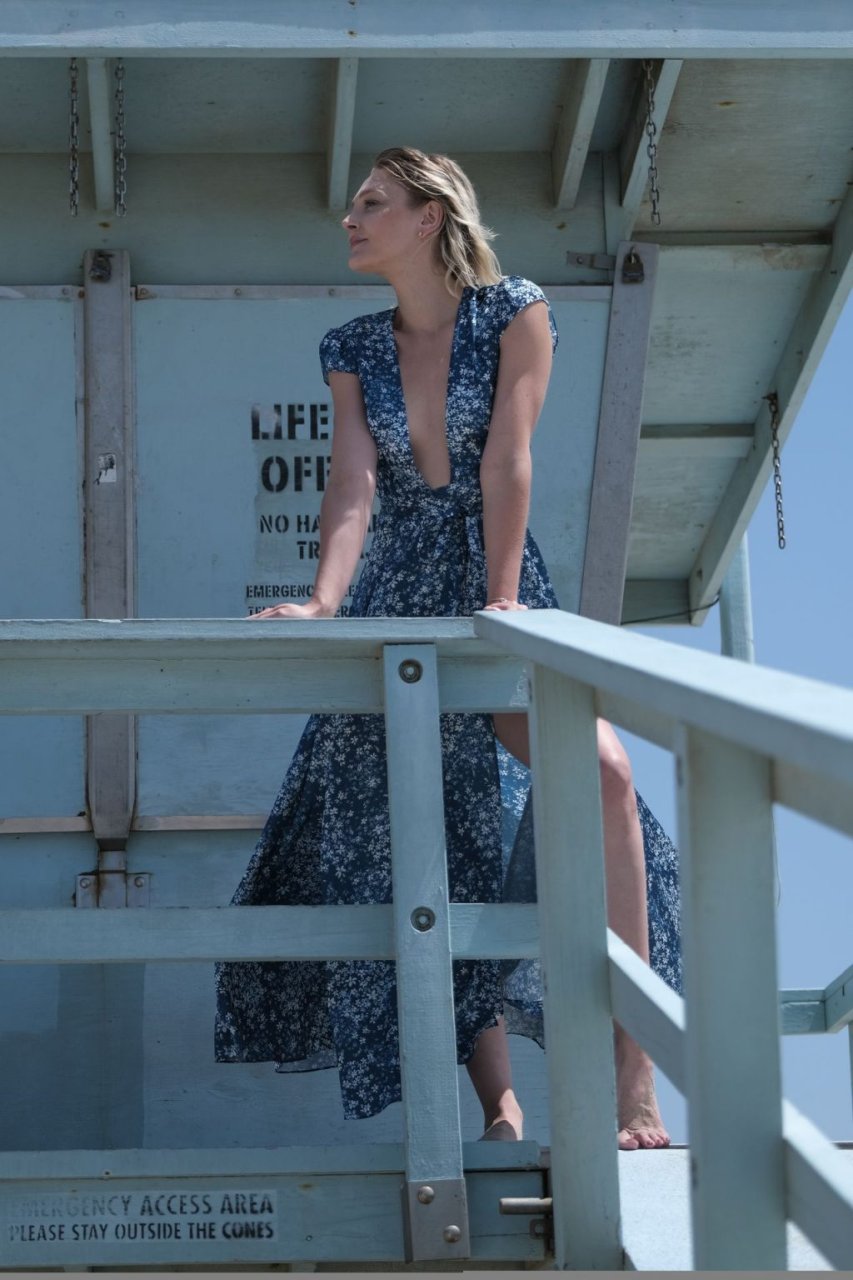 Dopo un po’ di divertimento al sole, Jancke si è poi cambiata indossando un grazioso vestito avvolgente blu Tularosa, sempre di Revolve.