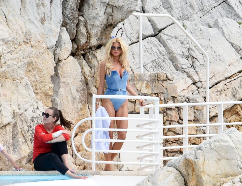 La modella e attrice svedese Victoria Silvstedt è stata fotografata indossando un costume da bagno blu mentre si rilassava a bordo piscina presso l’Hotel du Cap-Eden-Roc, 22/05/2019.