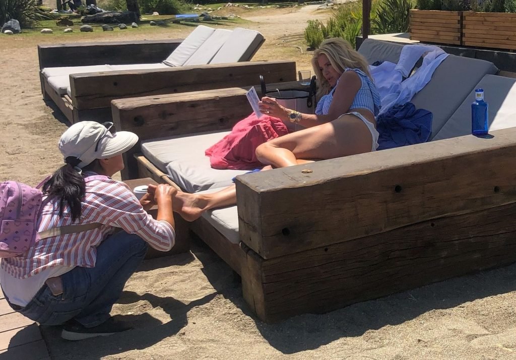 Victoria si rilassava sul suo lettino abbronzando le sue già bronzate gambe lunghe, godendosi una bevanda e un po’ di riposo e relax a Marbella.
