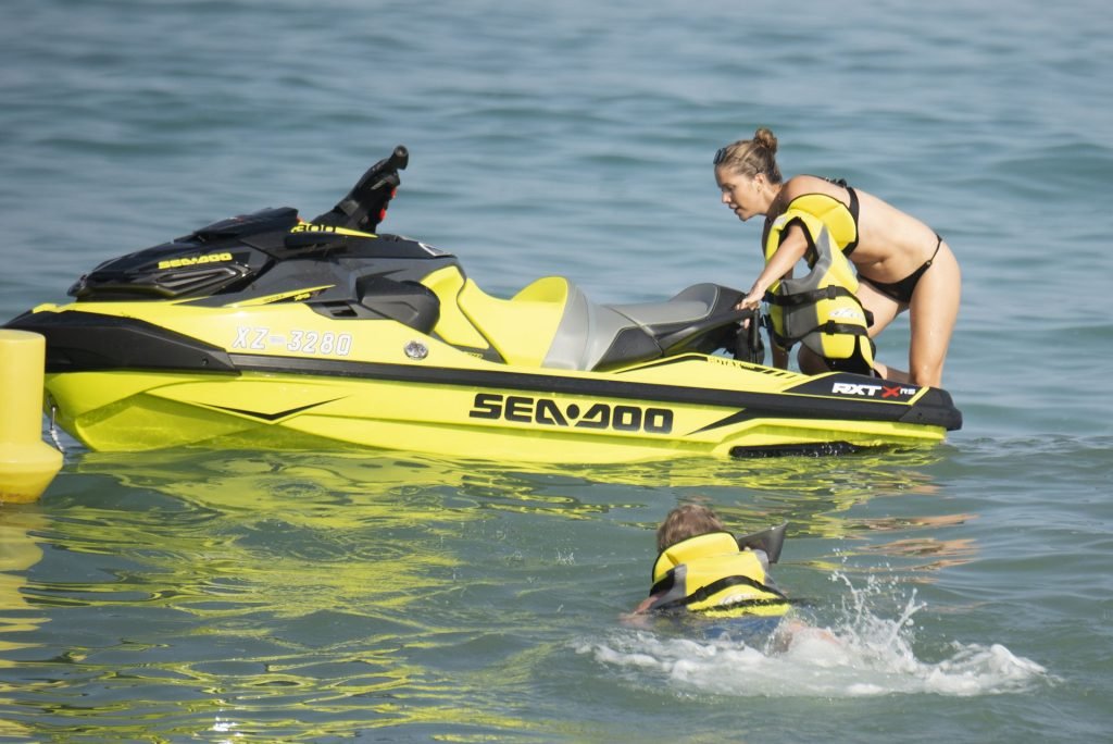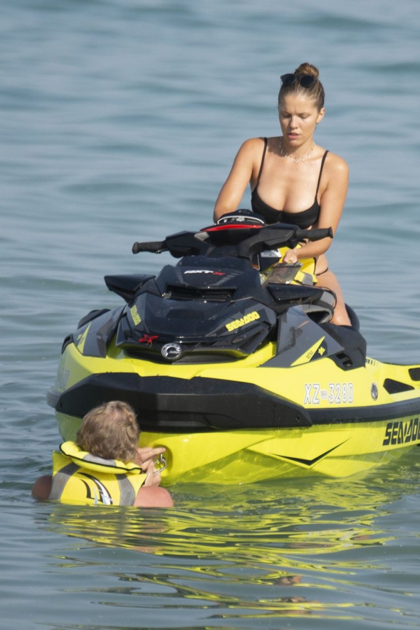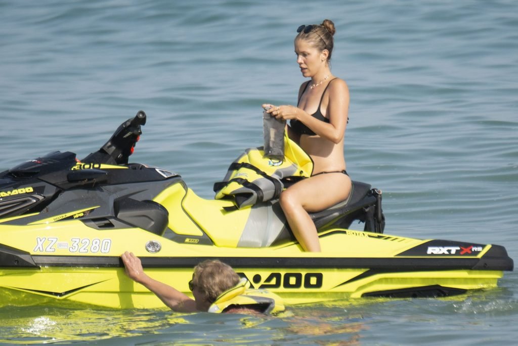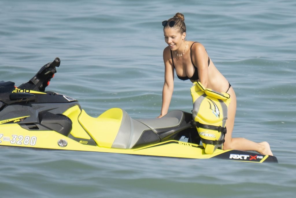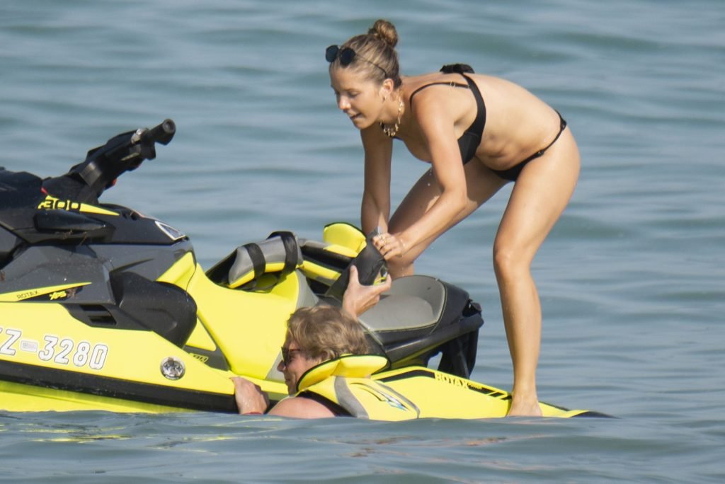 Victoria Swarovski indossa un sexy bikini nero mentre è in vacanza a Marbella con il marito Werner Muerz, 23/07/2019. La coppia ha trascorso un pomeriggio romantico sul mare e un giro in jet-ski.