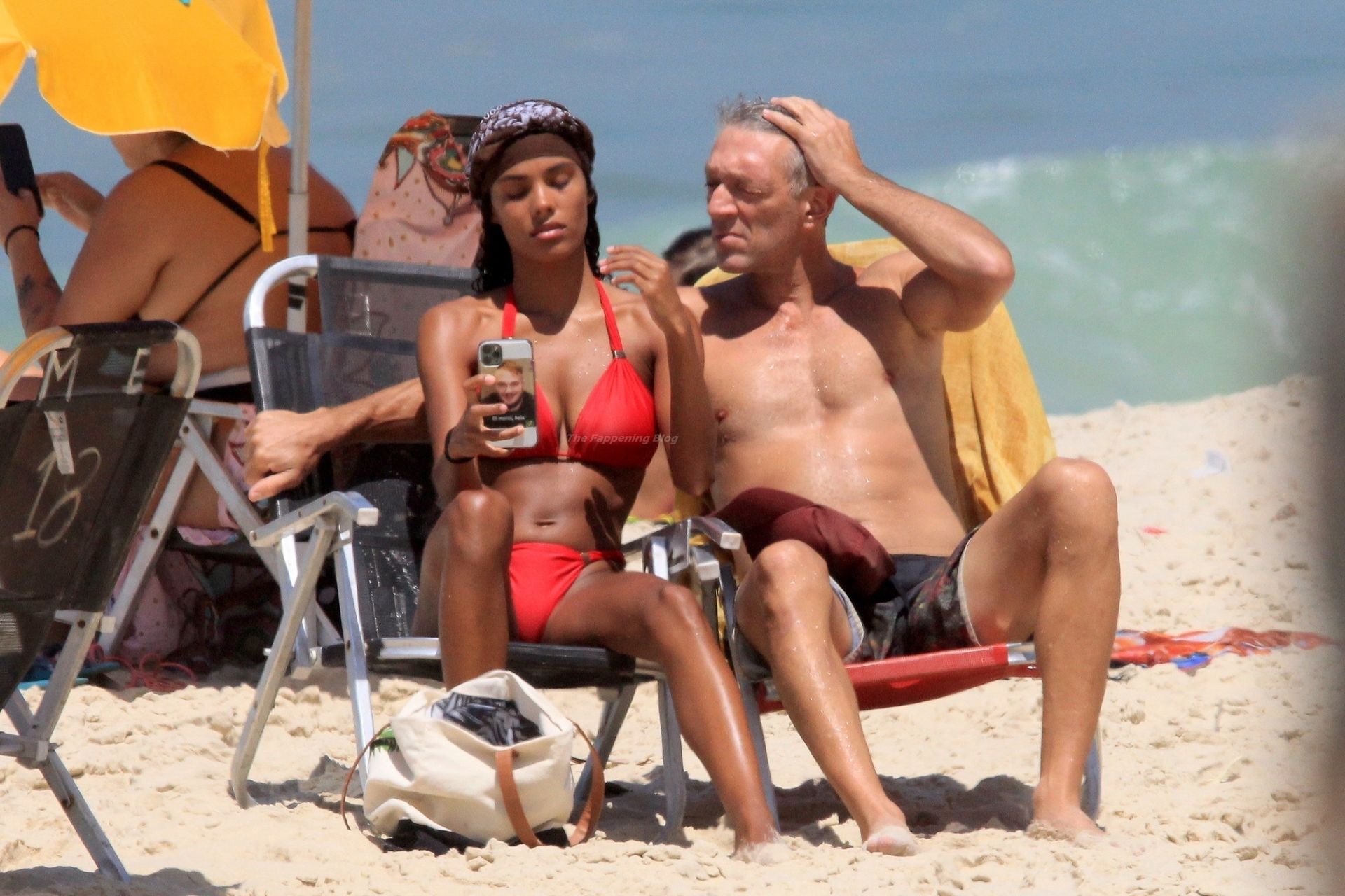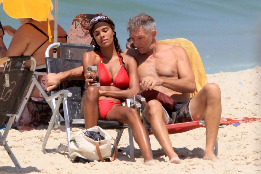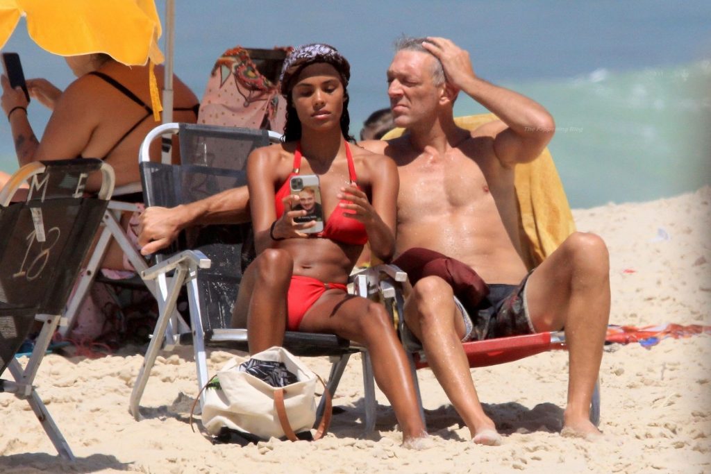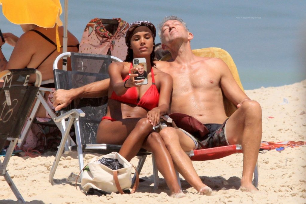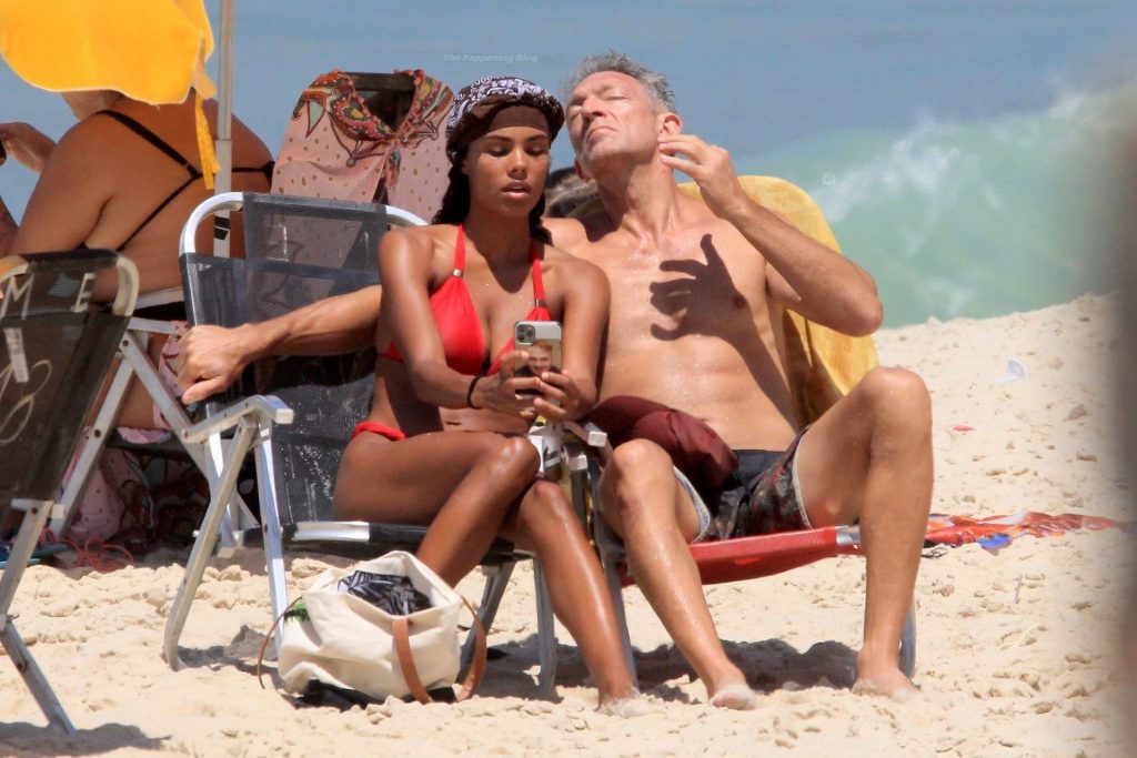Vincent Cassel e sua moglie Tina Kunakey sono stati fotografati mentre trascorrevano una giornata divertente sulla spiaggia di Rio de Janeiro, 20/04/2021.