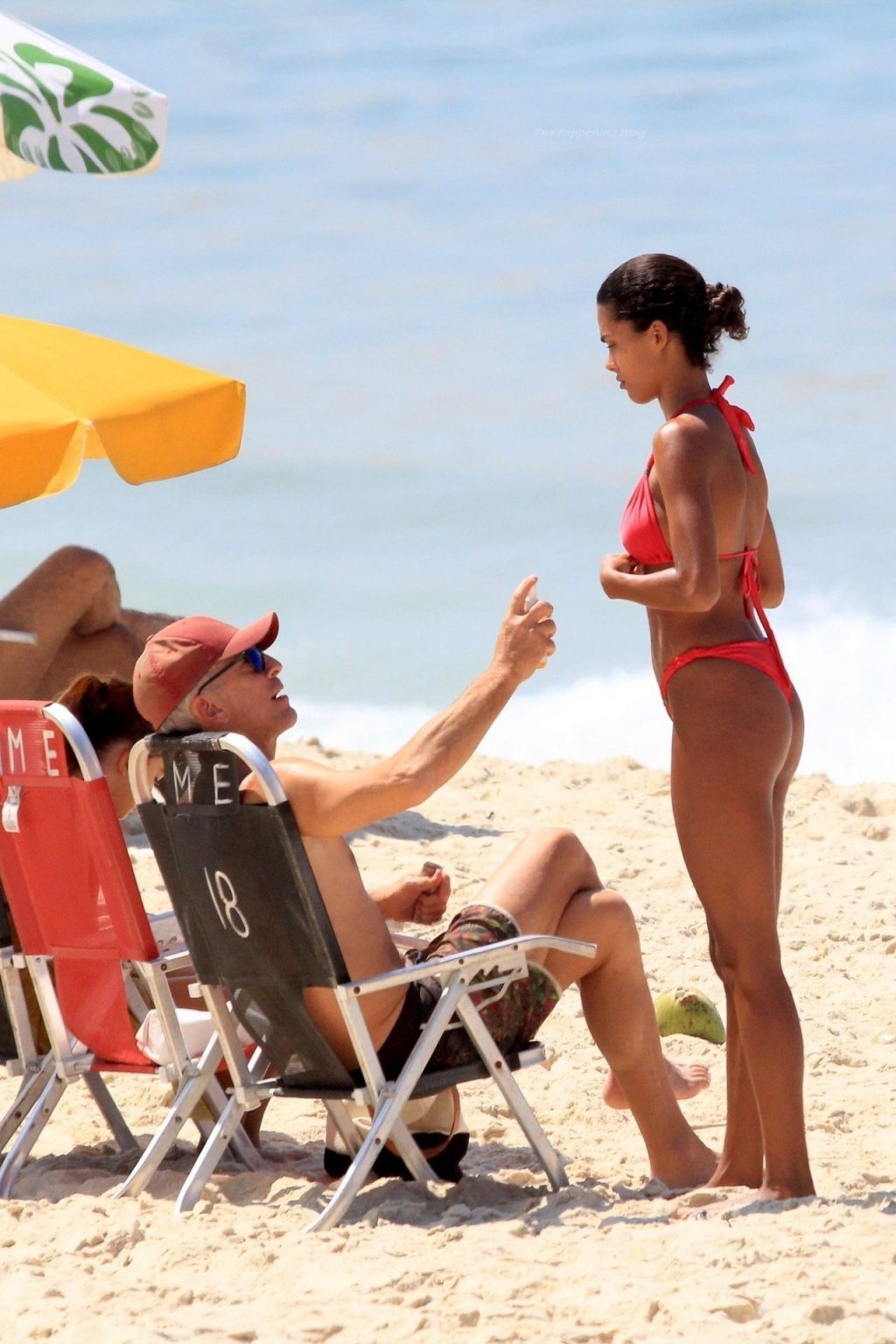 La differenza d'età è evidente: lui è contento di sedersi e prendere il sole, mentre lei non riesce a smettere di toccare il telefono. Lei lo punzecchia per mostrargli qualche sciocchezza che a lui non interessa, ma lui deve comunque annuire approvando, pensando "Ero con Monica Bellucci, una vera donna adulta, e ora sono con questa fottuta bambina."