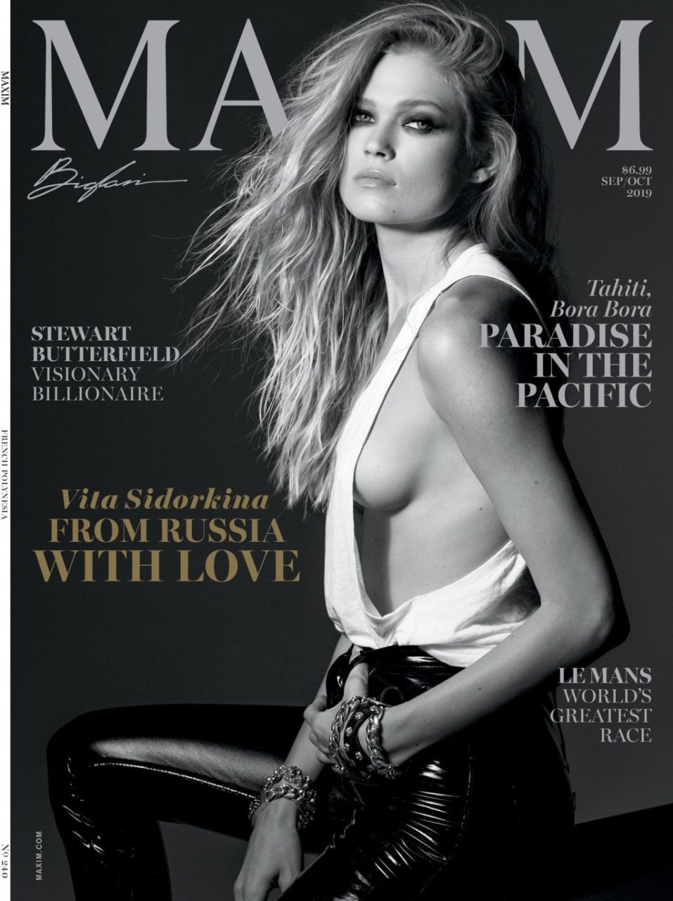 Dai un’occhiata alle foto calde e leggermente nude di Vita Sidorkina scattate da Gilles Bensimon per la rivista Maxim, numero di settembre/ottobre 2019. La modella russa ha coperto i suoi seni con le mani, una camicetta trasparente e una giacca.