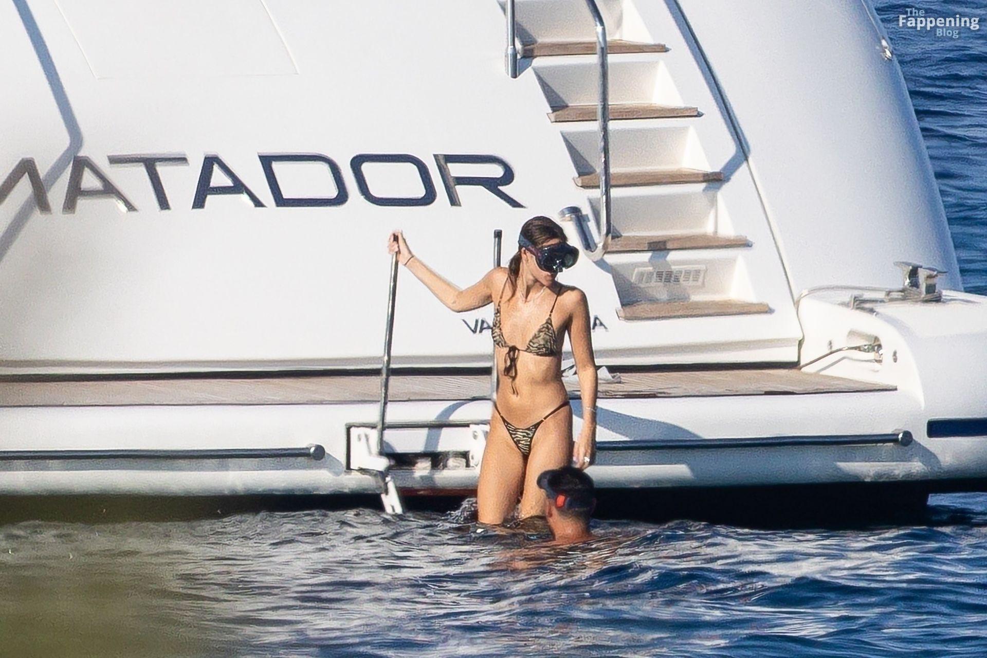 Vittoria indossava un bikini a stampa leopardata, con il top a triangolo e slip a vita bassa che mettevano in mostra la sua figura tonica e le gambe lunghe.