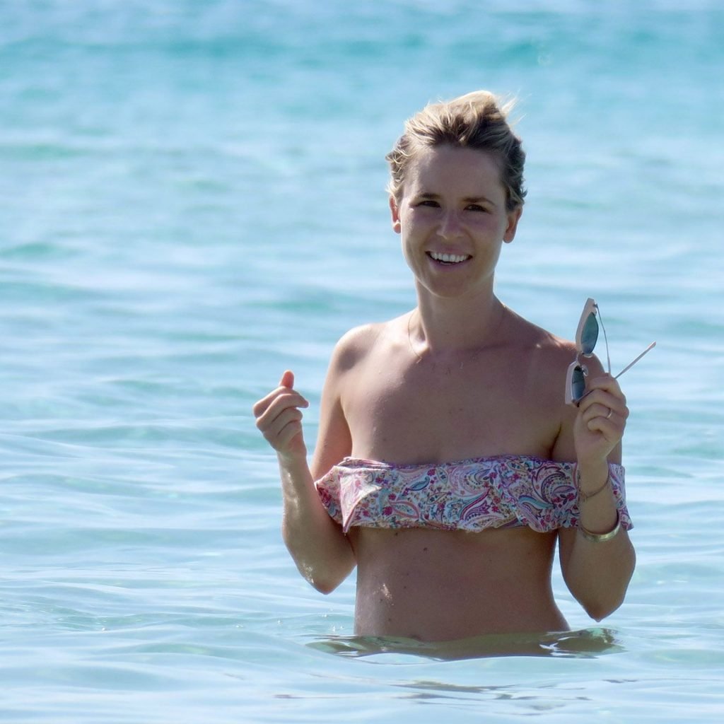 Vivian Sibold è stata vista mentre si godeva le vacanze con il marito Nico Rosberg e i loro figli sulla spiaggia di Formentera, 15/08/2019.