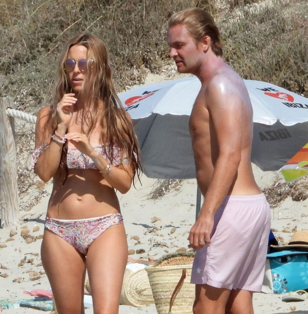 Con il caldo sole spagnolo che splende su Rosberg, Nico appare felice e rilassato con la sua sexy moglie Vivian che sembra incandescente con il suo bikini floreale succinto mentre la coppia prendeva il sole e si divertiva nel mare con i bambini e alcuni amici.