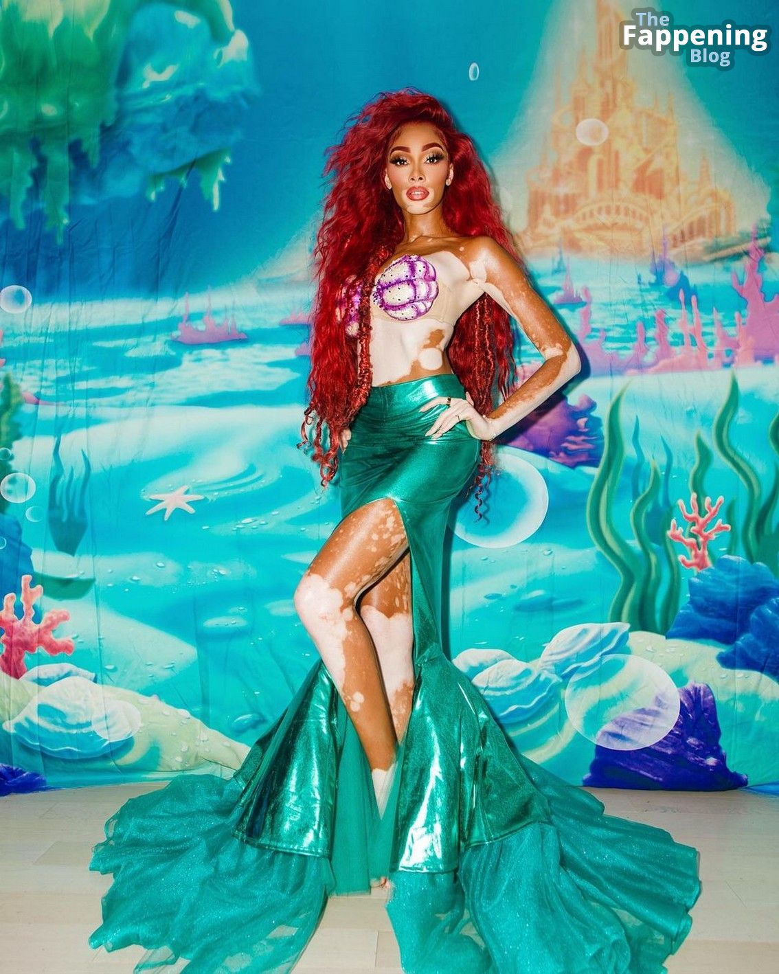 Guarda – Winnie Harlow si è travestita da piccola sirena e ha persino posato con un giocattolo di Sebastian! Davvero – sta spaccando e sarebbe una sirena migliore di Halle Bailey, che non ci ha nemmeno mostrato una foto con un costume da sirena.