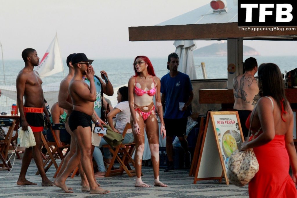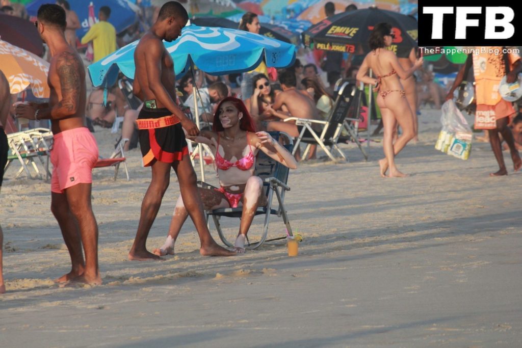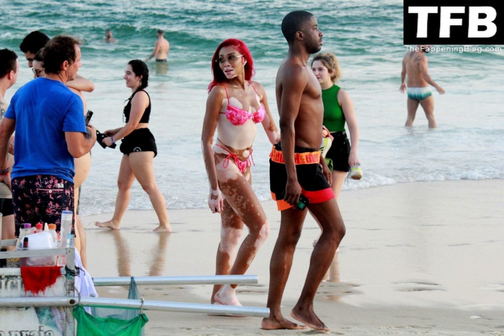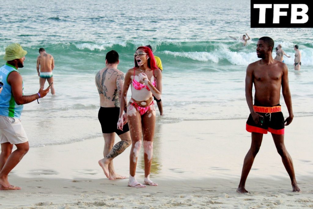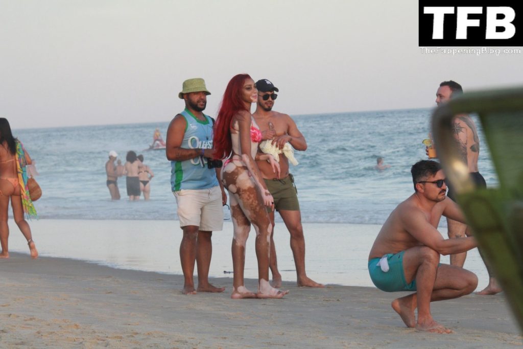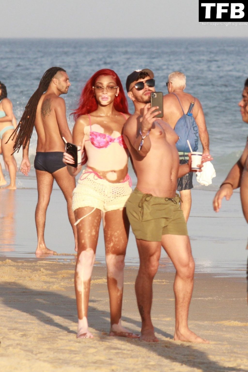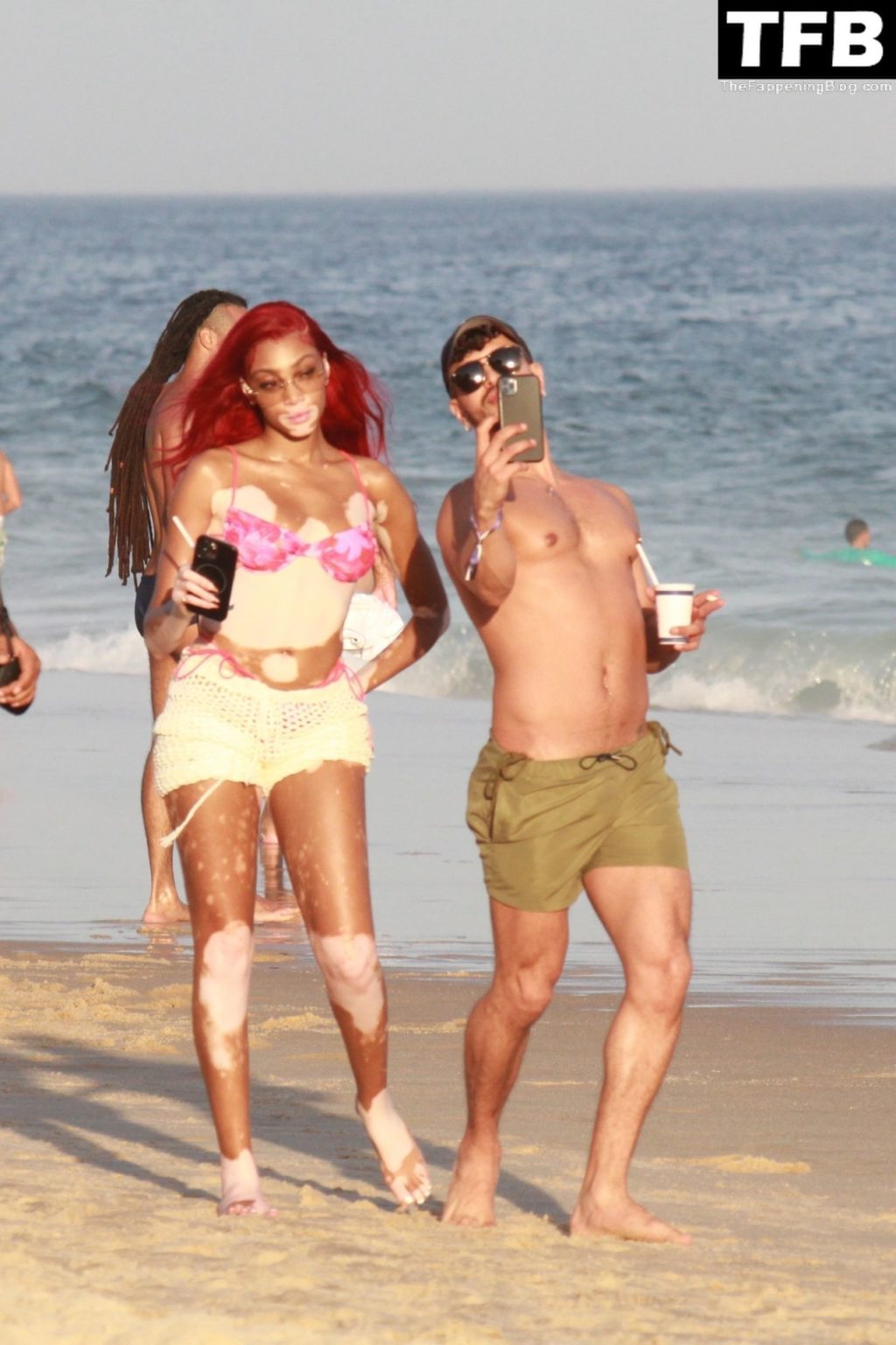 La modella canadese Winnie Harlow mostra il suo corpo in bikini mentre si gode una giornata sulla spiaggia di Ipanema con i fidanzati durante il Camarote N 1 al Marquês de Sapucaí a Rio de Janeiro, Brasile, 23/04/2022.