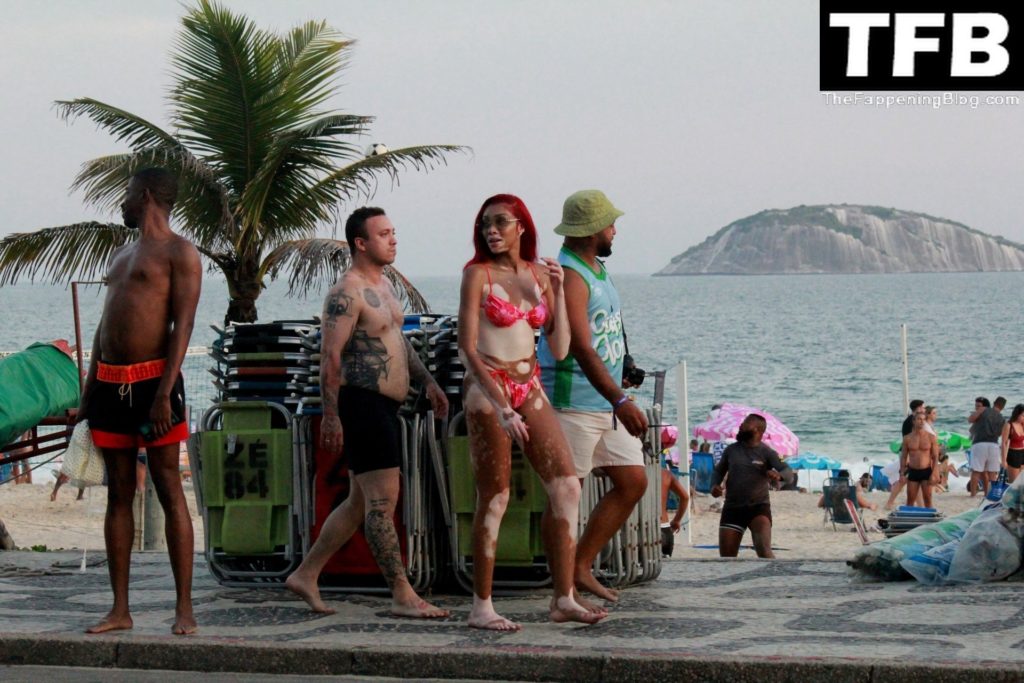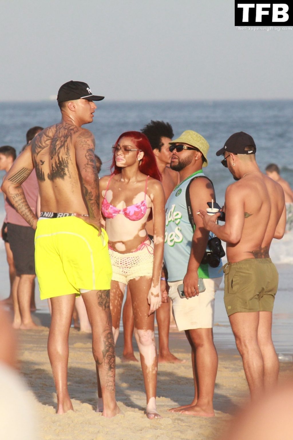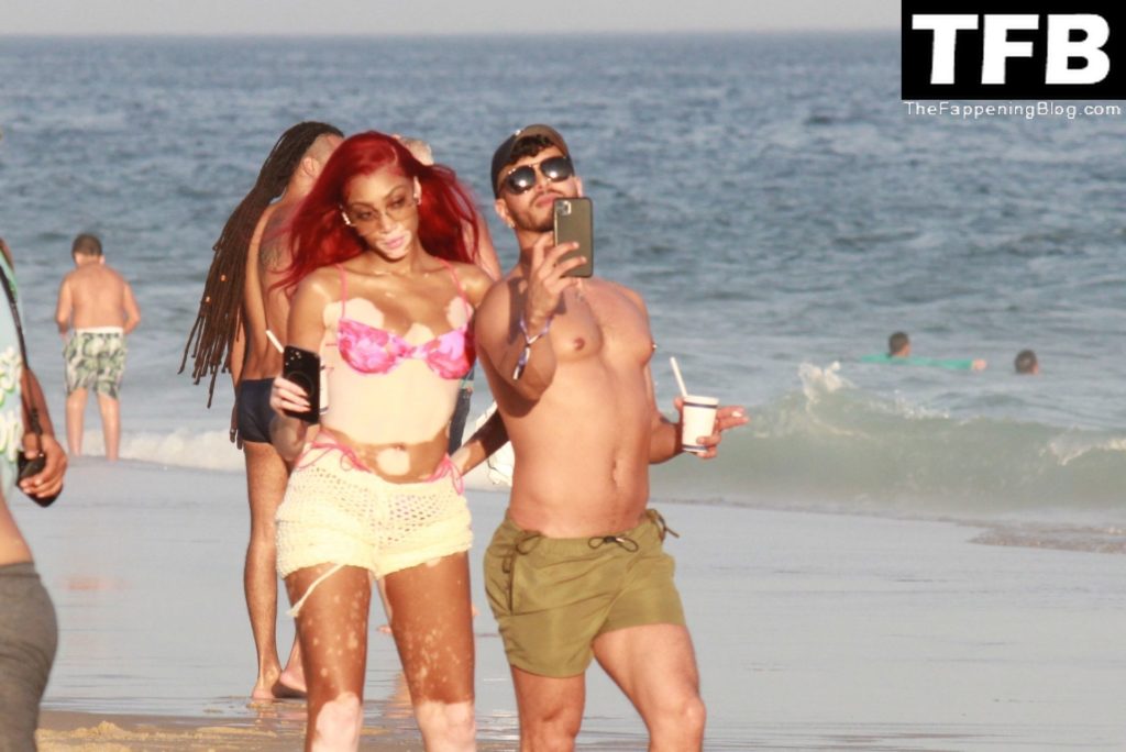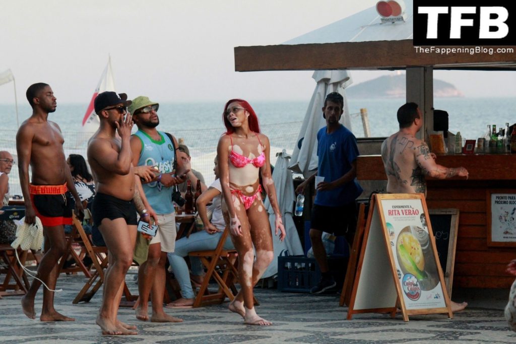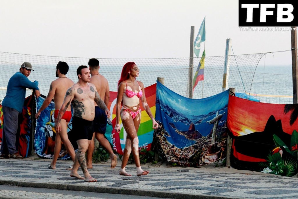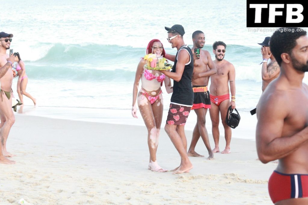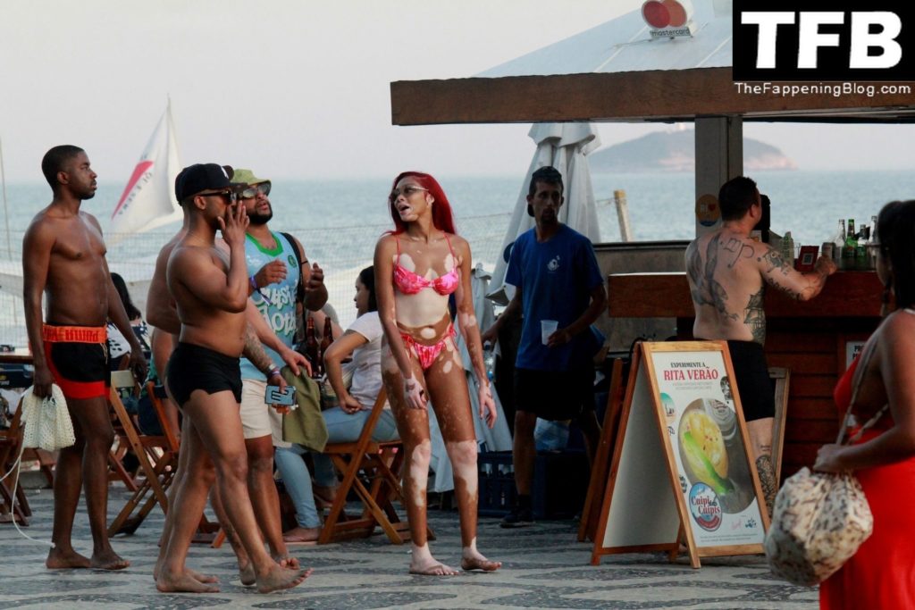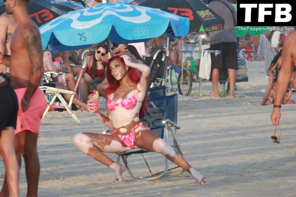 La modella canadese Winnie Harlow mostra il suo corpo in bikini mentre si gode una giornata sulla spiaggia di Ipanema con i fidanzati durante il Camarote N 1 al Marquês de Sapucaí a Rio de Janeiro, Brasile, 23/04/2022.