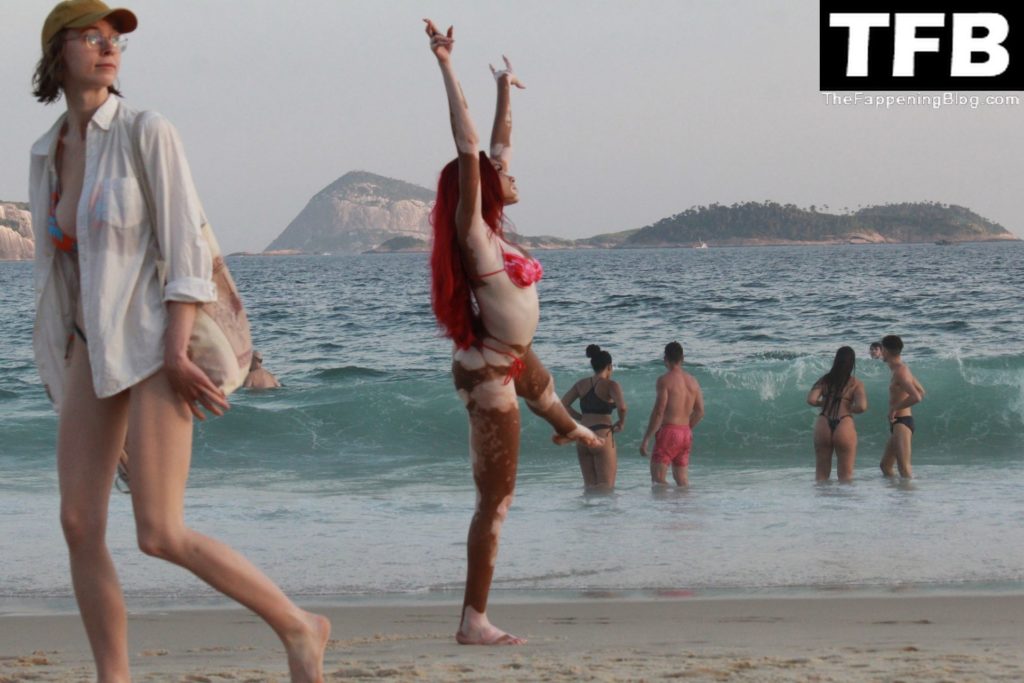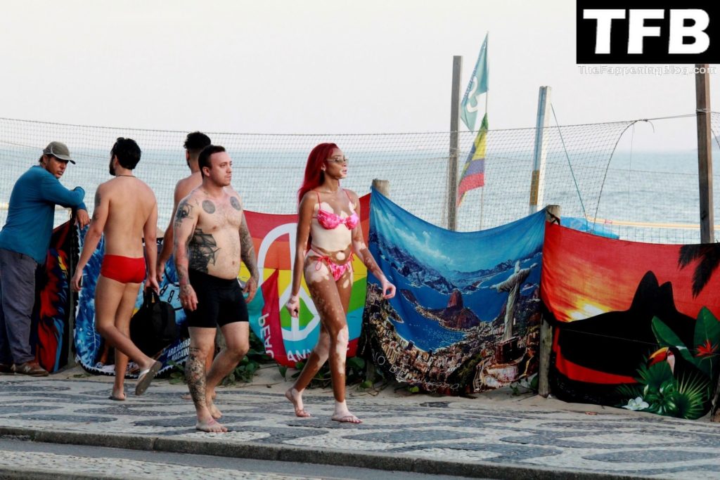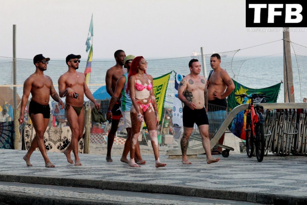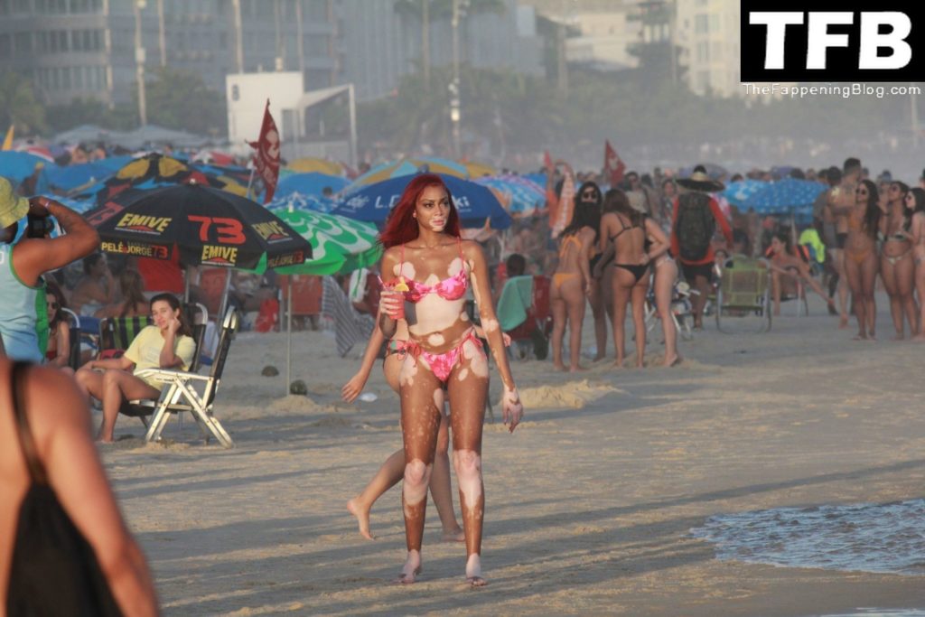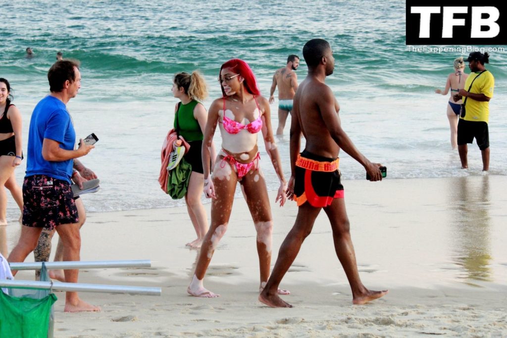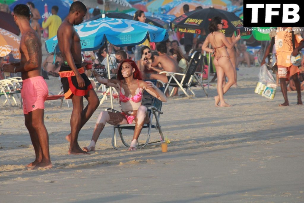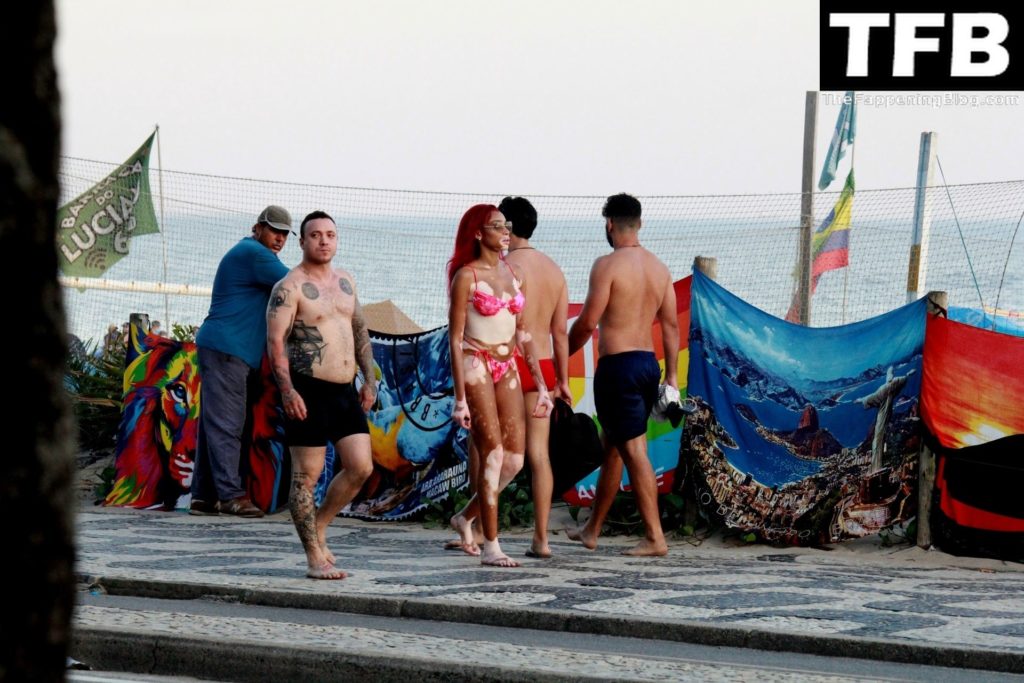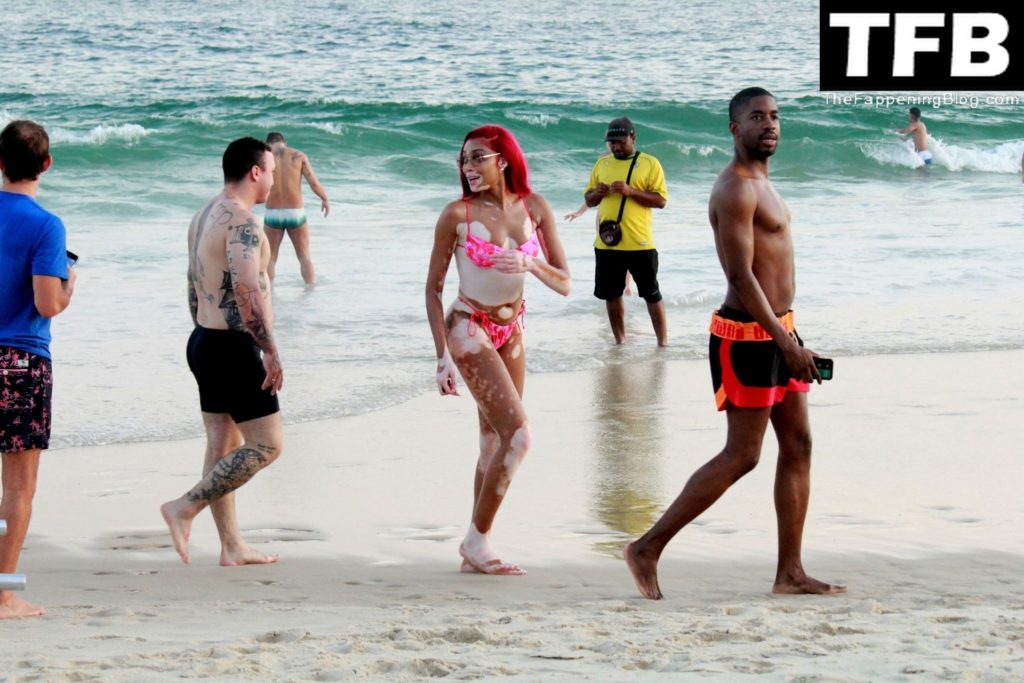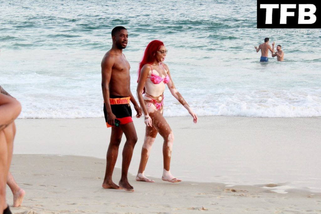La modella canadese Winnie Harlow mostra il suo corpo in bikini mentre si gode una giornata sulla spiaggia di Ipanema con i fidanzati durante il Camarote N 1 al Marquês de Sapucaí a Rio de Janeiro, Brasile, 23/04/2022.