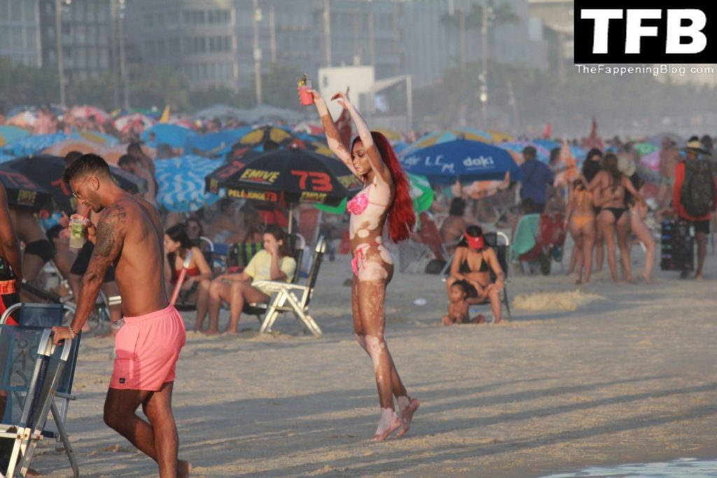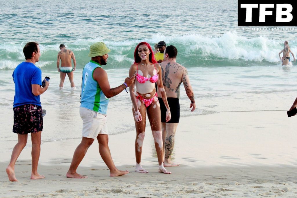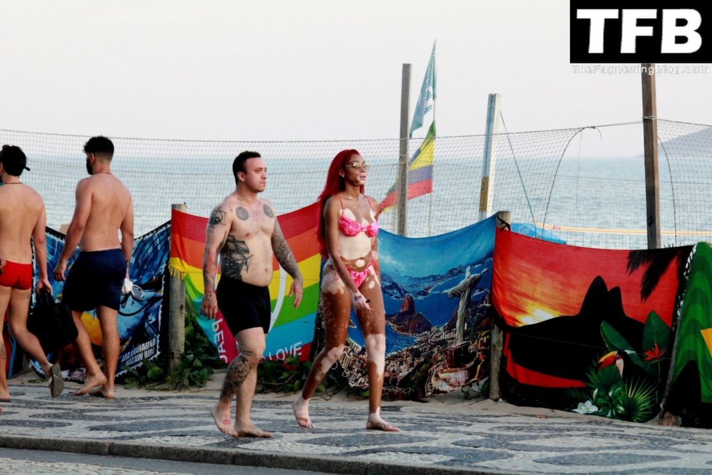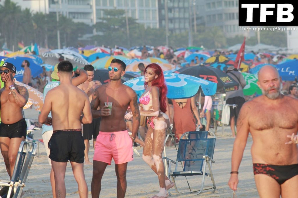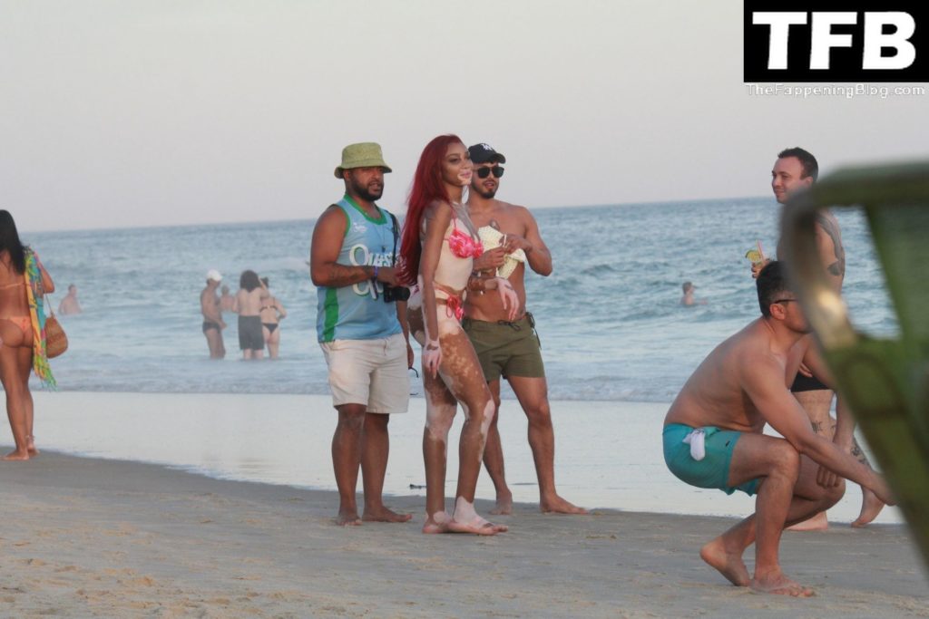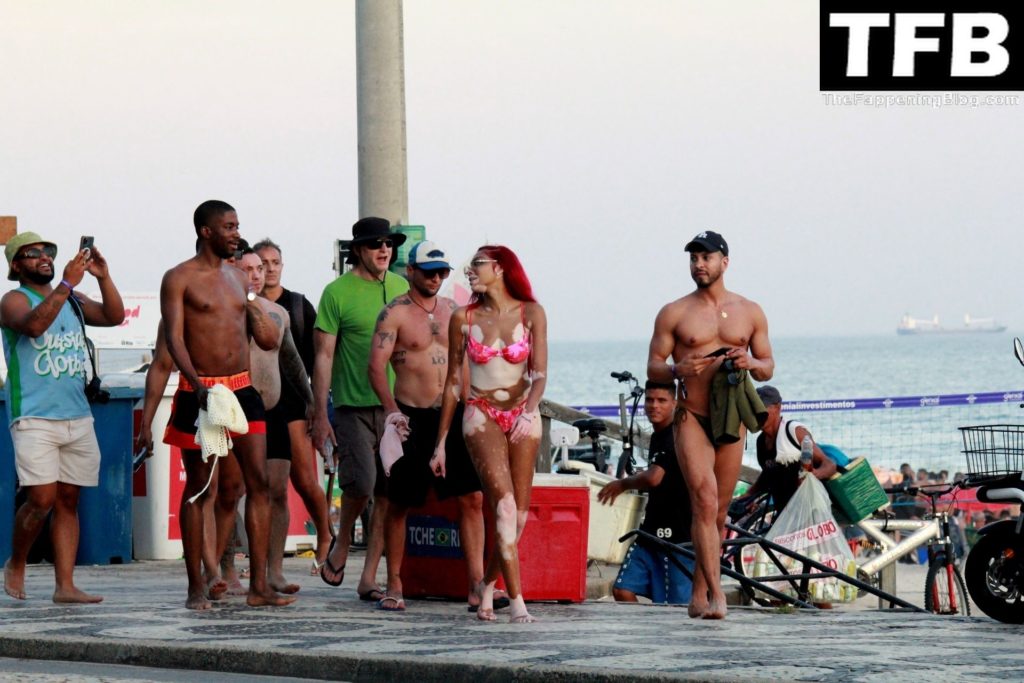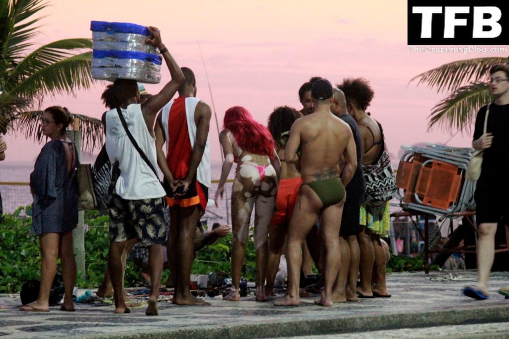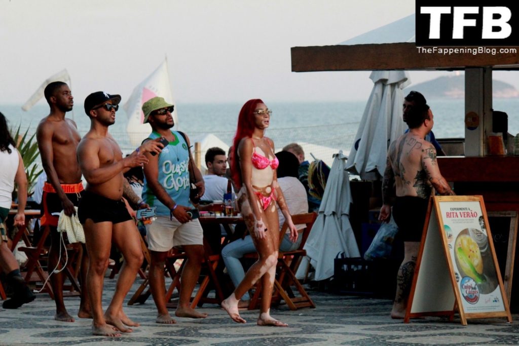 La modella canadese Winnie Harlow mostra il suo corpo in bikini mentre si gode una giornata sulla spiaggia di Ipanema con i fidanzati durante il Camarote N 1 al Marquês de Sapucaí a Rio de Janeiro, Brasile, 23/04/2022.