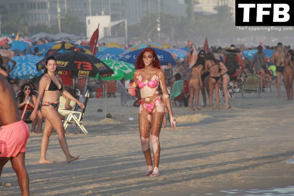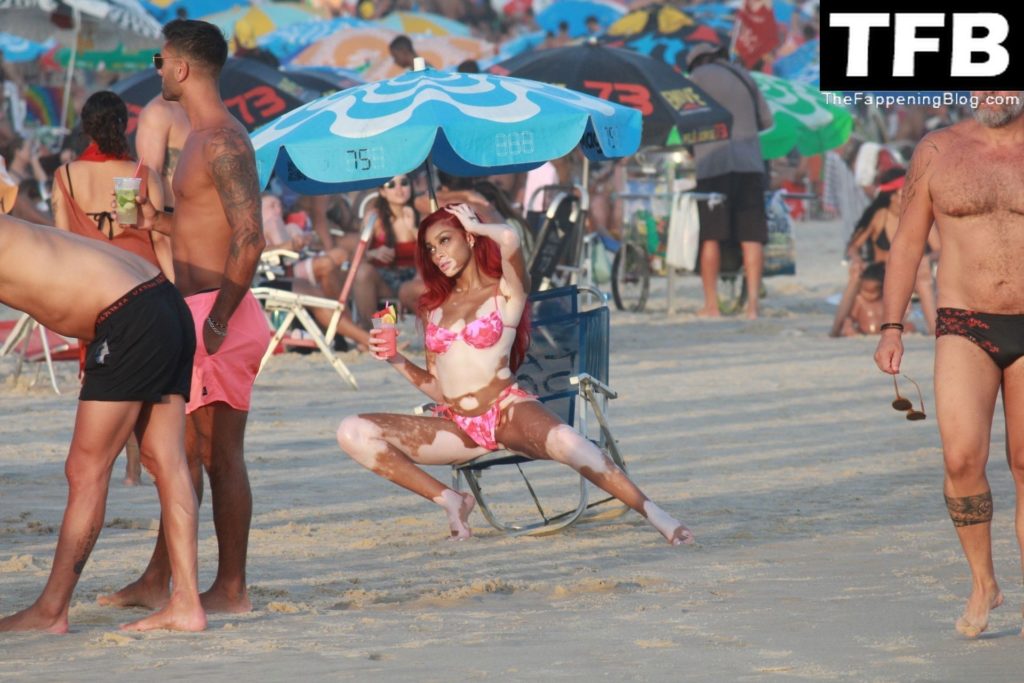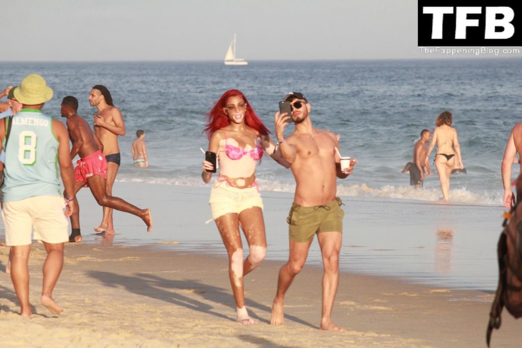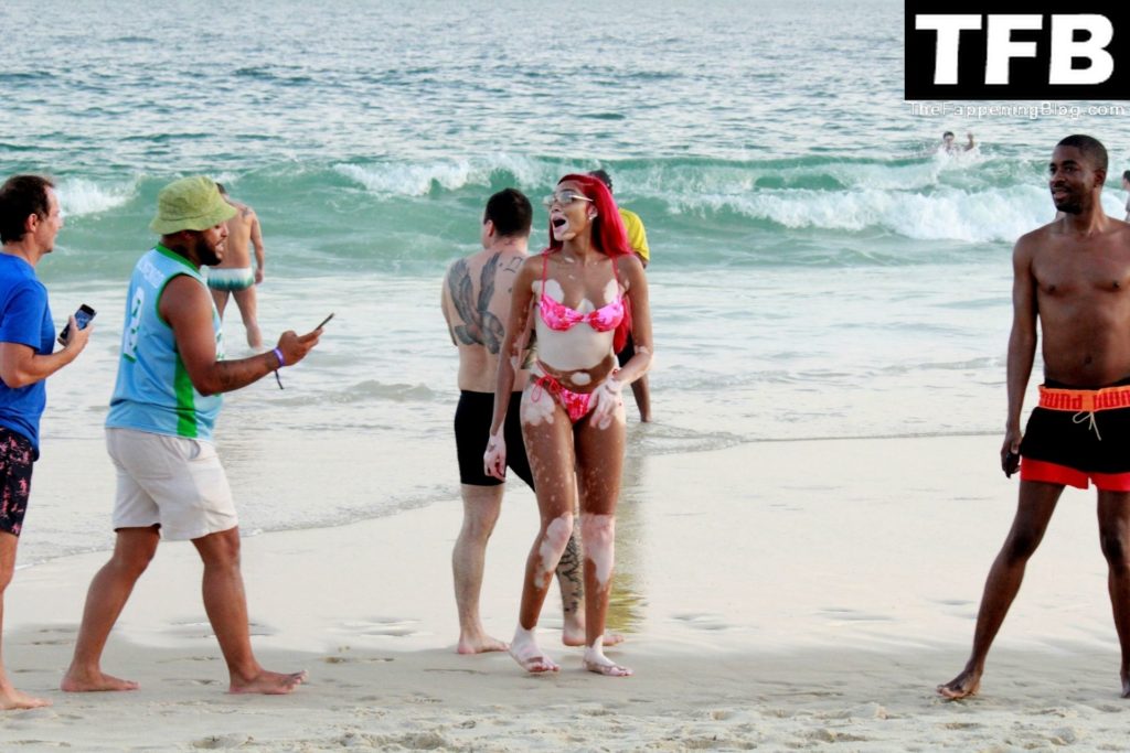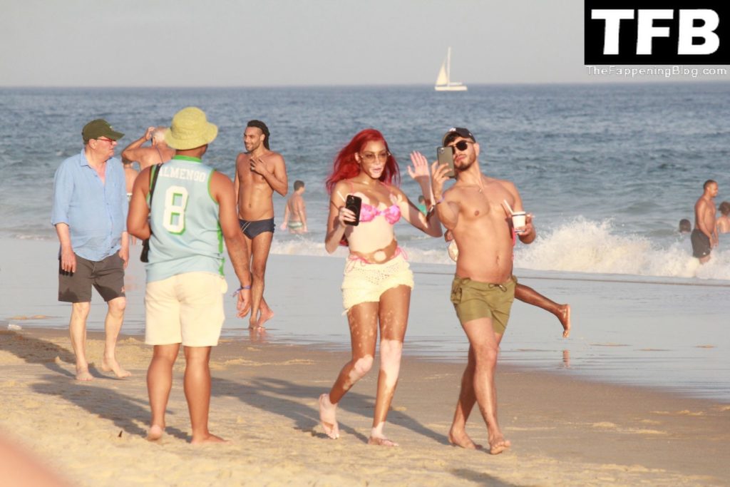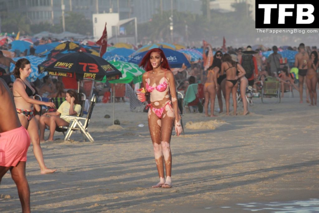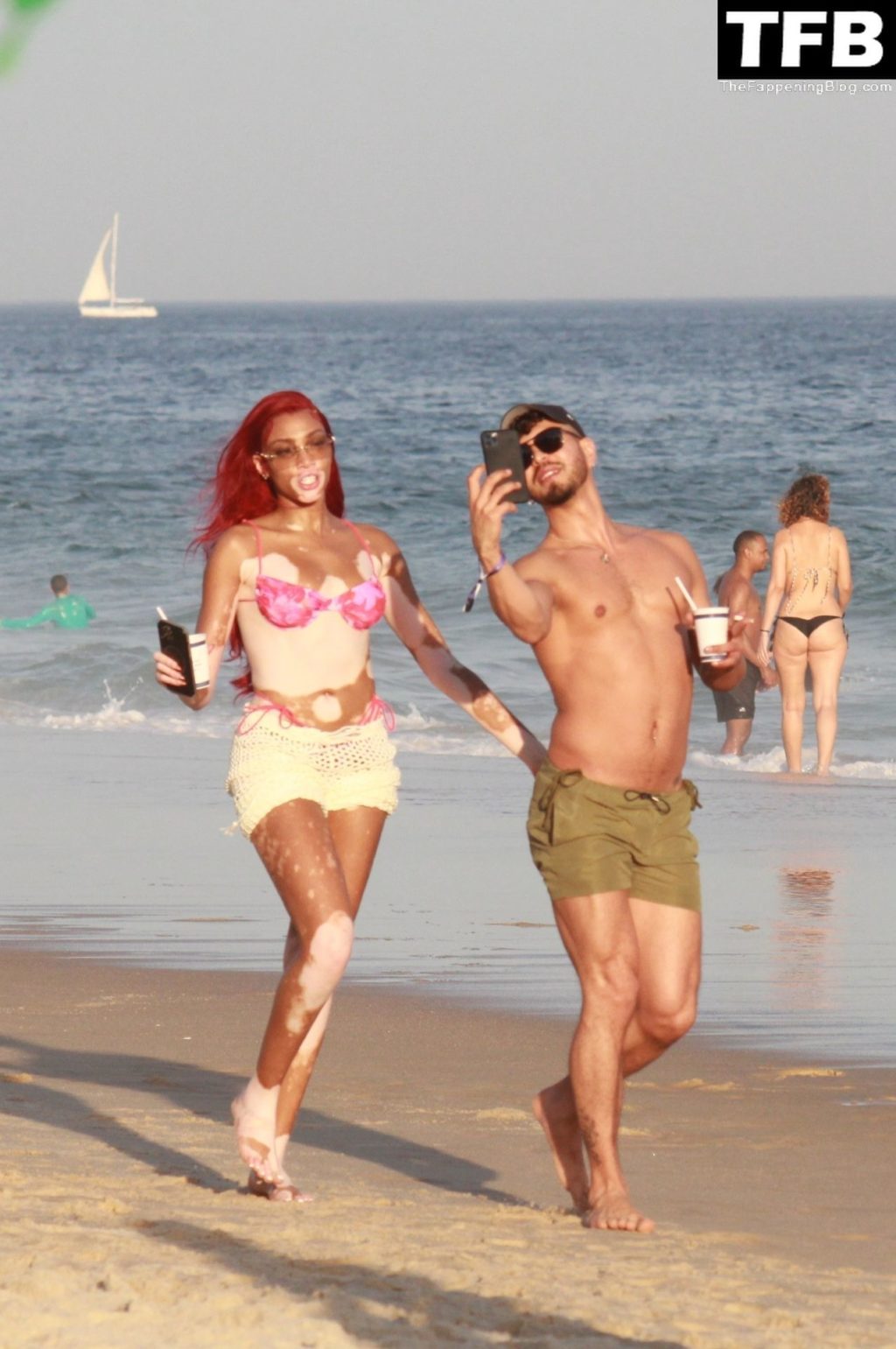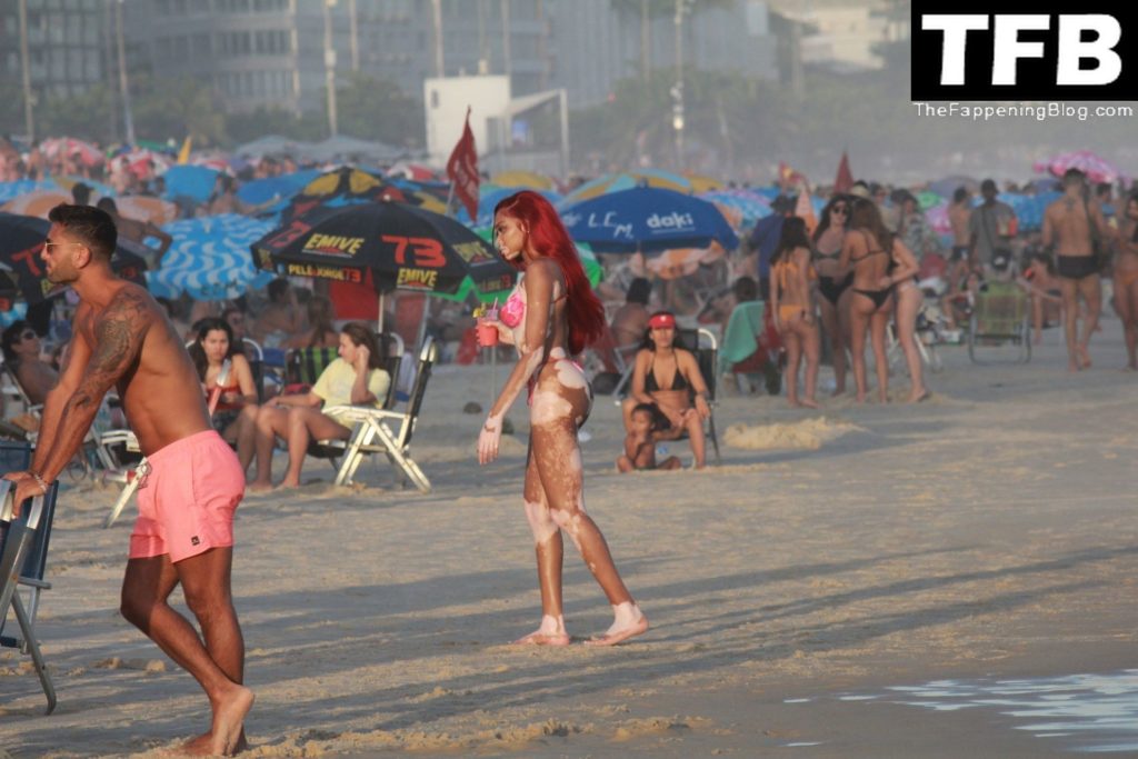 La modella canadese Winnie Harlow mostra il suo corpo in bikini mentre si gode una giornata sulla spiaggia di Ipanema con i fidanzati durante il Camarote N 1 al Marquês de Sapucaí a Rio de Janeiro, Brasile, 23/04/2022.