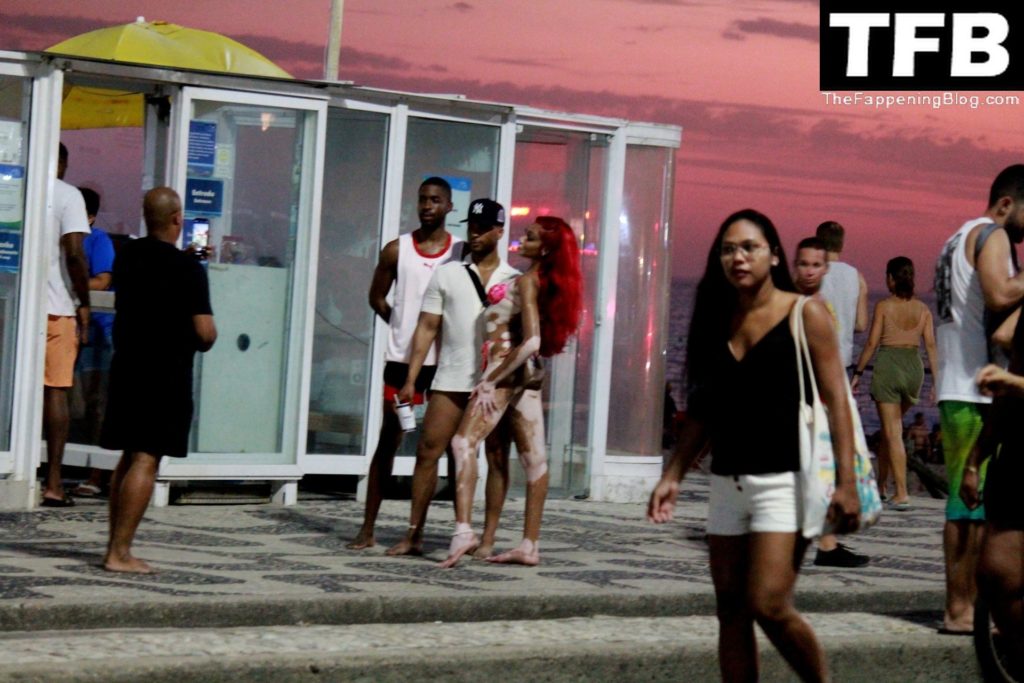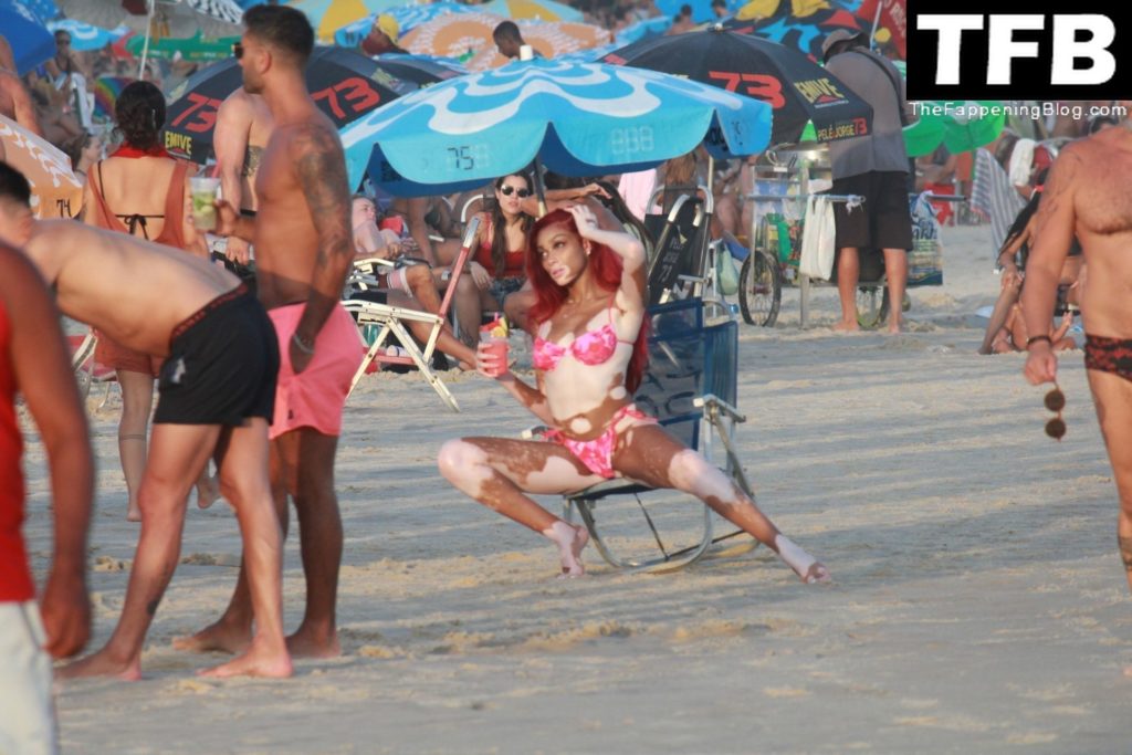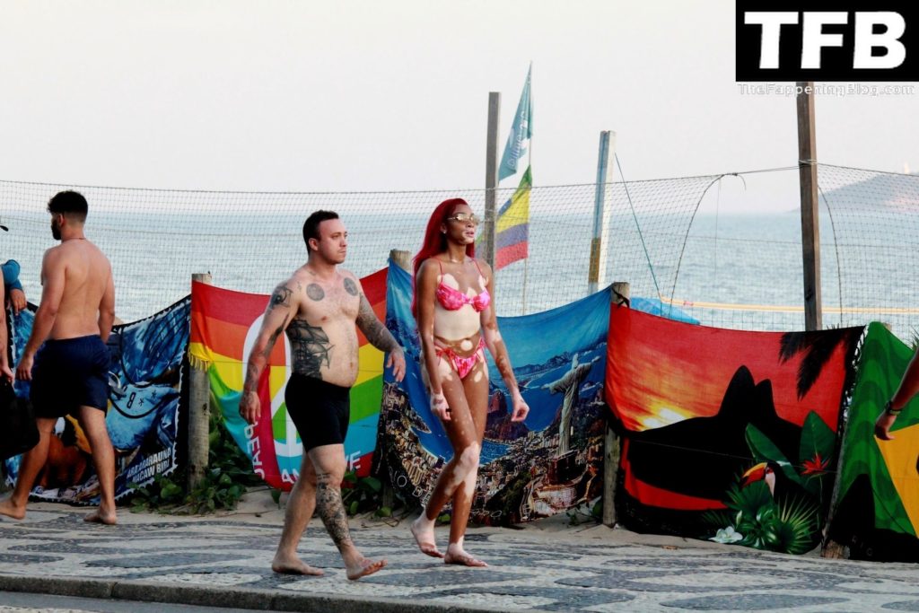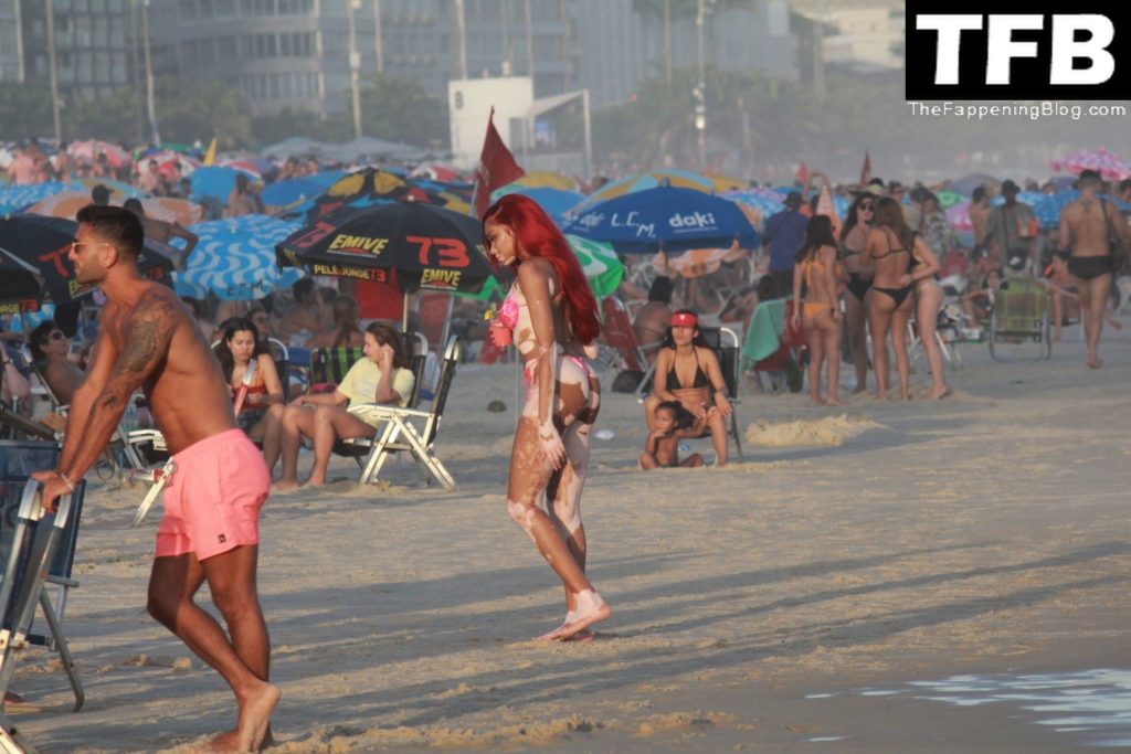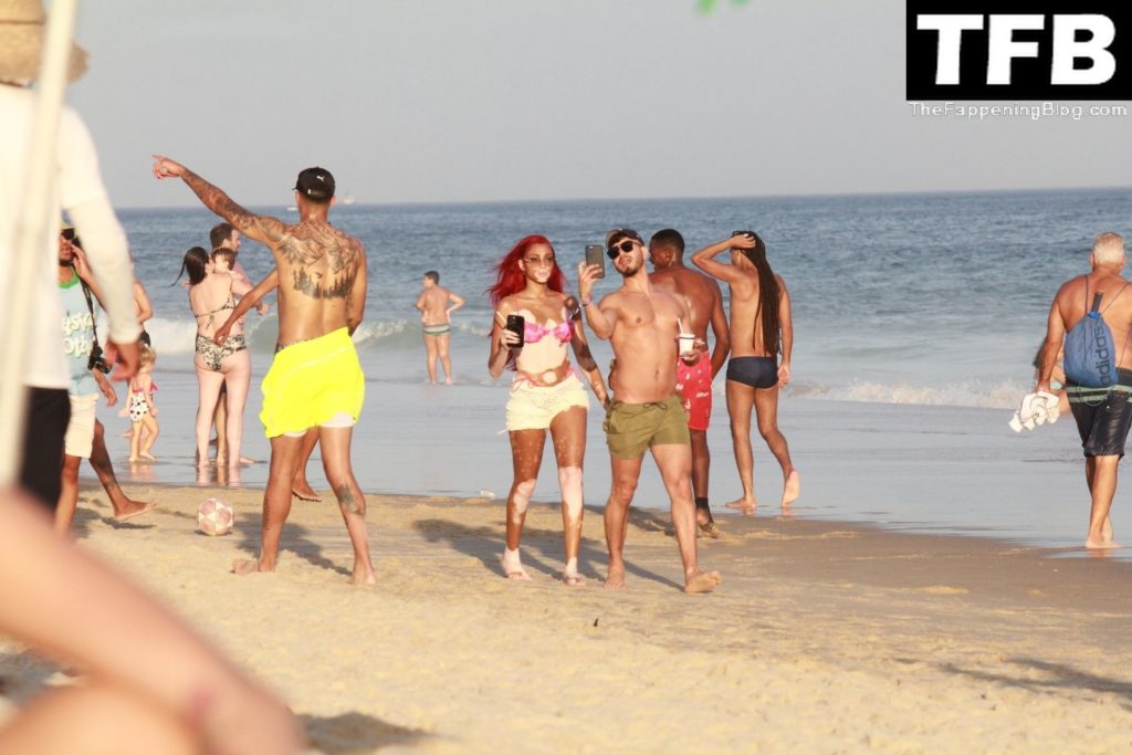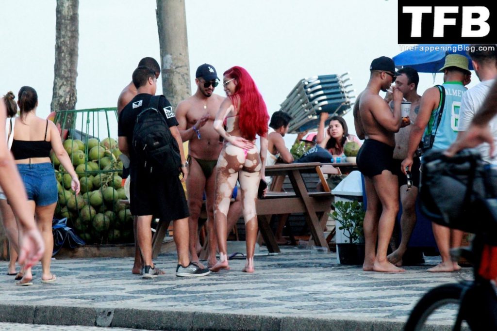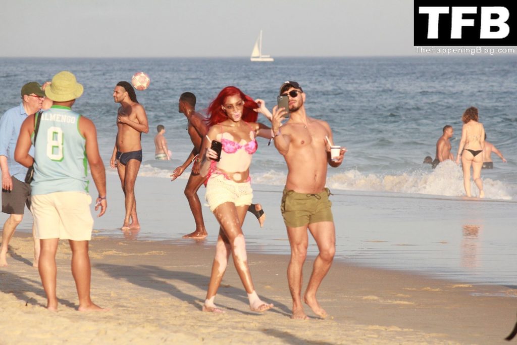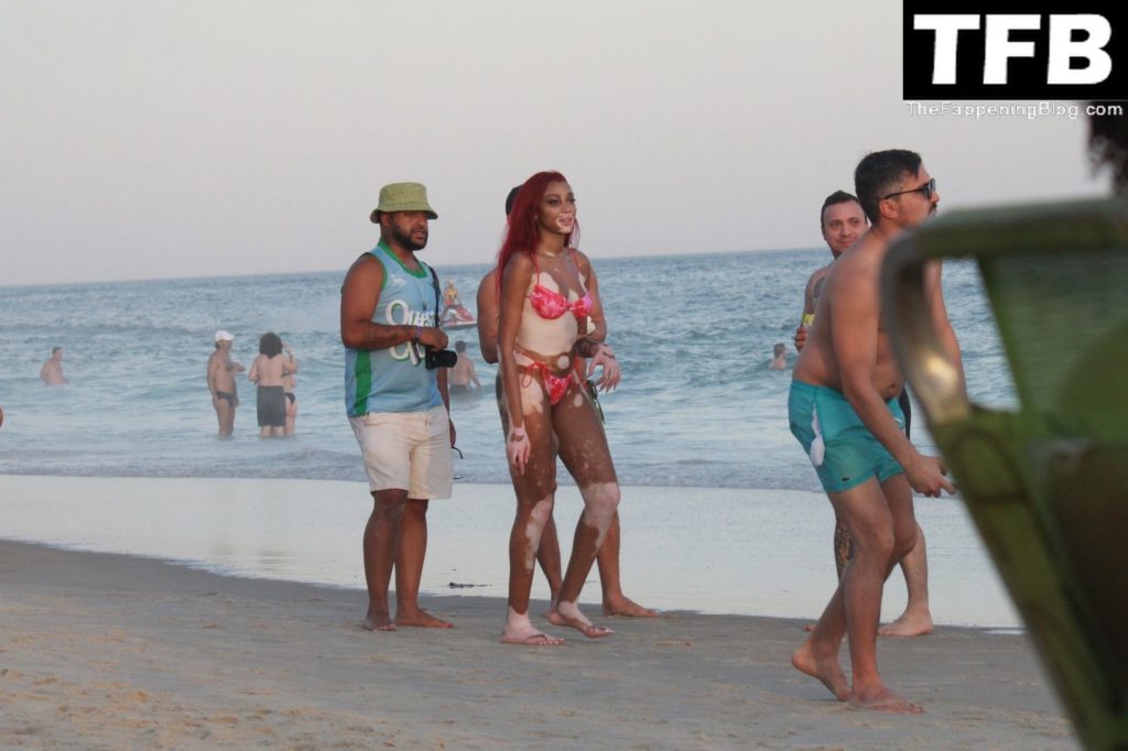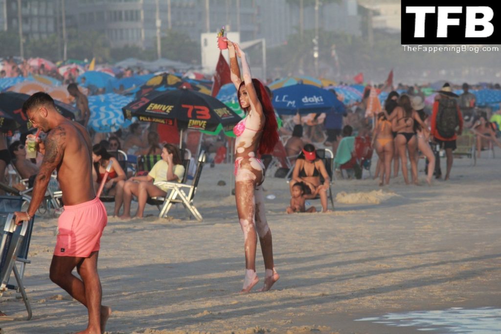 La modella canadese Winnie Harlow mostra il suo corpo in bikini mentre si gode una giornata sulla spiaggia di Ipanema con i fidanzati durante il Camarote N 1 al Marquês de Sapucaí a Rio de Janeiro, Brasile, 23/04/2022.