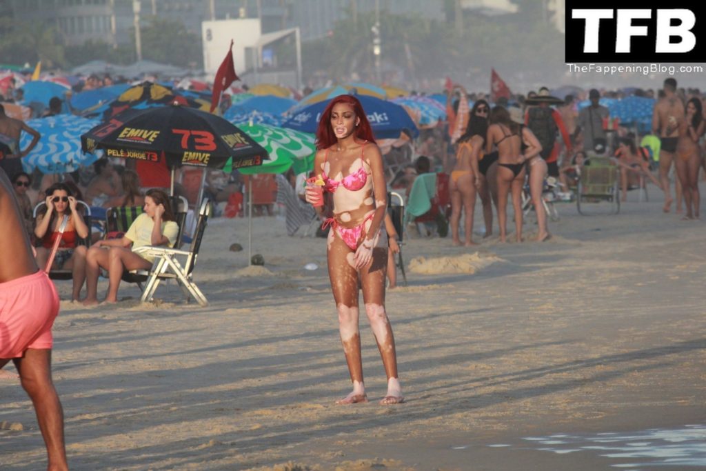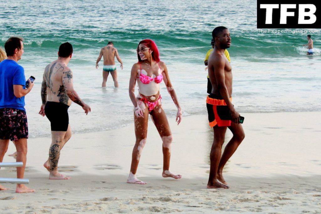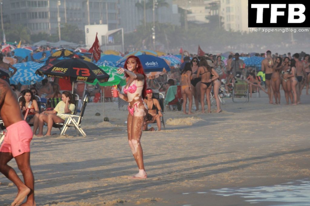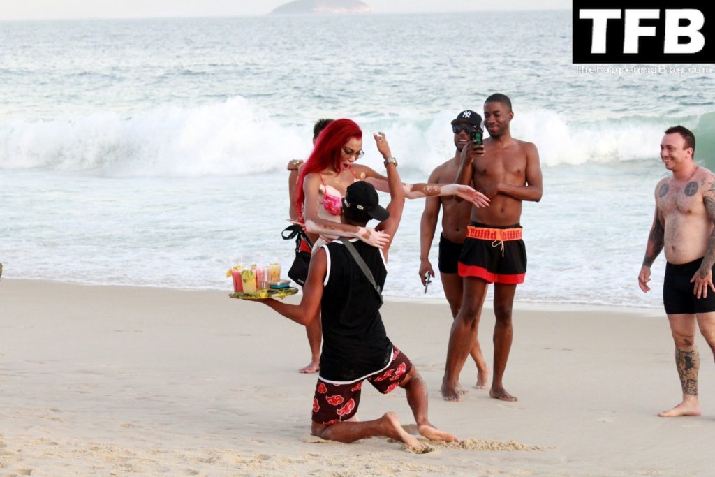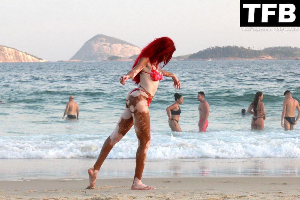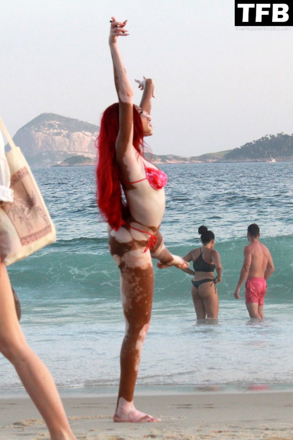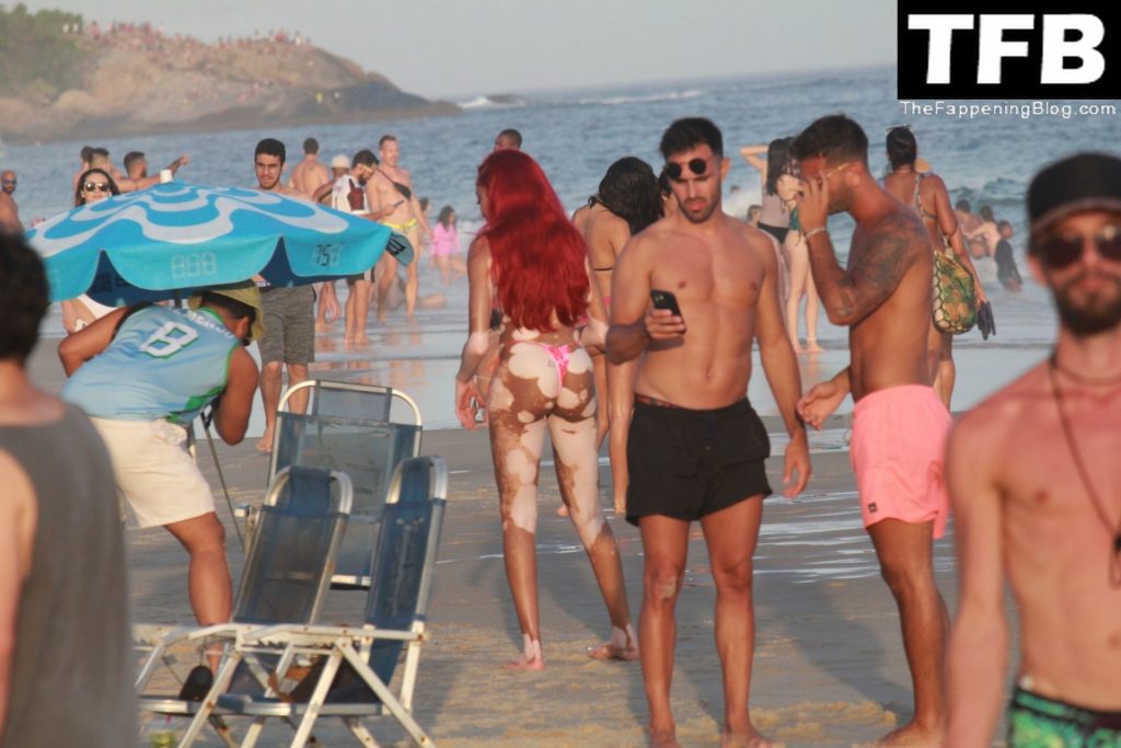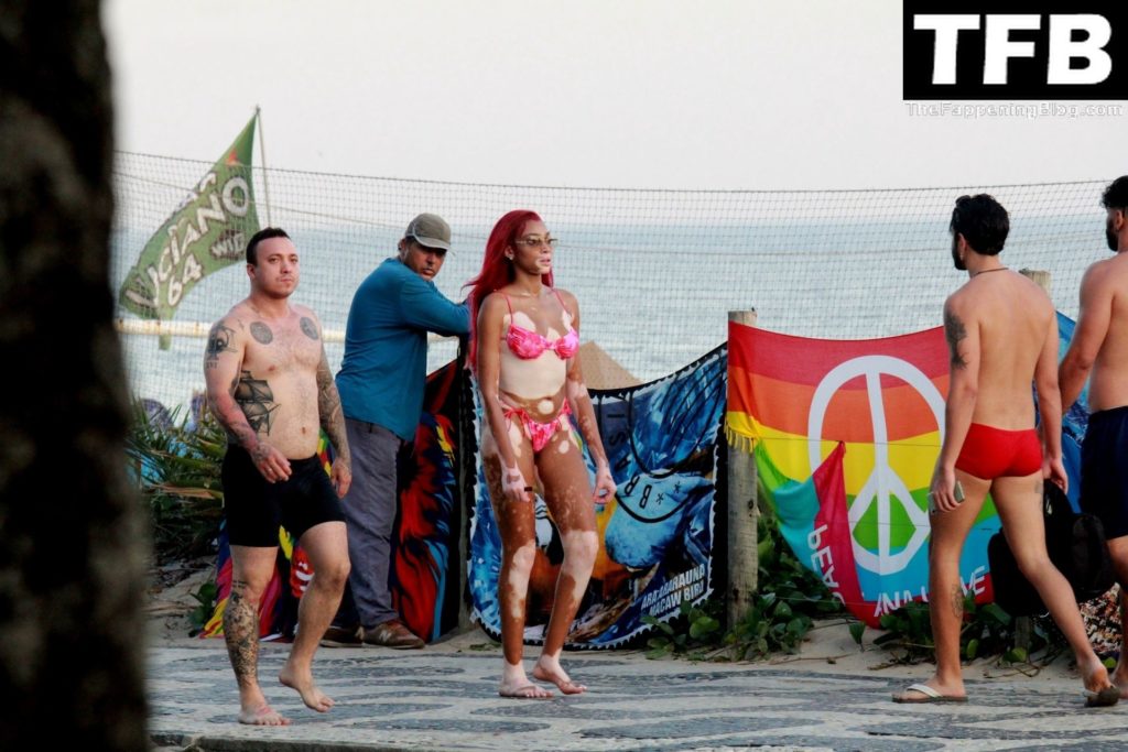 La modella canadese Winnie Harlow mostra il suo corpo in bikini mentre si gode una giornata sulla spiaggia di Ipanema con i fidanzati durante il Camarote N 1 al Marquês de Sapucaí a Rio de Janeiro, Brasile, 23/04/2022.