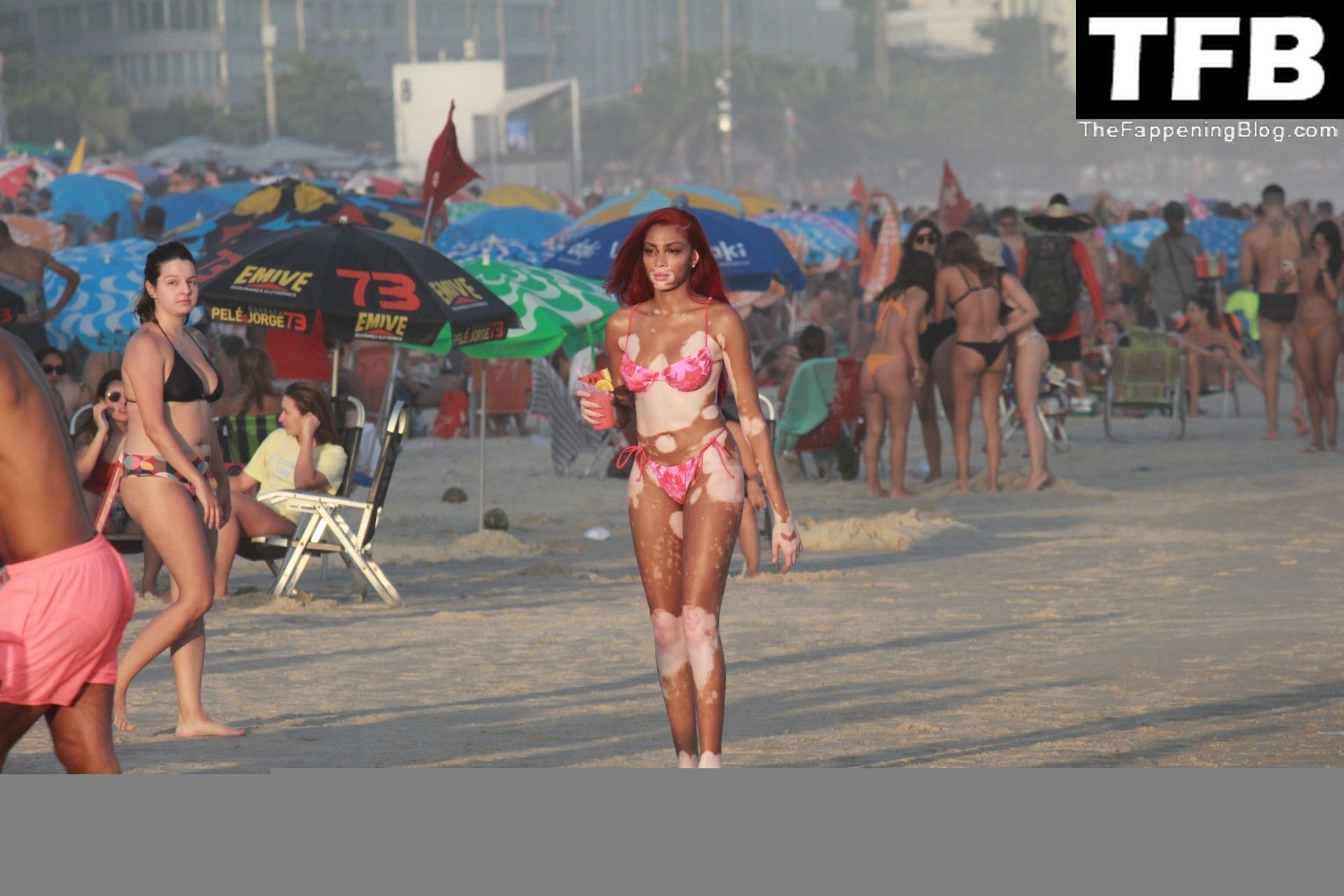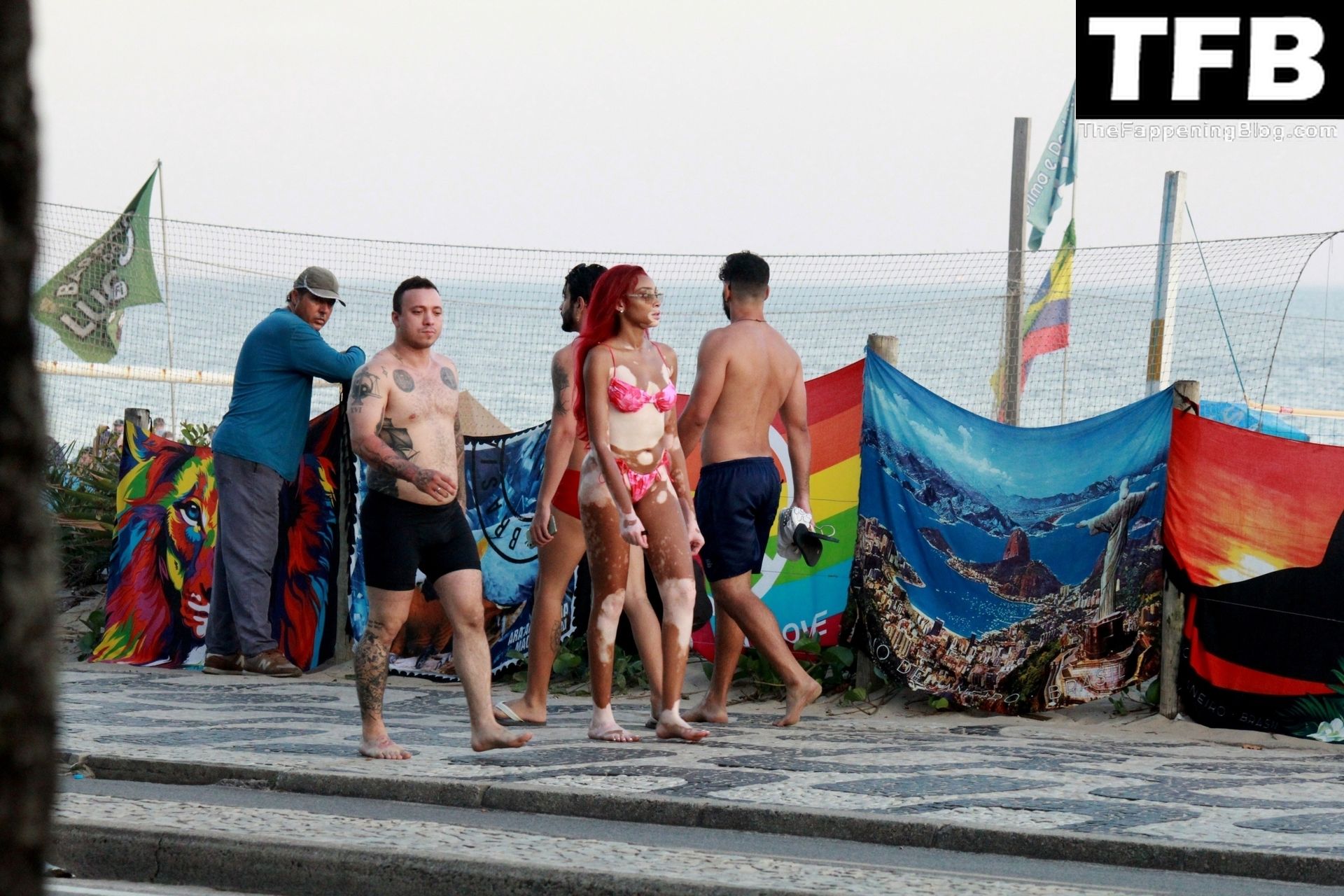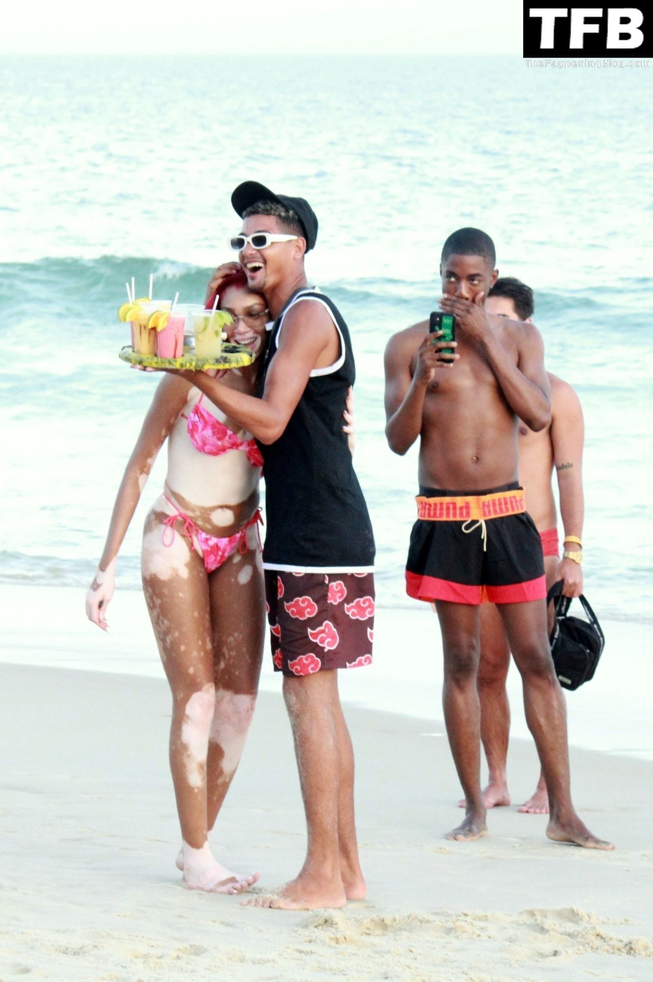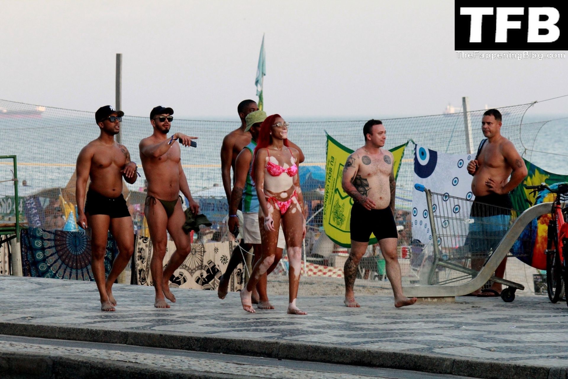 La modella canadese Winnie Harlow mostra il suo corpo in bikini mentre si gode una giornata sulla spiaggia di Ipanema con i fidanzati durante il Camarote N 1 al Marquês de Sapucaí a Rio de Janeiro, Brasile, 23/04/2022.