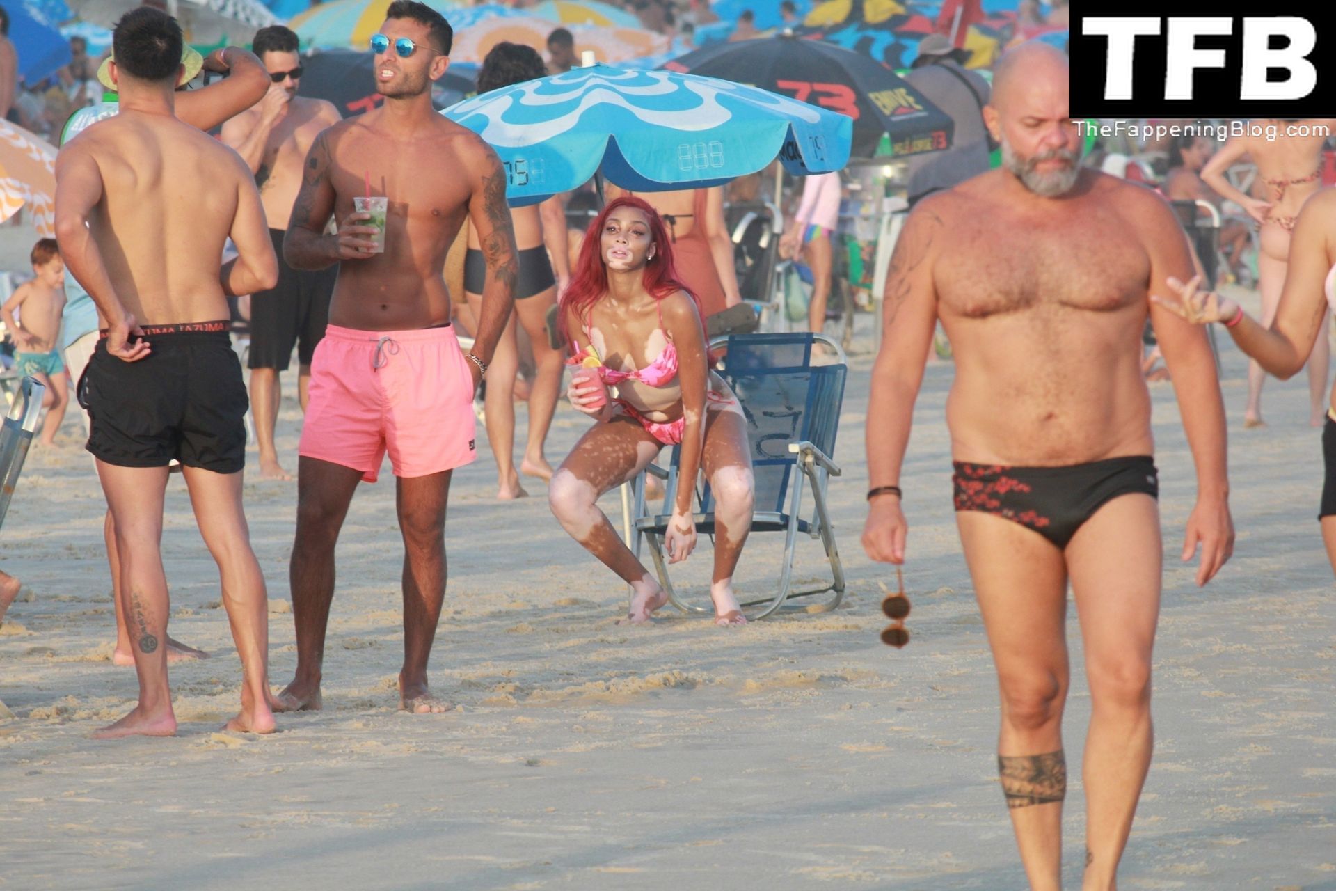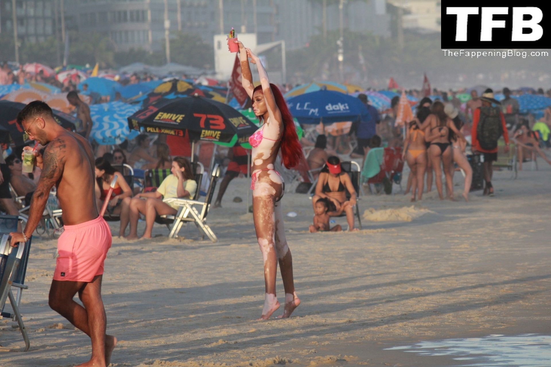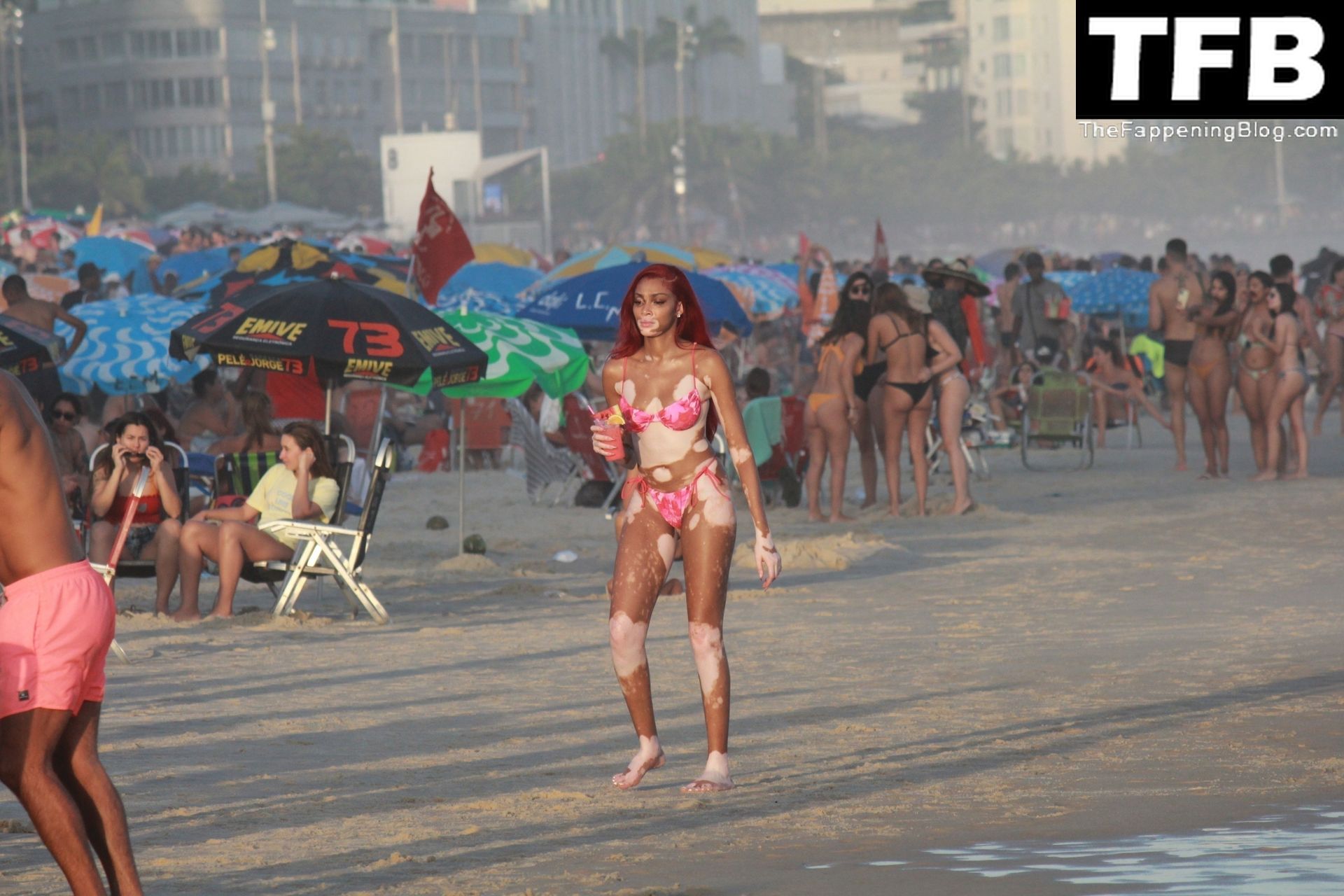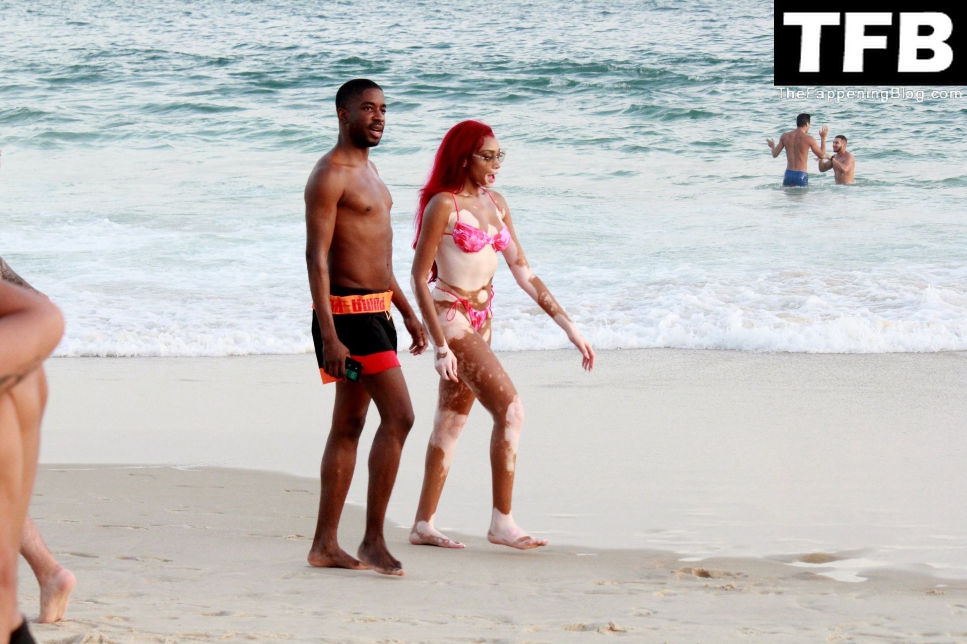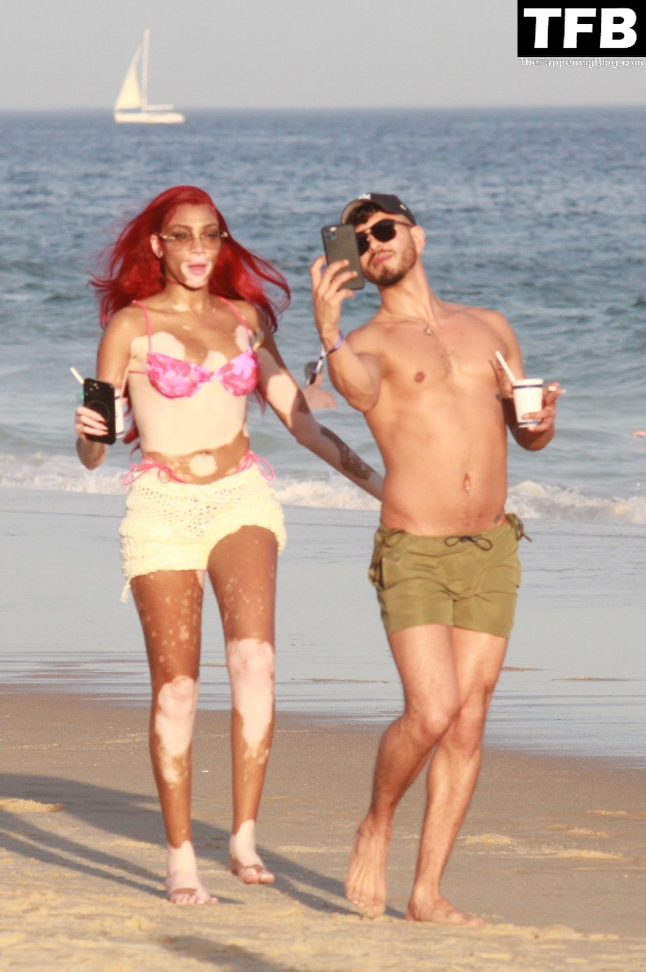 La modella canadese Winnie Harlow mostra il suo corpo in bikini mentre si gode una giornata sulla spiaggia di Ipanema con i fidanzati durante il Camarote N 1 al Marquês de Sapucaí a Rio de Janeiro, Brasile, 23/04/2022.