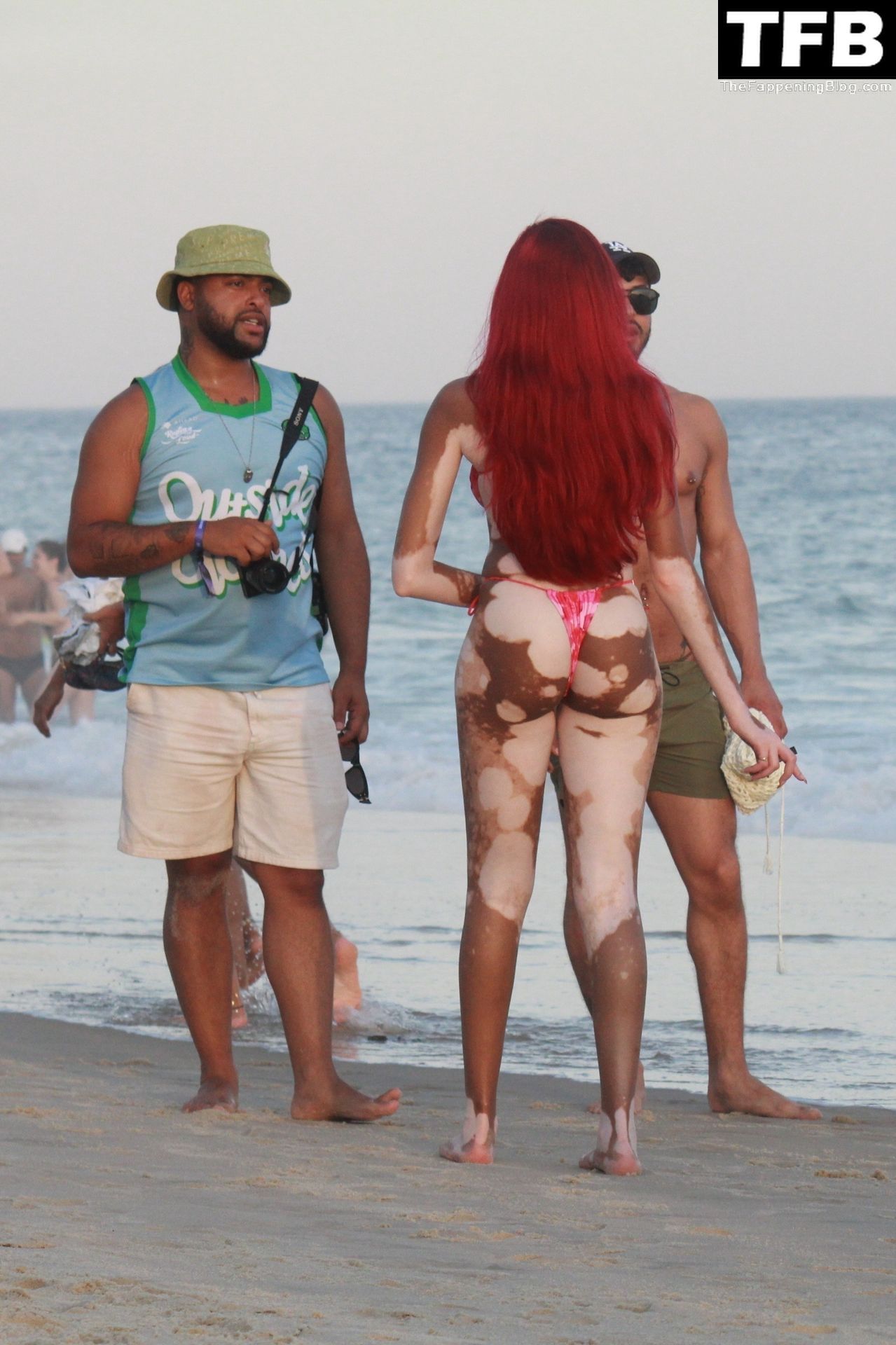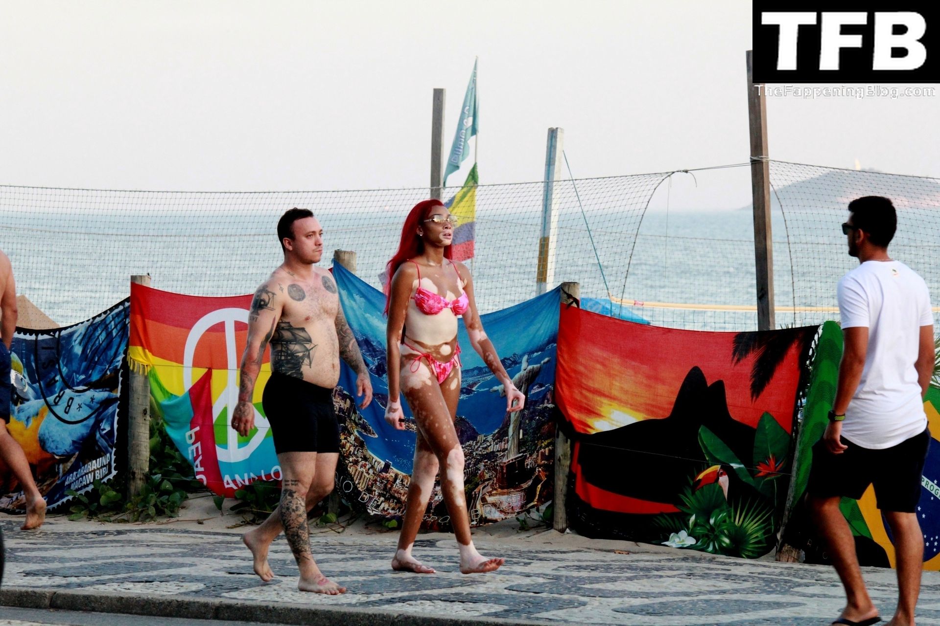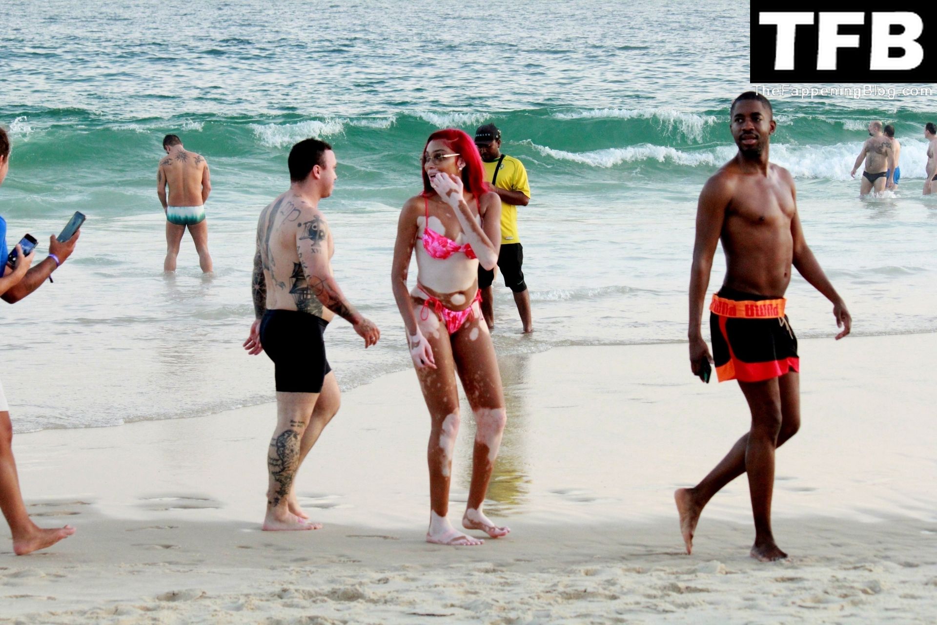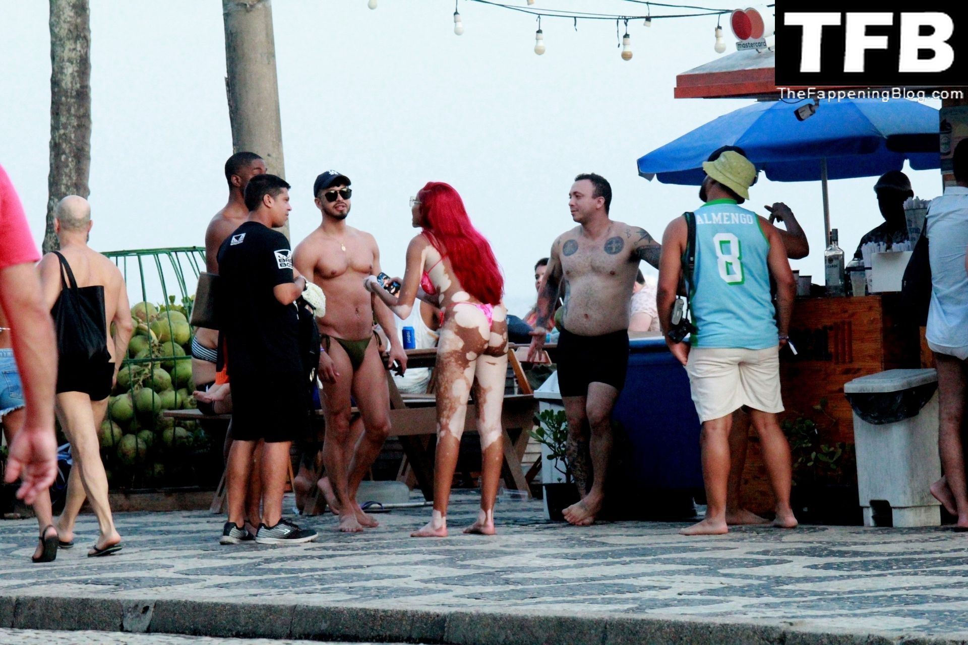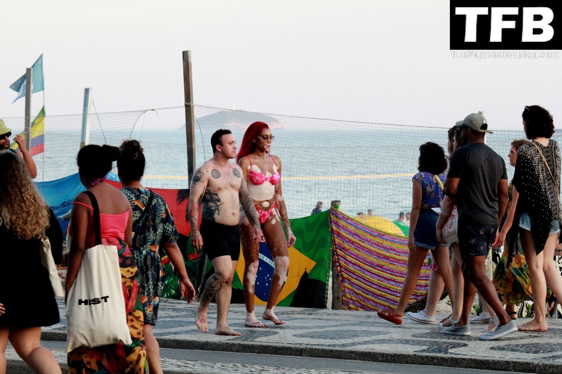 La modella canadese Winnie Harlow mostra il suo corpo in bikini mentre si gode una giornata sulla spiaggia di Ipanema con i fidanzati durante il Camarote N 1 al Marquês de Sapucaí a Rio de Janeiro, Brasile, 23/04/2022.