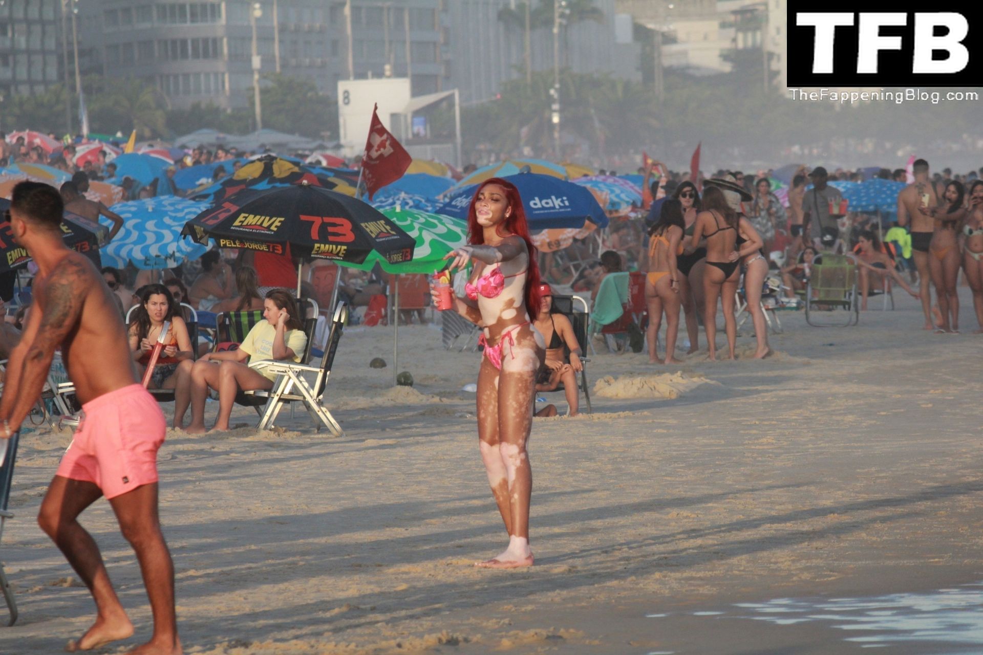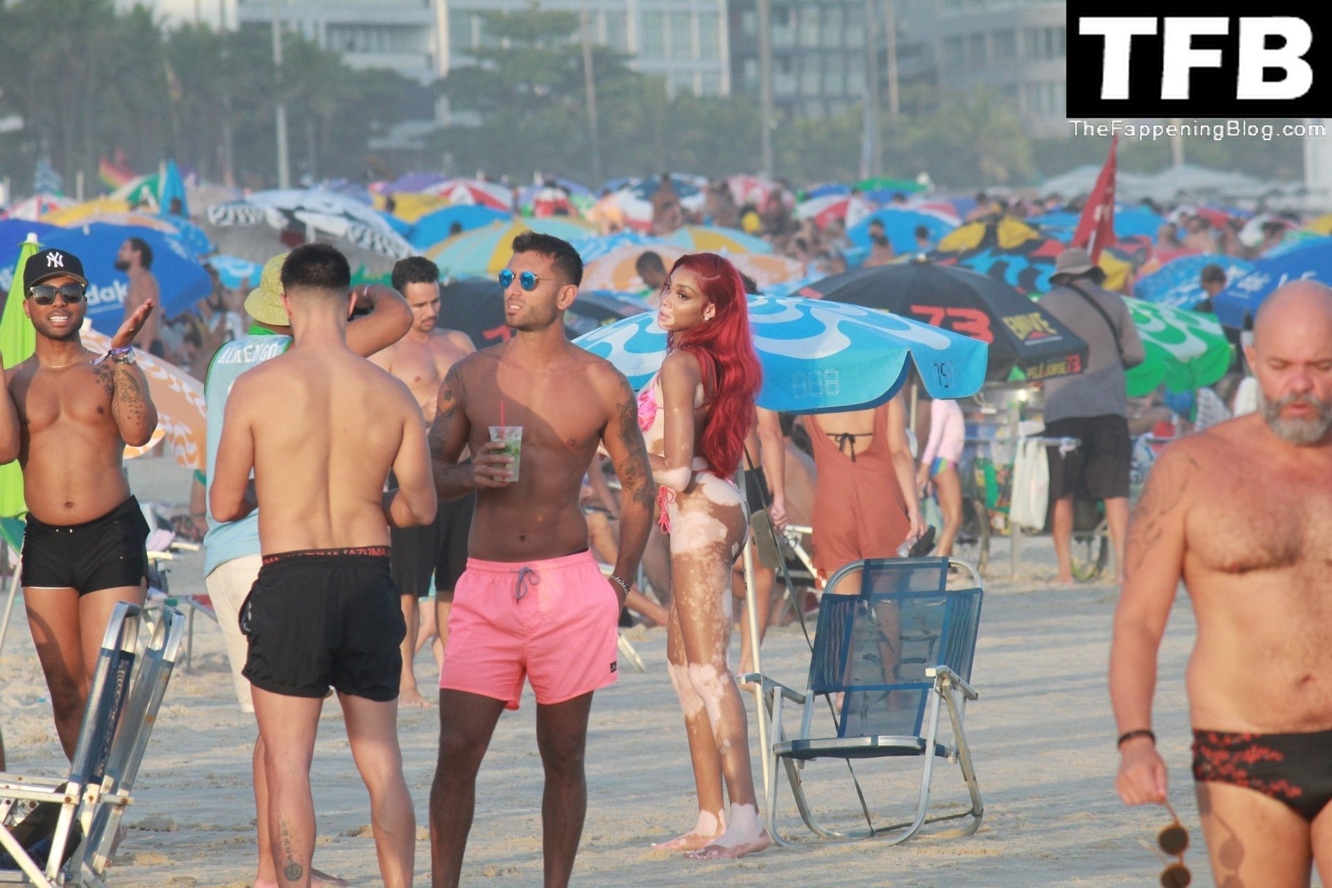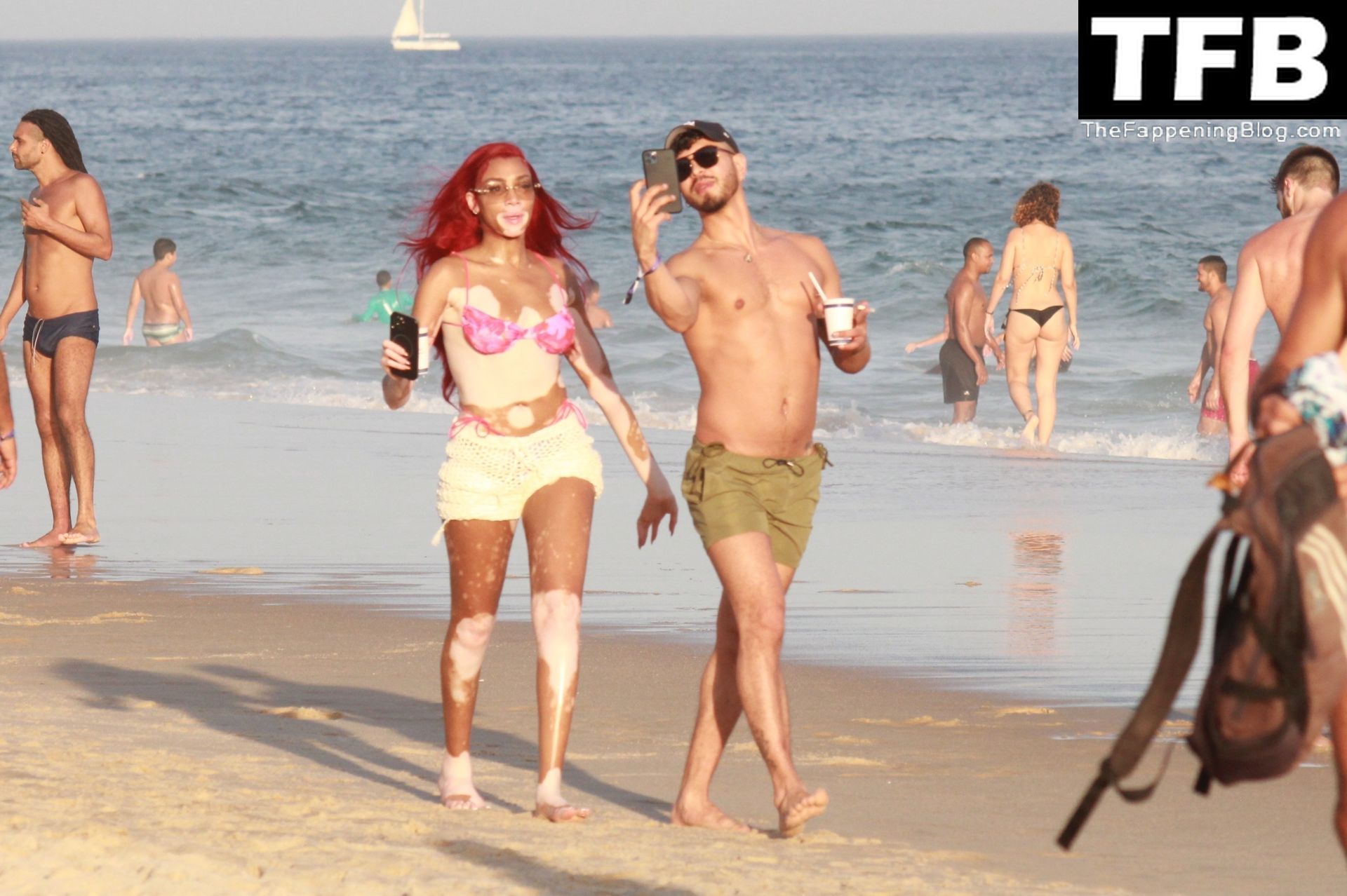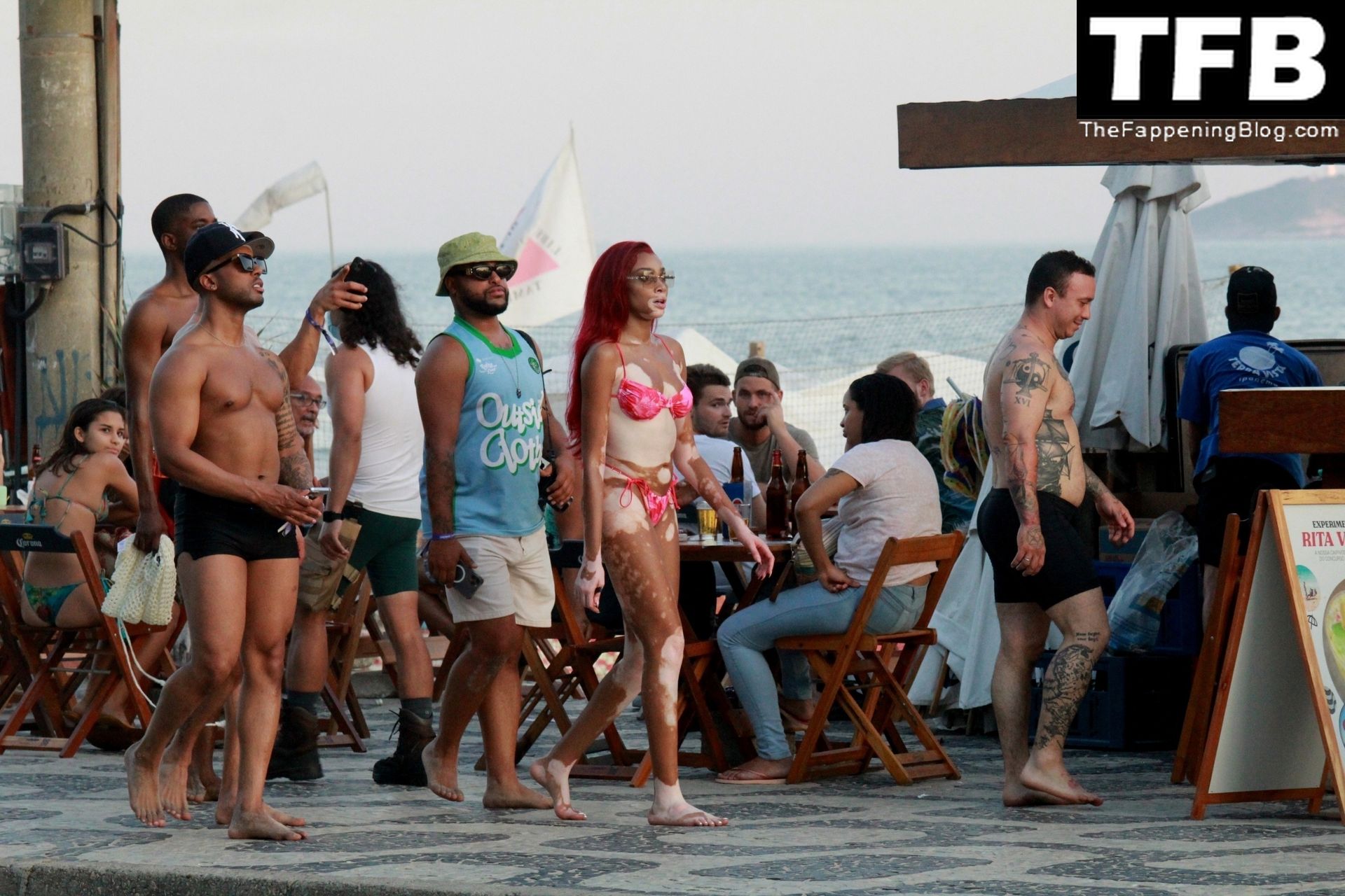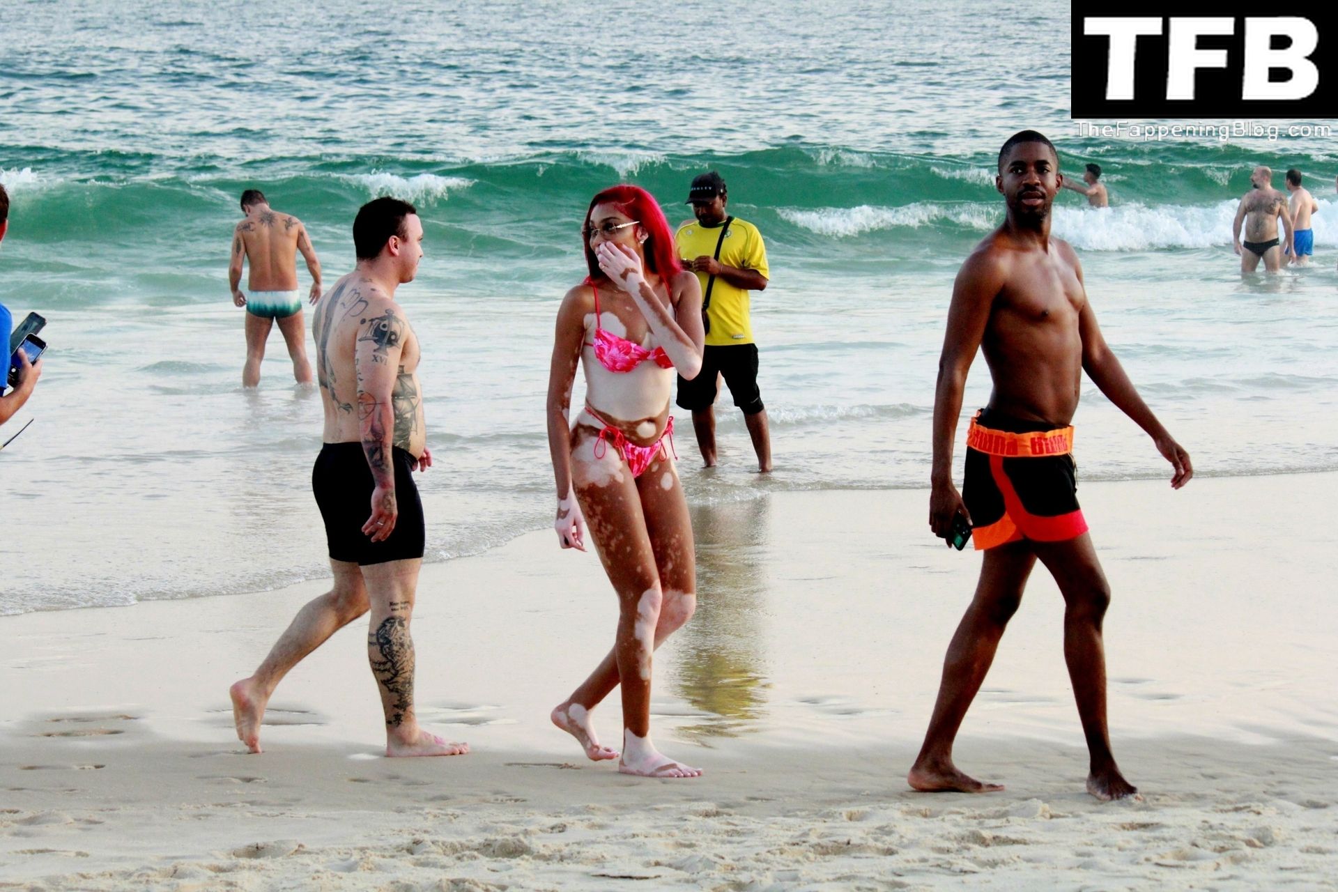 La modella canadese Winnie Harlow mostra il suo corpo in bikini mentre si gode una giornata sulla spiaggia di Ipanema con i fidanzati durante il Camarote N 1 al Marquês de Sapucaí a Rio de Janeiro, Brasile, 23/04/2022.