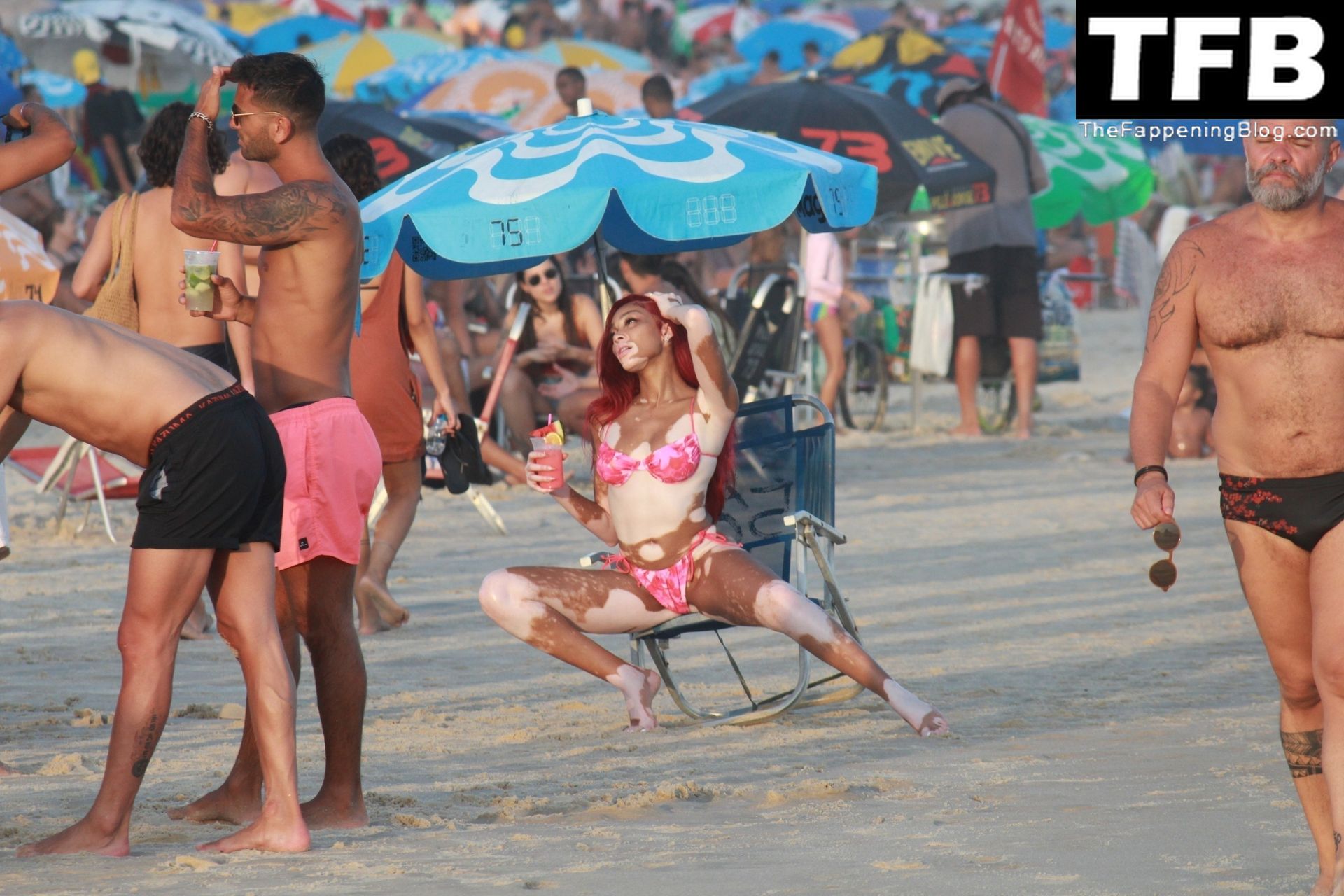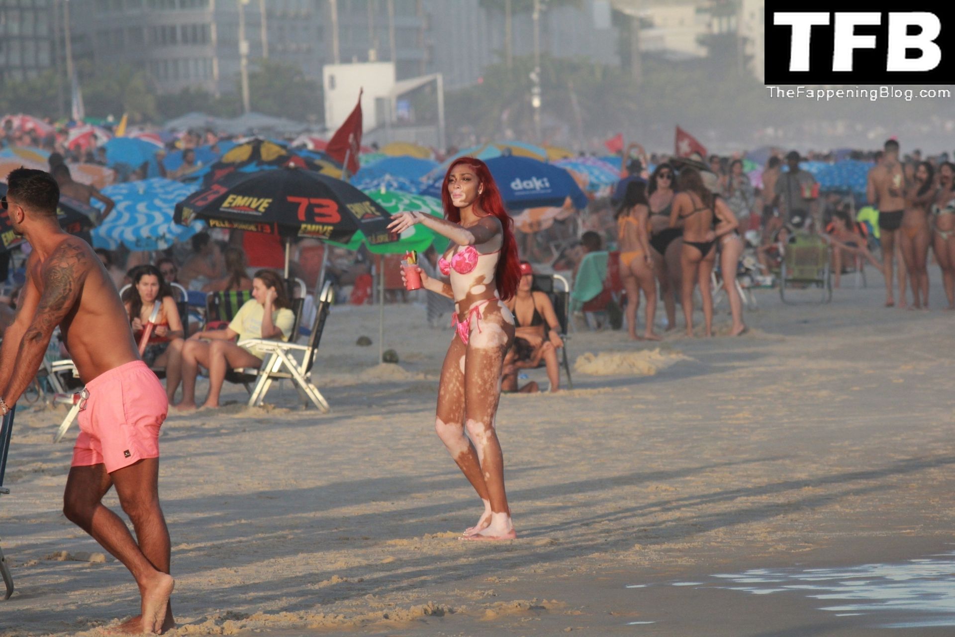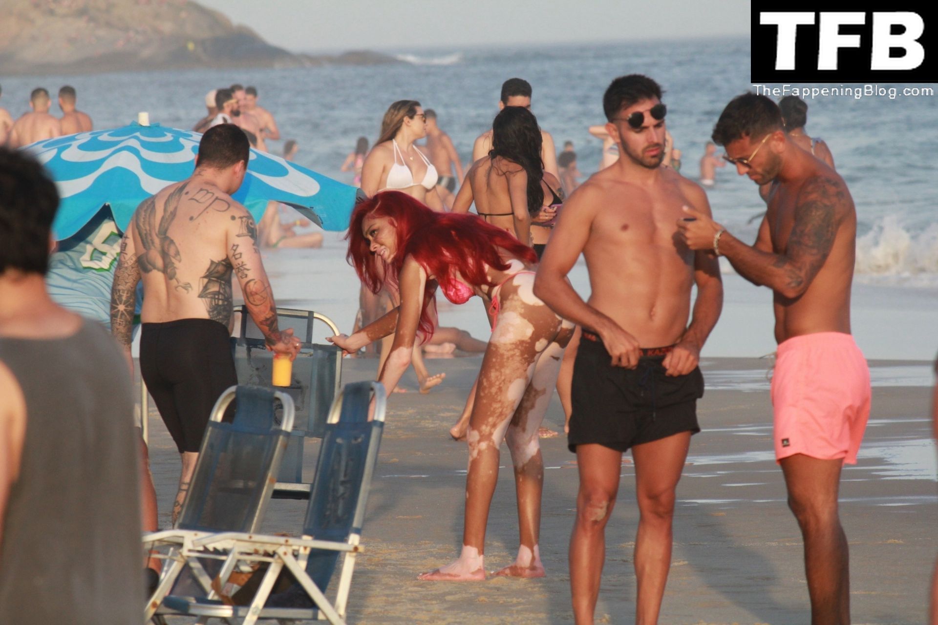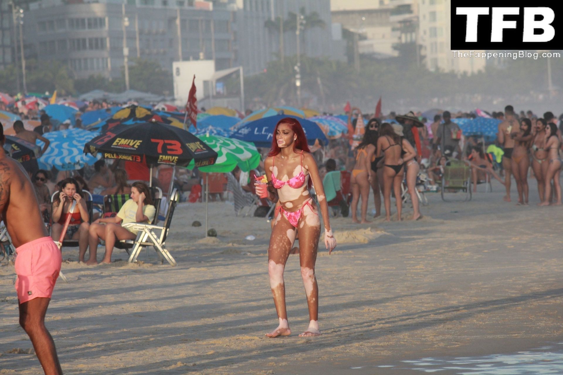 La modella canadese Winnie Harlow mostra il suo corpo in bikini mentre si gode una giornata sulla spiaggia di Ipanema con i fidanzati durante il Camarote N 1 al Marquês de Sapucaí a Rio de Janeiro, Brasile, 23/04/2022.
