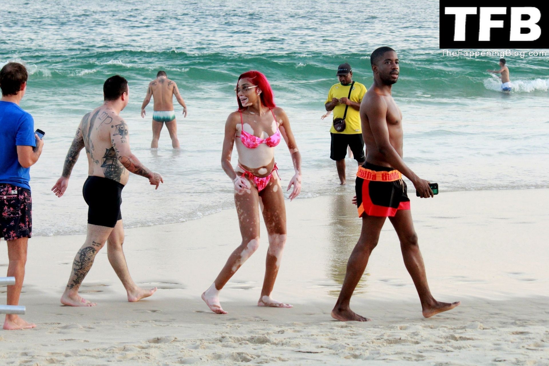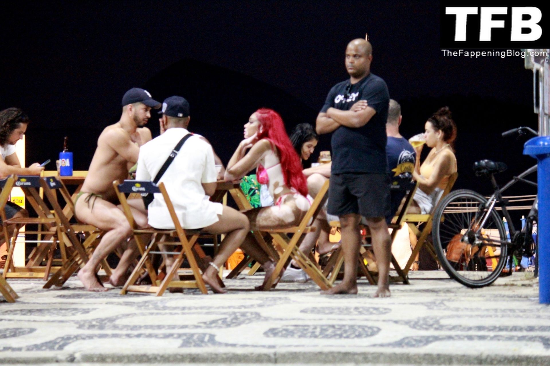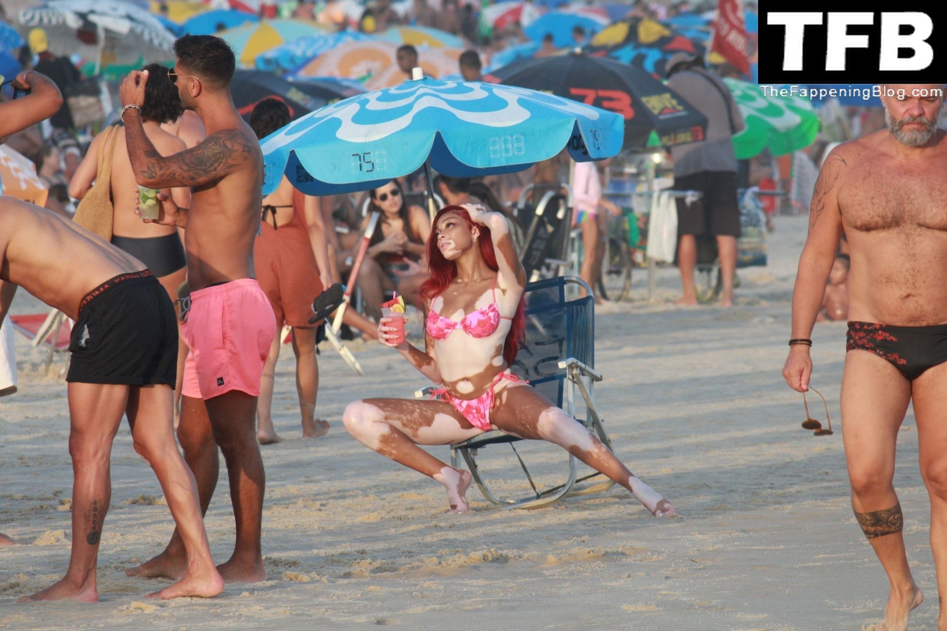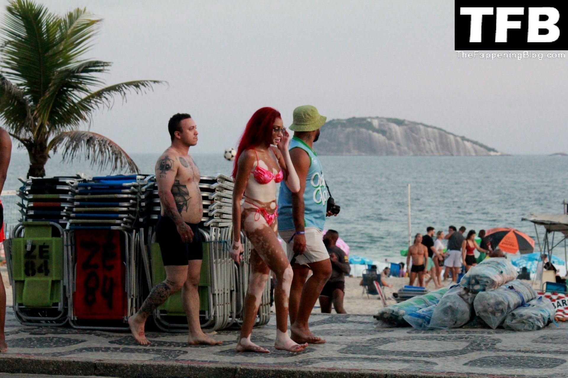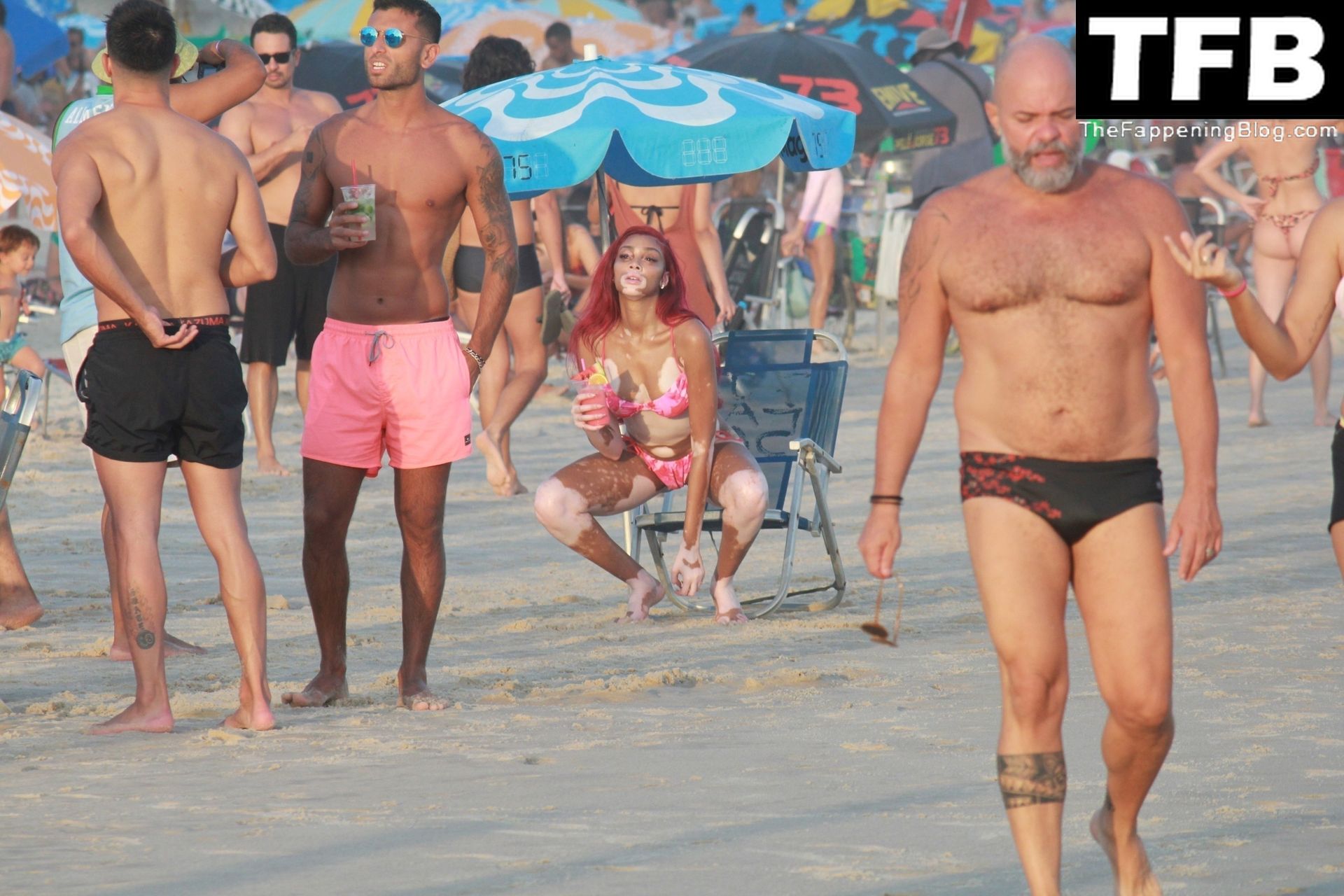 La modella canadese Winnie Harlow mostra il suo corpo in bikini mentre si gode una giornata sulla spiaggia di Ipanema con i fidanzati durante il Camarote N 1 al Marquês de Sapucaí a Rio de Janeiro, Brasile, 23/04/2022.