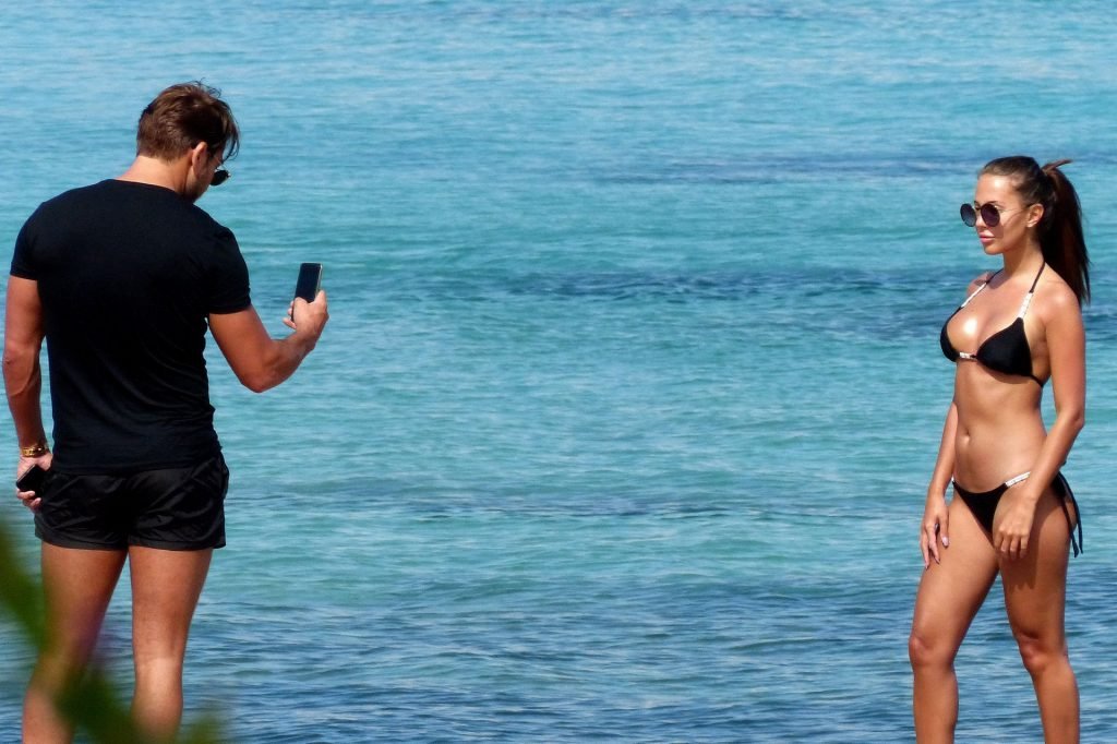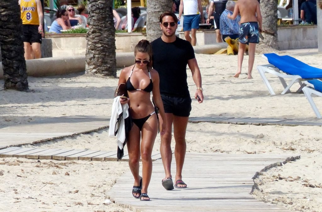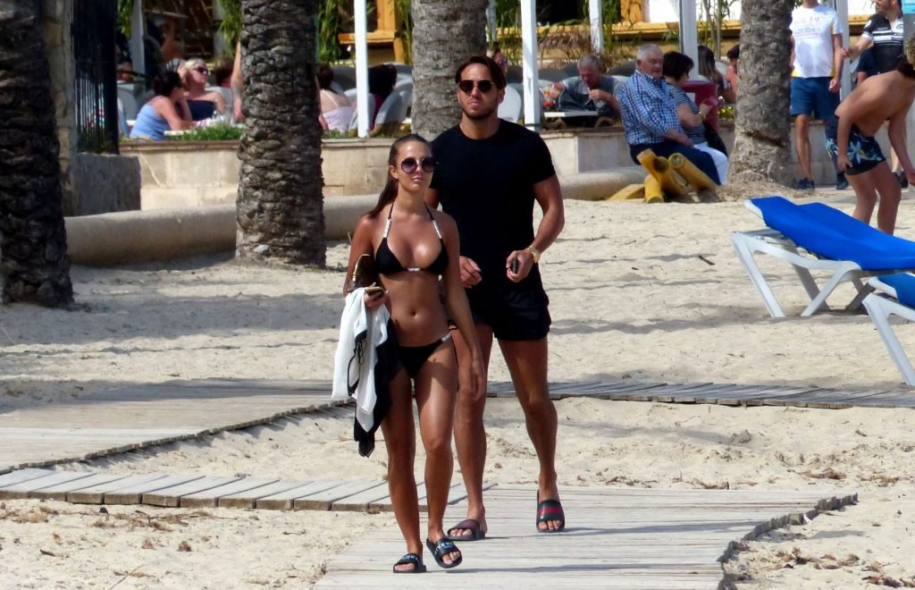 Le star di The Only Way Is Essex Yazmin Oukhellou, 24 anni, e James ‘Lockie’ Lock, 31 anni, si preparano per l’estate mostrando i loro corpi abbronzati in spiaggia durante una vacanza in Spagna, 21/04/2018. Le star di TOWIE si sono rilassate a bordo piscina mentre erano a Maiorca e si sono fermate per scattare foto sulla spiaggia. Yaz appariva splendida in un bikini nero e bianco molto succinto.