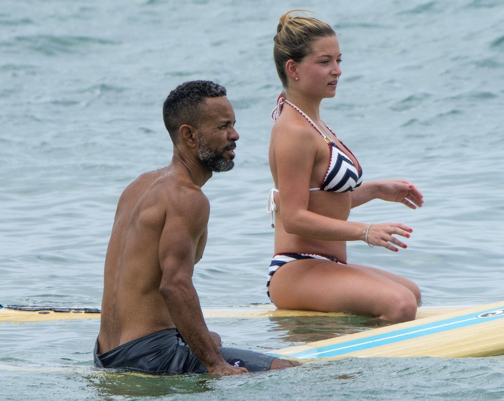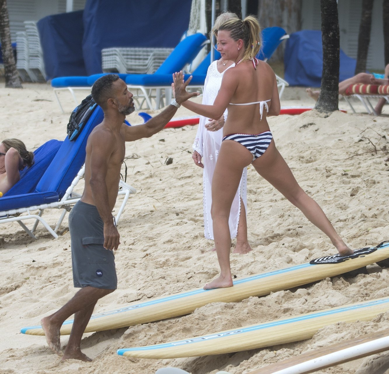 Ex Miss Gran Bretagna, personalità di Love Island e imprenditrice Zara Holland mostra il suo corpo sexy in bikini durante una lezione di surf a Bridgetown, Barbados, 28/03/2018 (o 24/03).