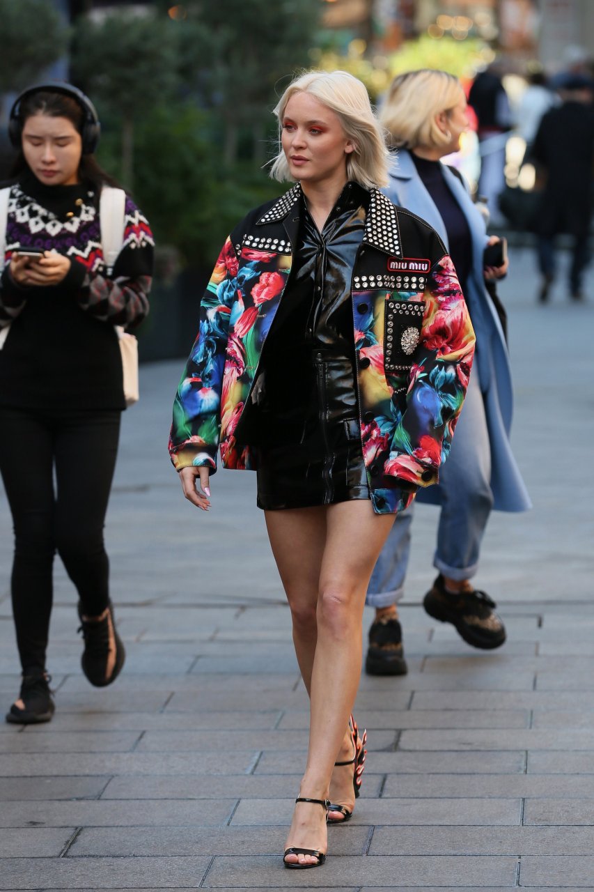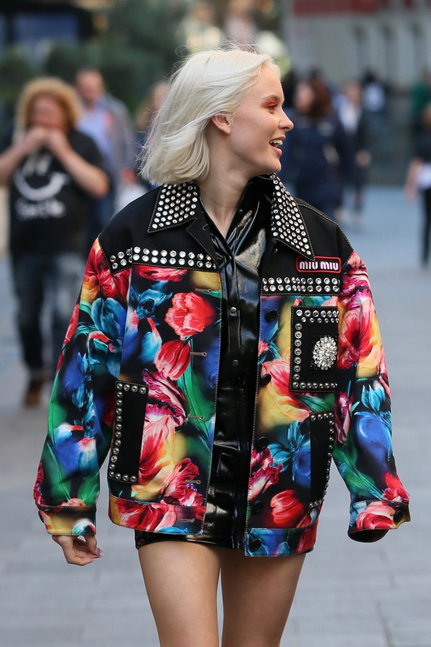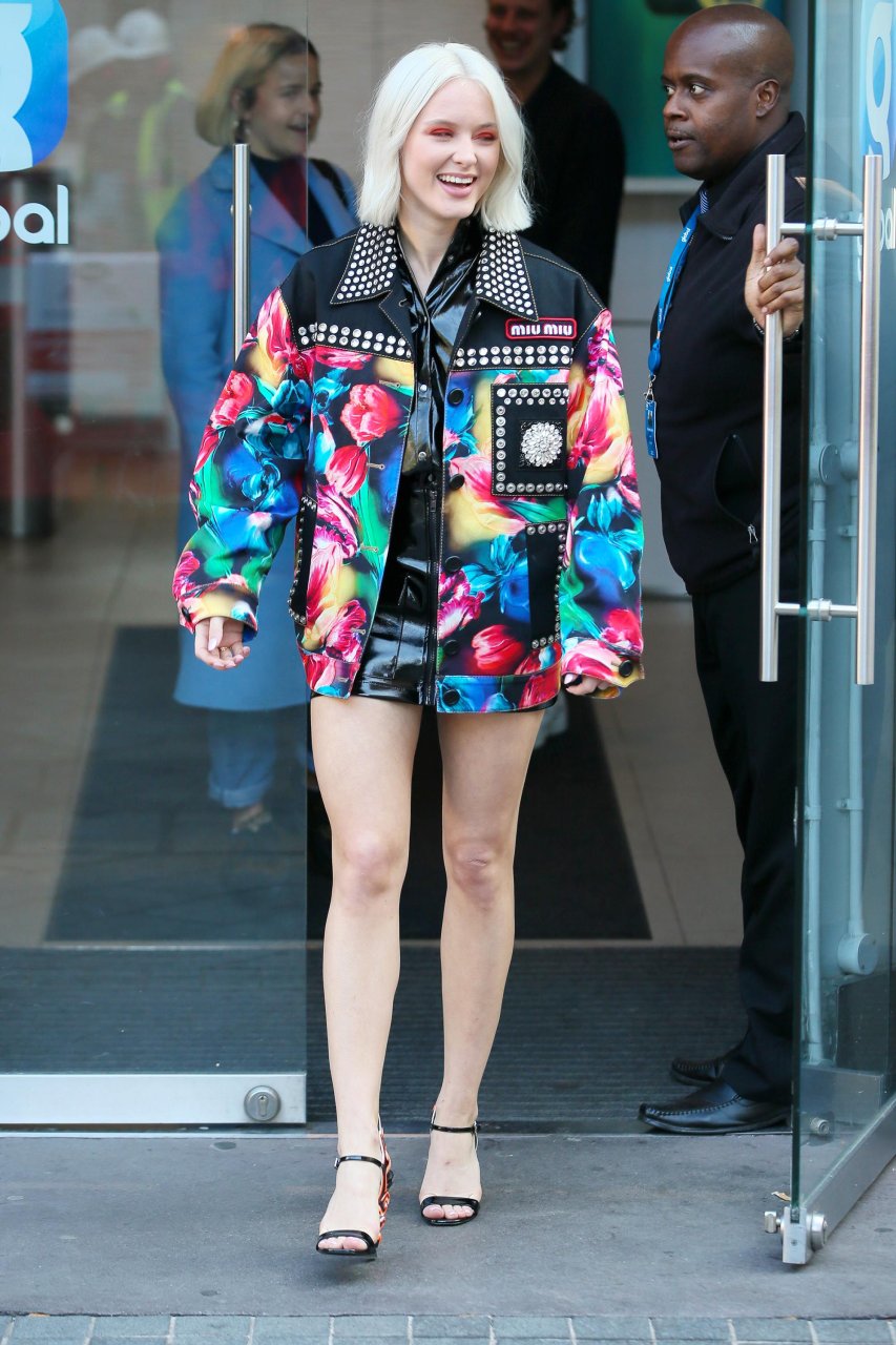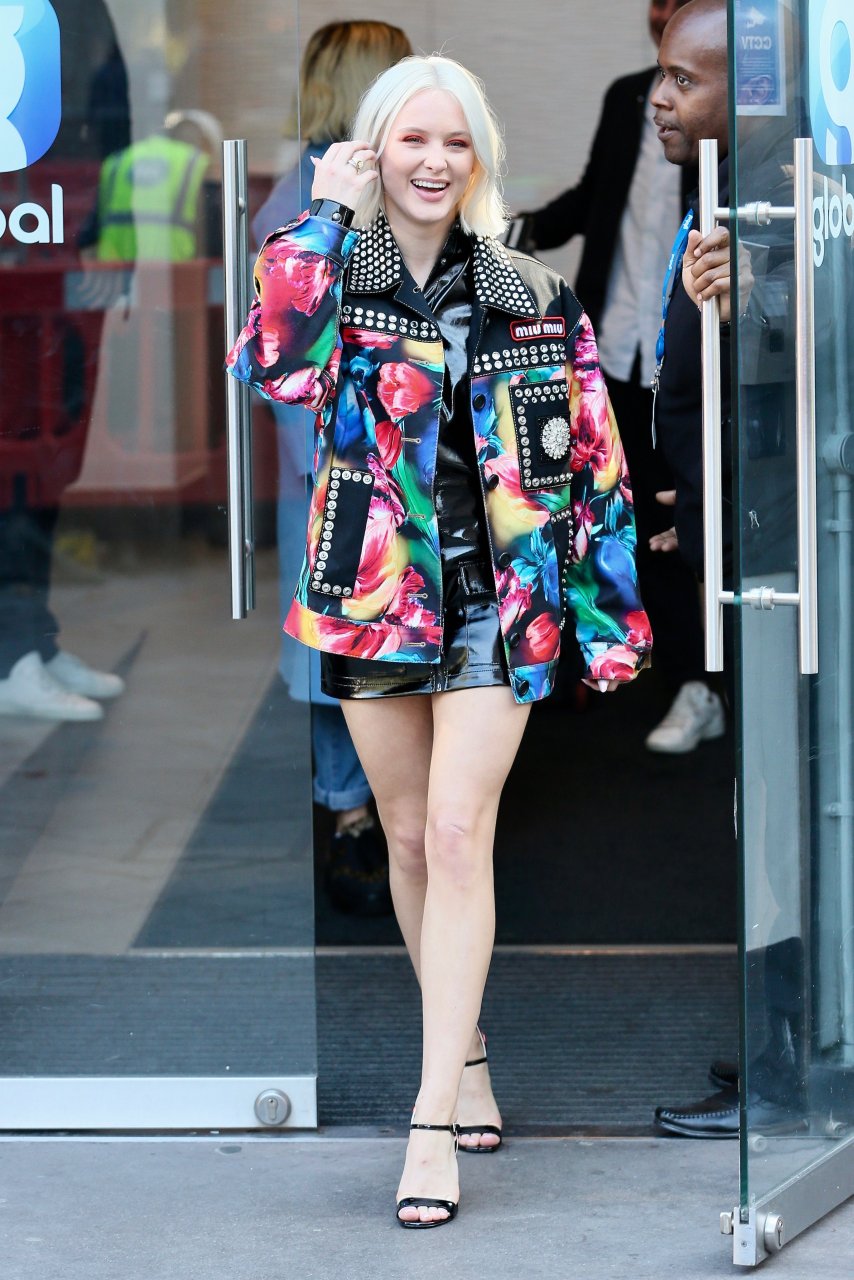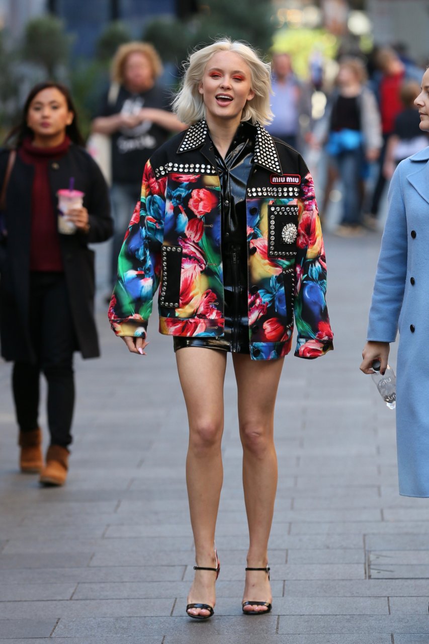 Zara Larsson slanciata (20) è stata vista indossare una giacca Miu Miu mentre lascia la Global Radio Station dopo aver promosso il suo nuovo singolo “Ruin My Life” a Londra, 16/10/2018.