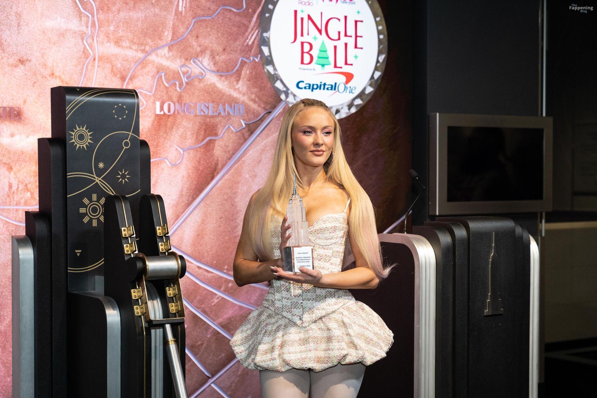 GRAMMY-nominata, artista multi-platino e star di The Fappening Zara Larsson mostra le sue gambe sexy e il seno mentre visita l’Empire State Building a New York, NY per l’illuminazione cerimoniale per celebrare l’iHeartRadio Z100 Jingle Ball.