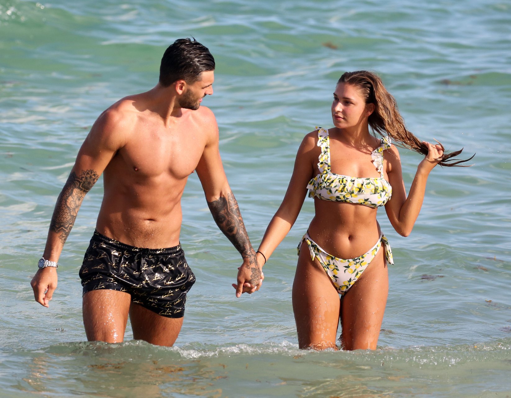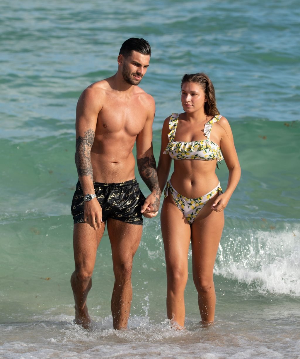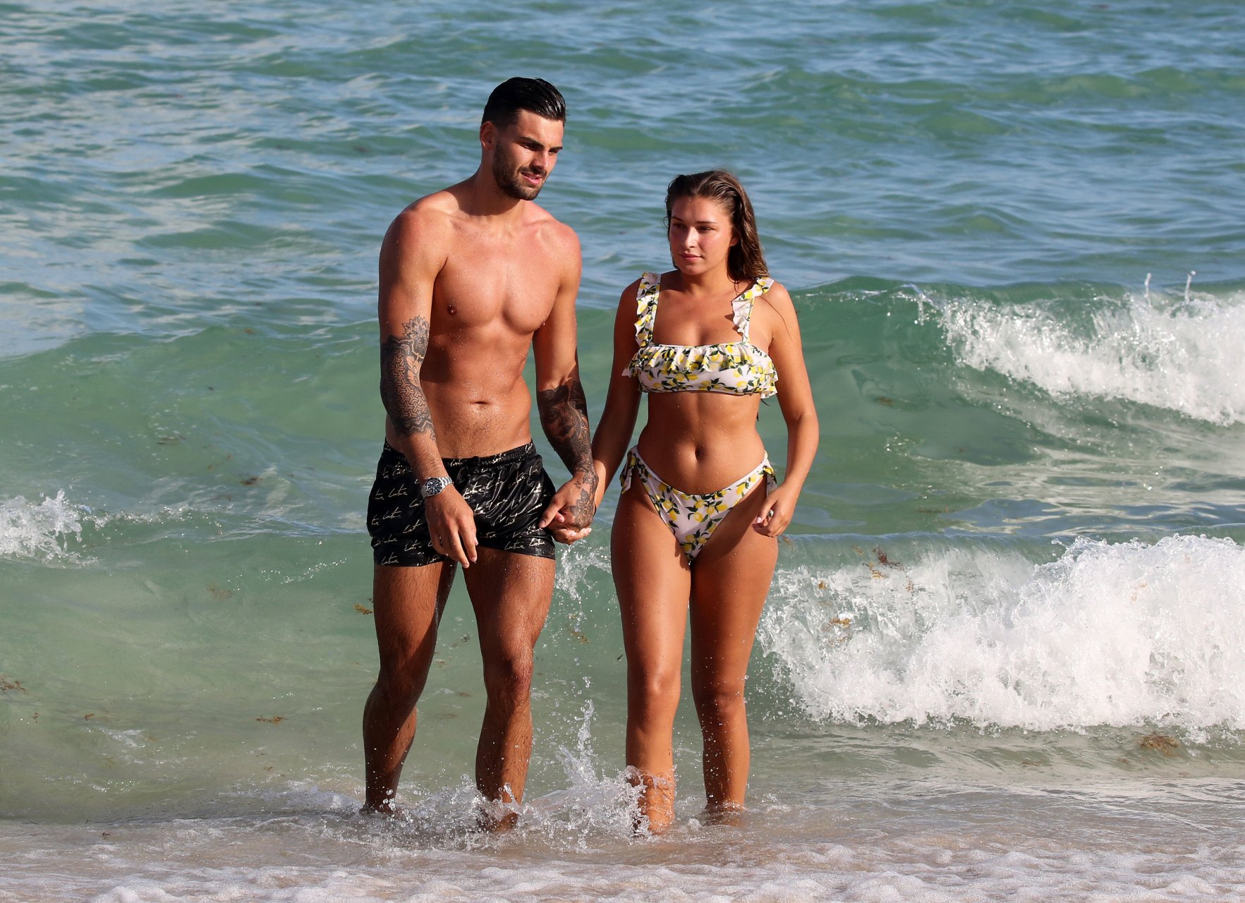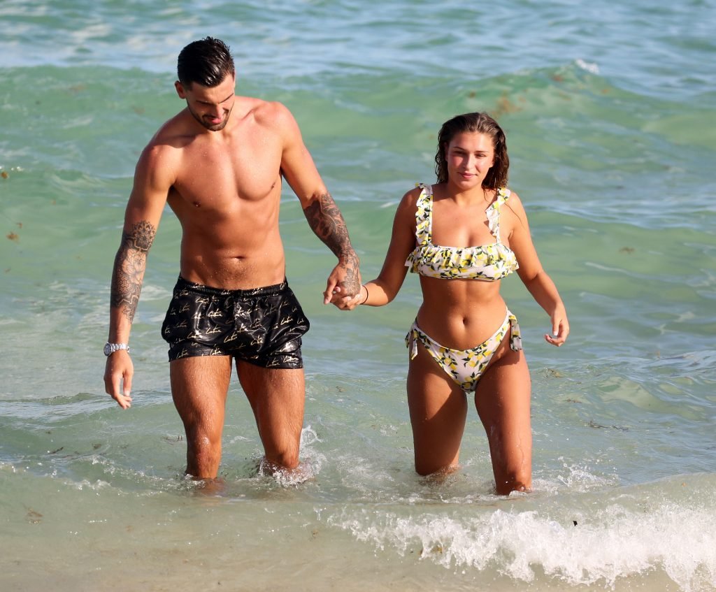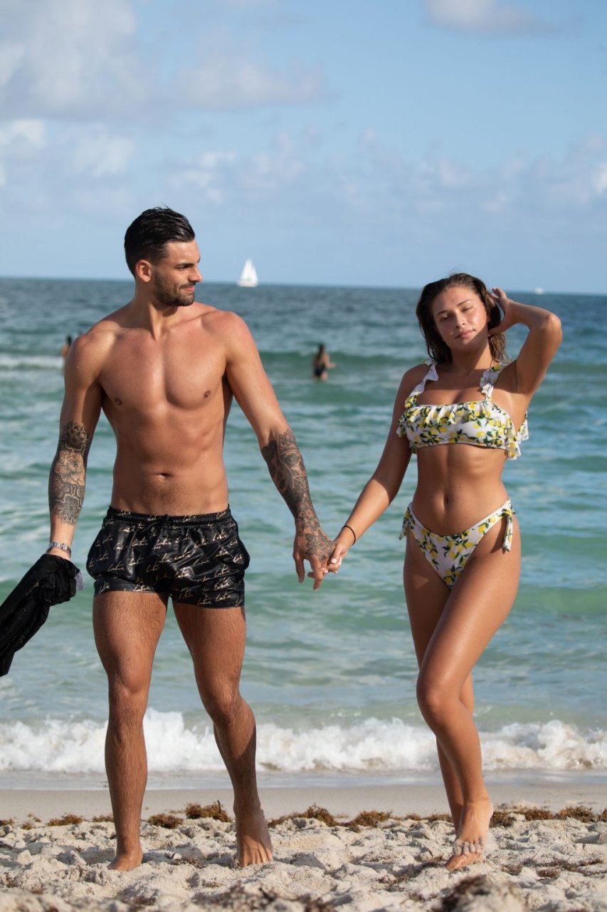 Love Island’s Zara McDermott (21) e Adam Collard mostrano i loro corpi da spiaggia e mostrano più PDA sulla spiaggia a Miami Beach, 11/08/2018.