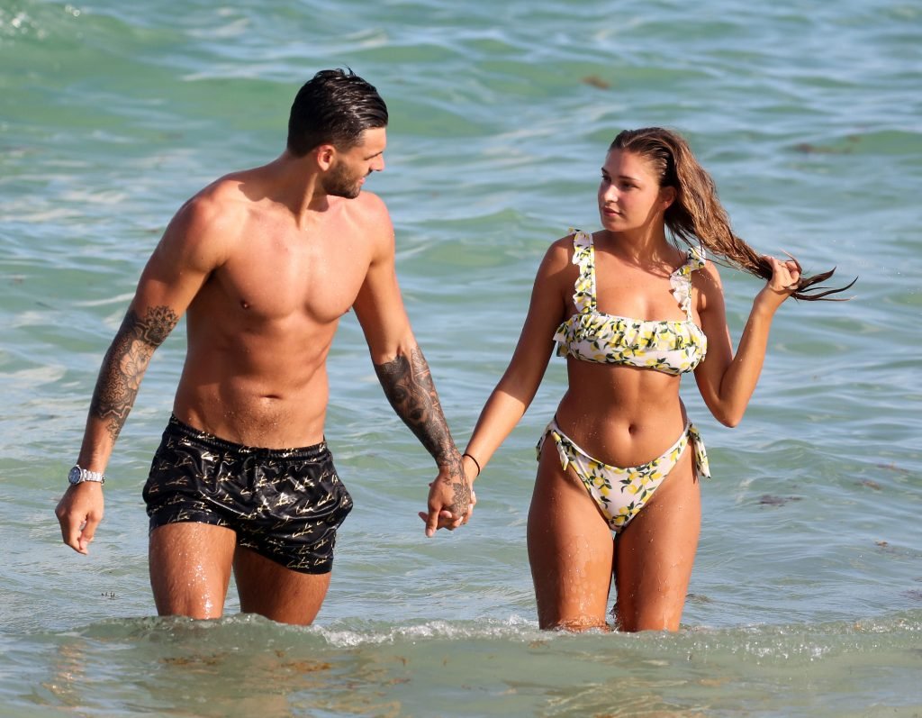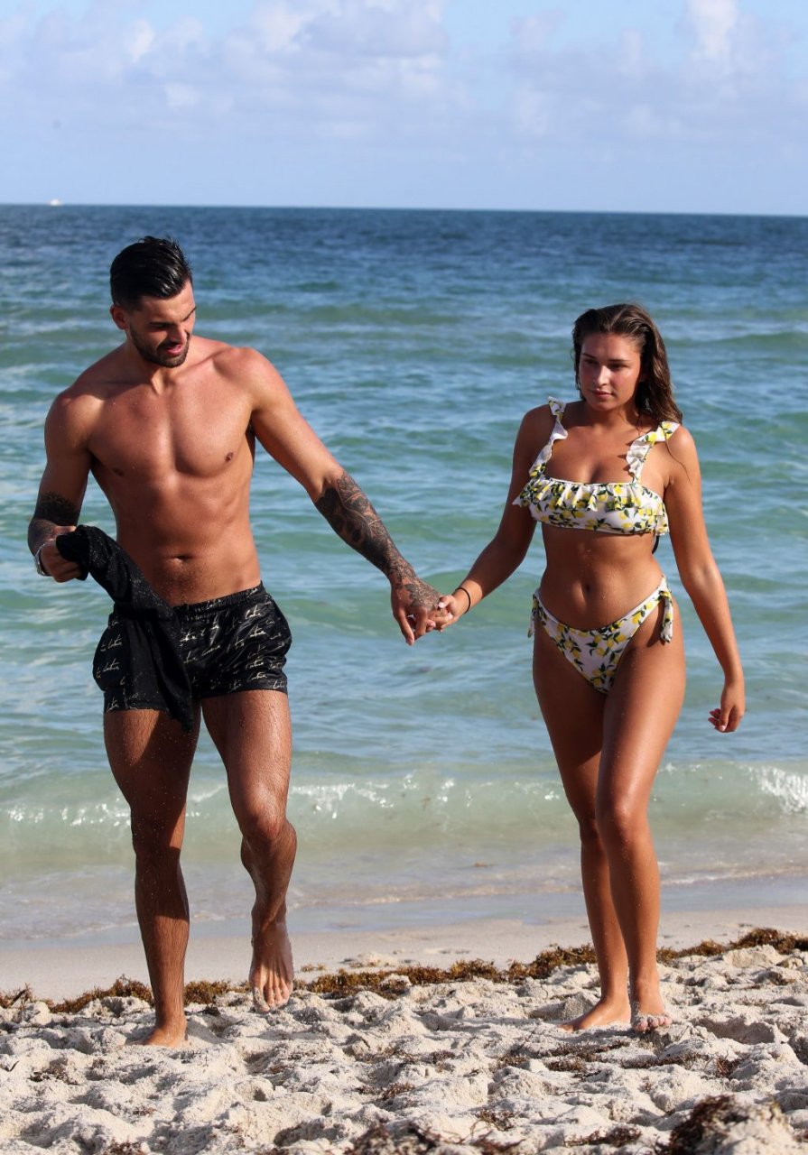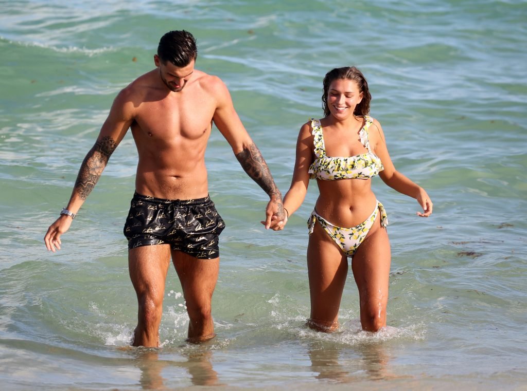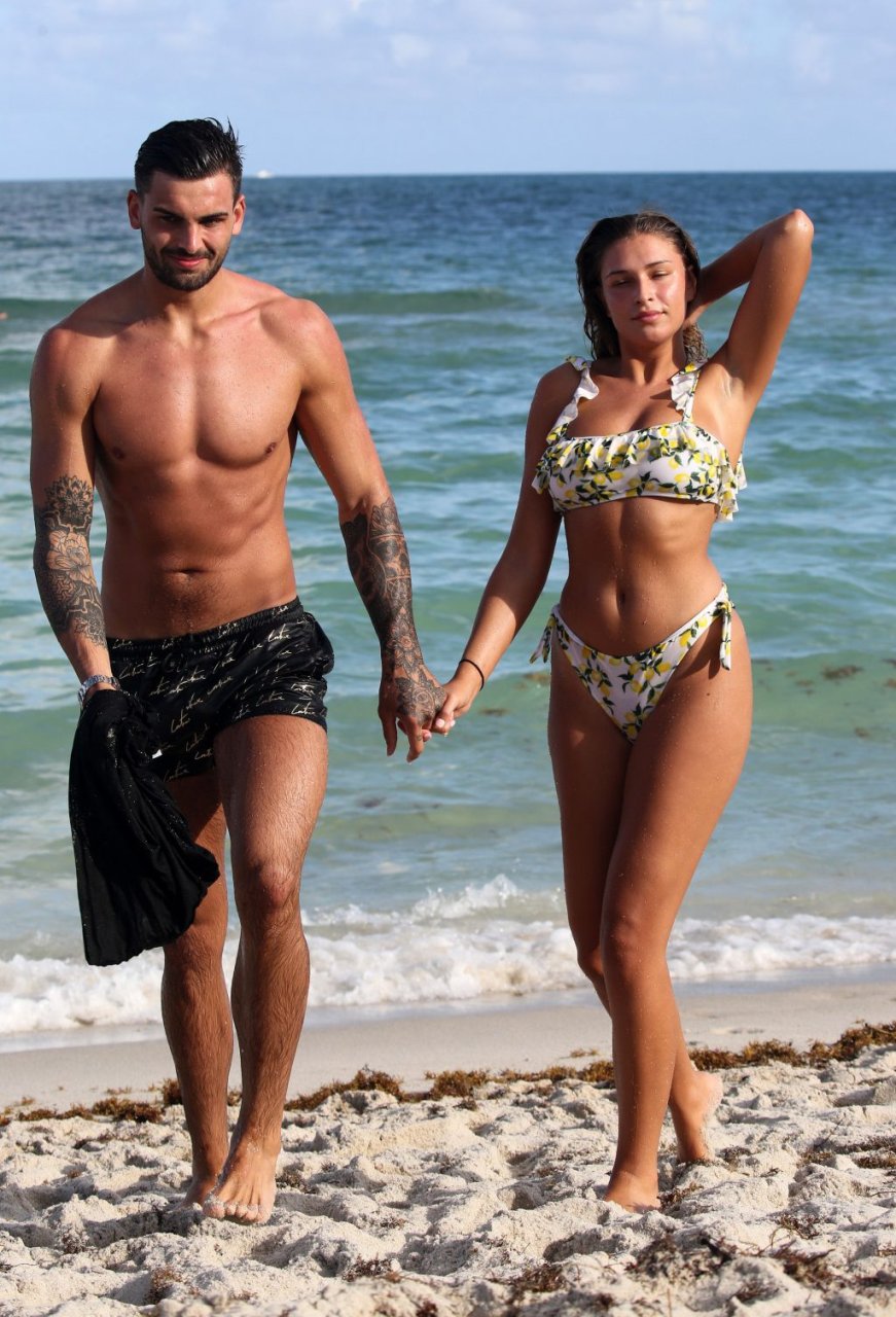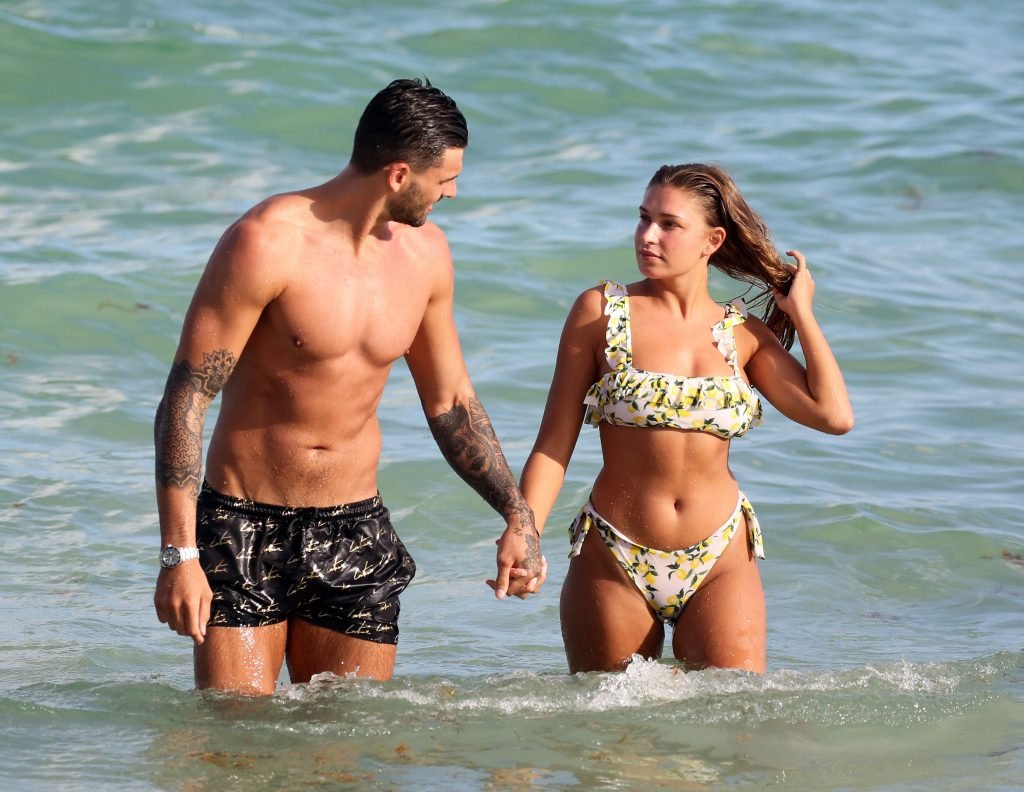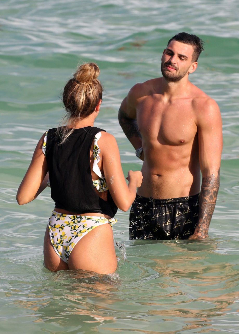 Love Island’s Zara McDermott (21) e Adam Collard mostrano i loro corpi da spiaggia e mostrano più PDA sulla spiaggia a Miami Beach, 11/08/2018.