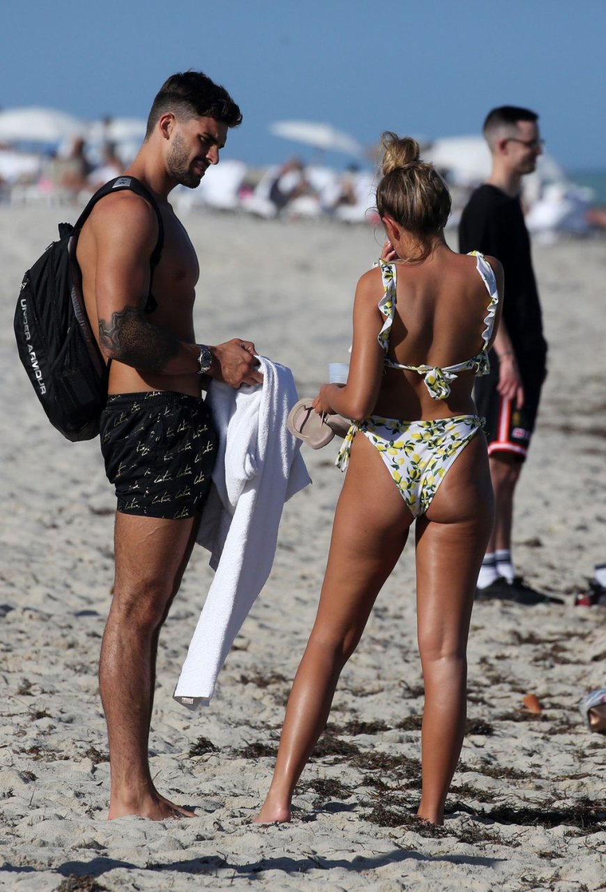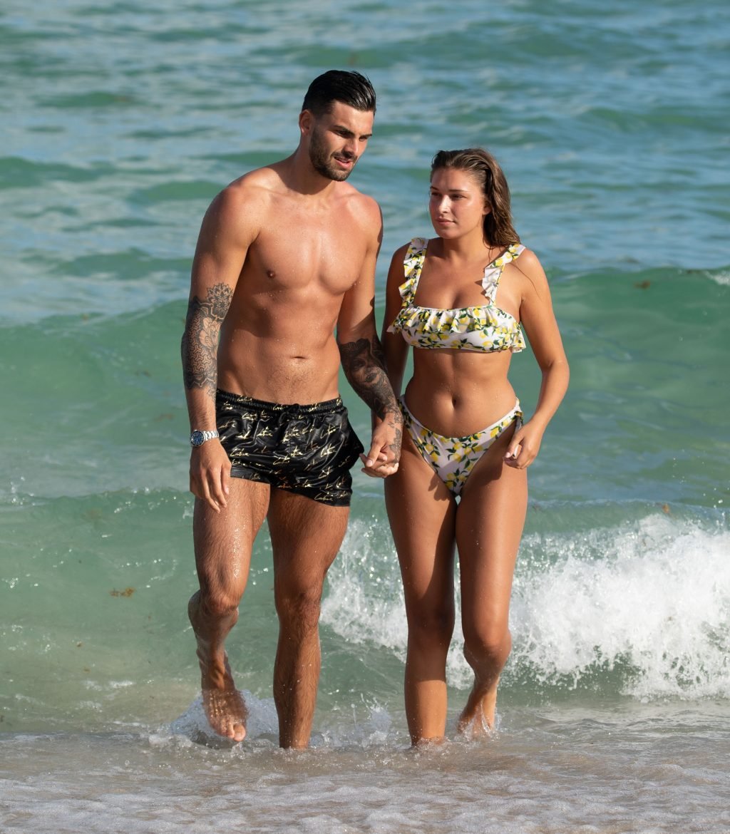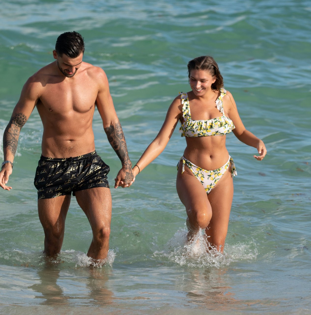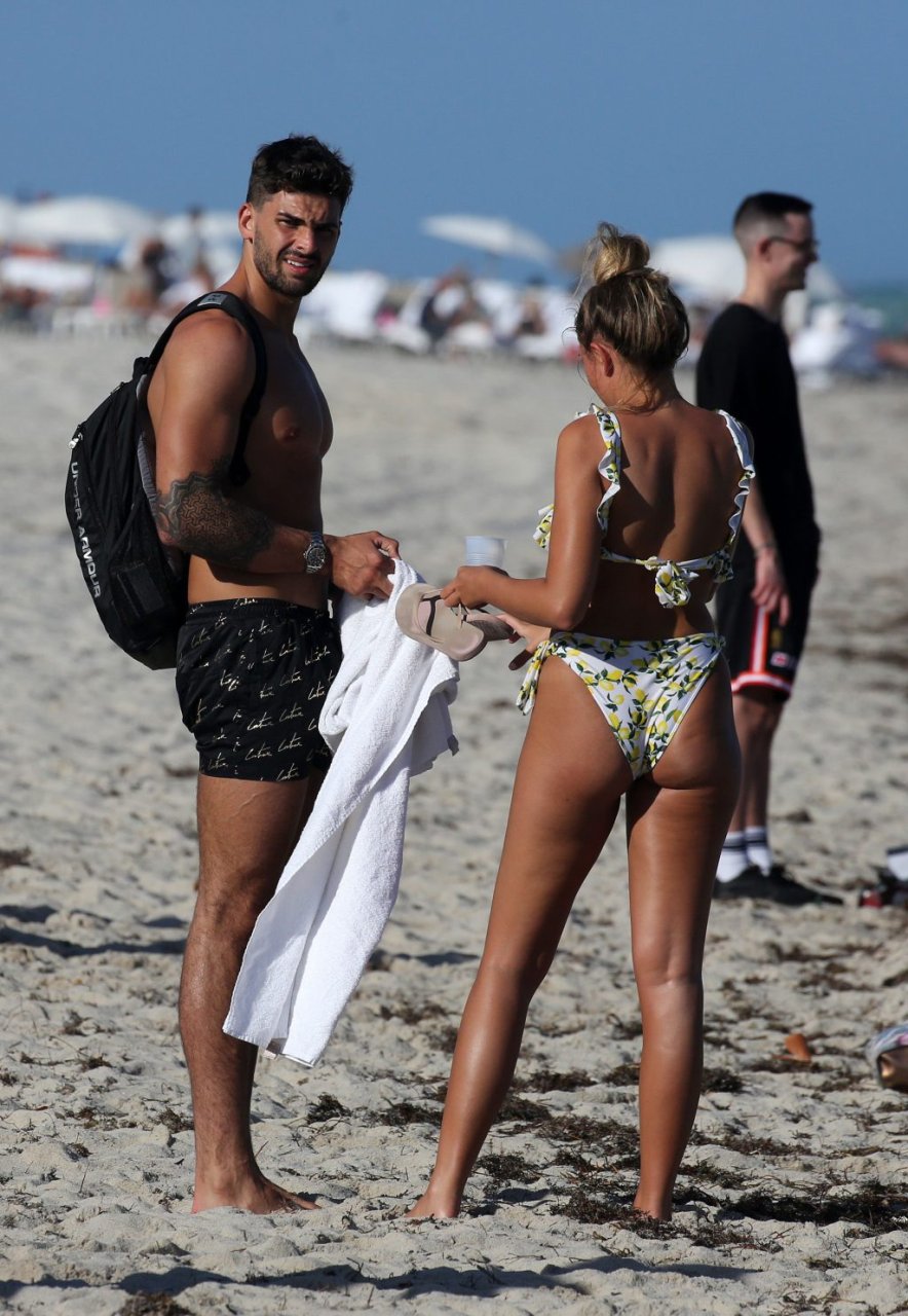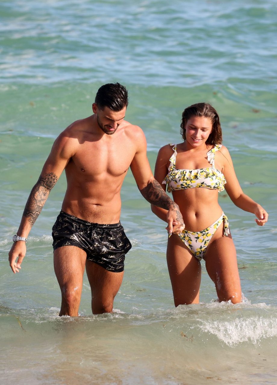 Love Island’s Zara McDermott (21) e Adam Collard mostrano i loro corpi da spiaggia e mostrano più PDA sulla spiaggia a Miami Beach, 11/08/2018.