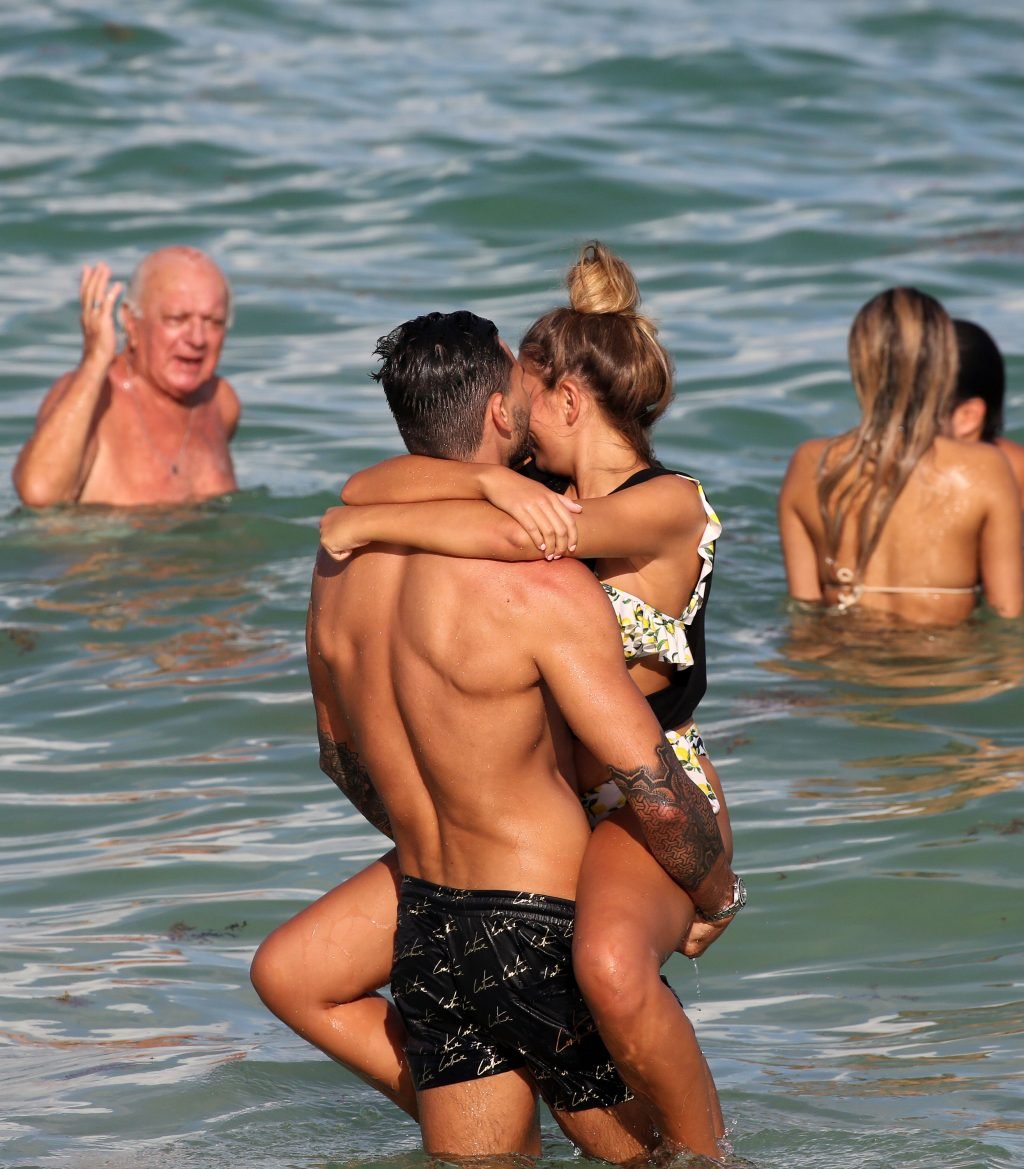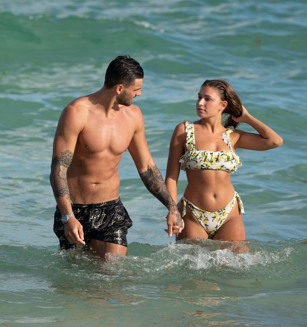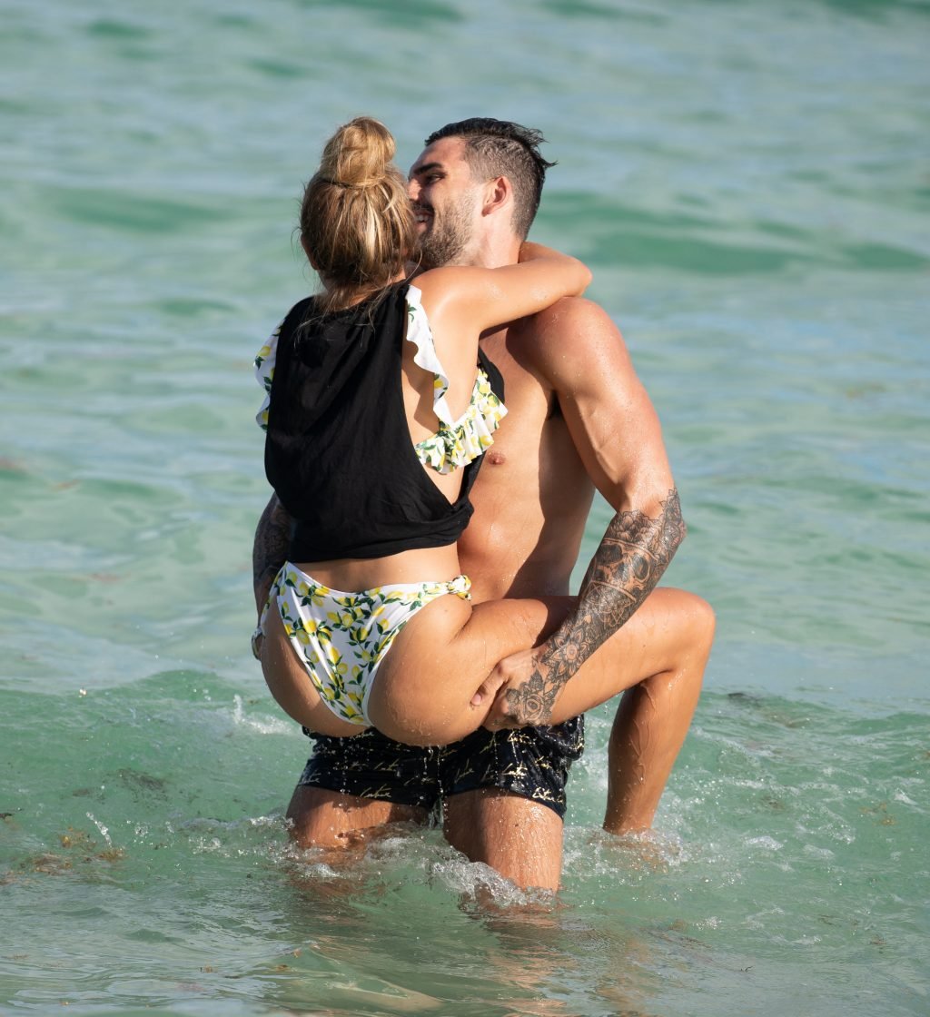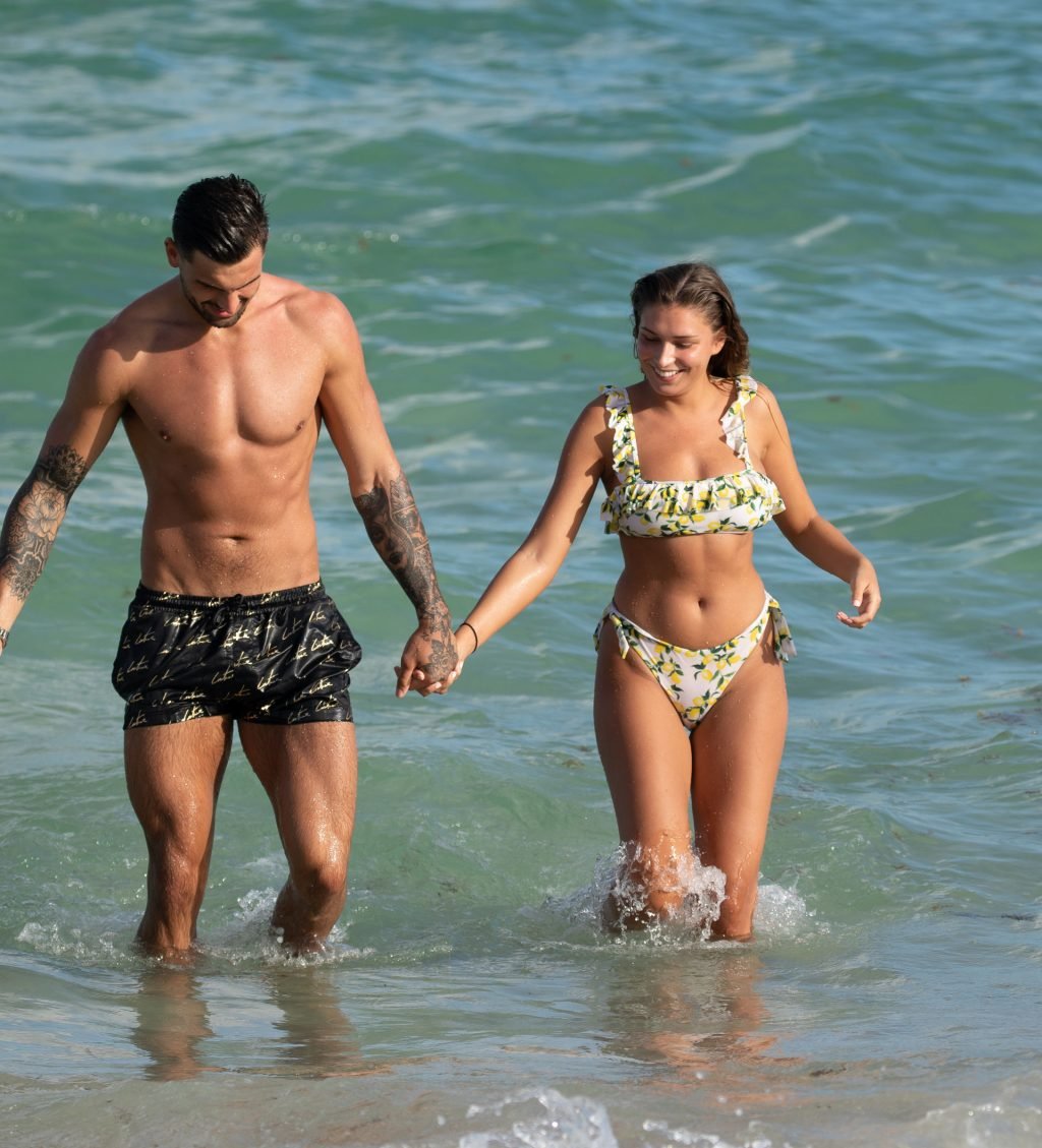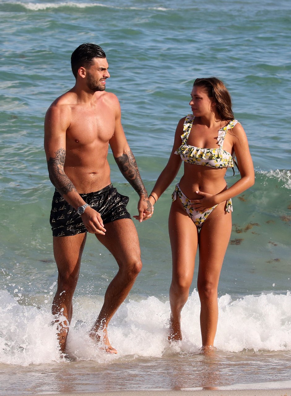 Love Island’s Zara McDermott (21) e Adam Collard mostrano i loro corpi da spiaggia e mostrano più PDA sulla spiaggia a Miami Beach, 11/08/2018.